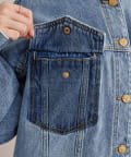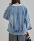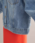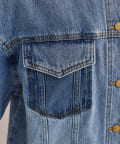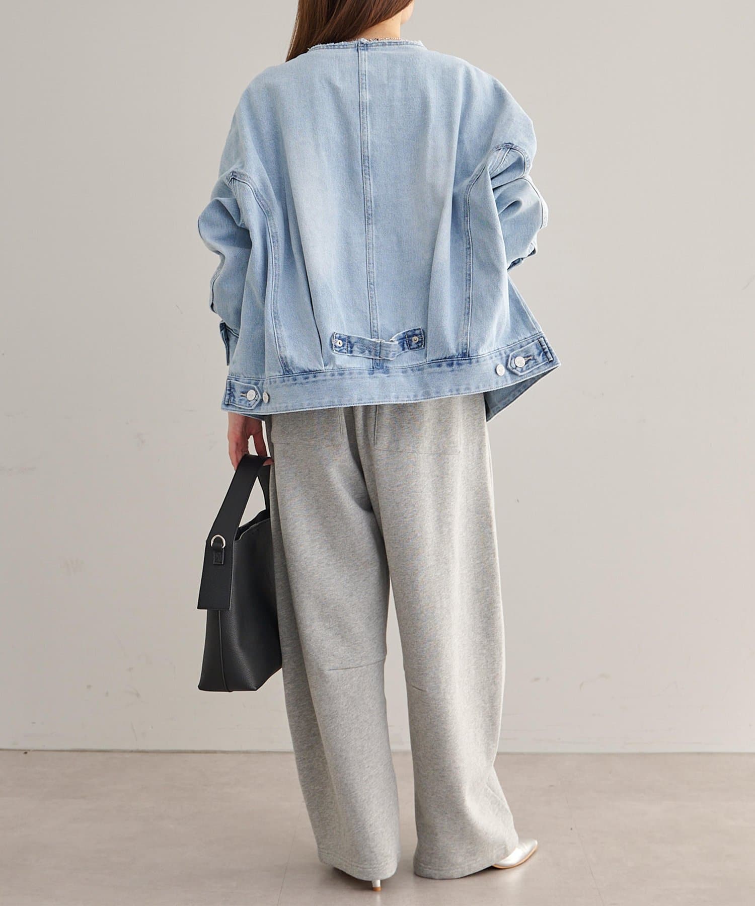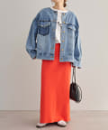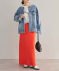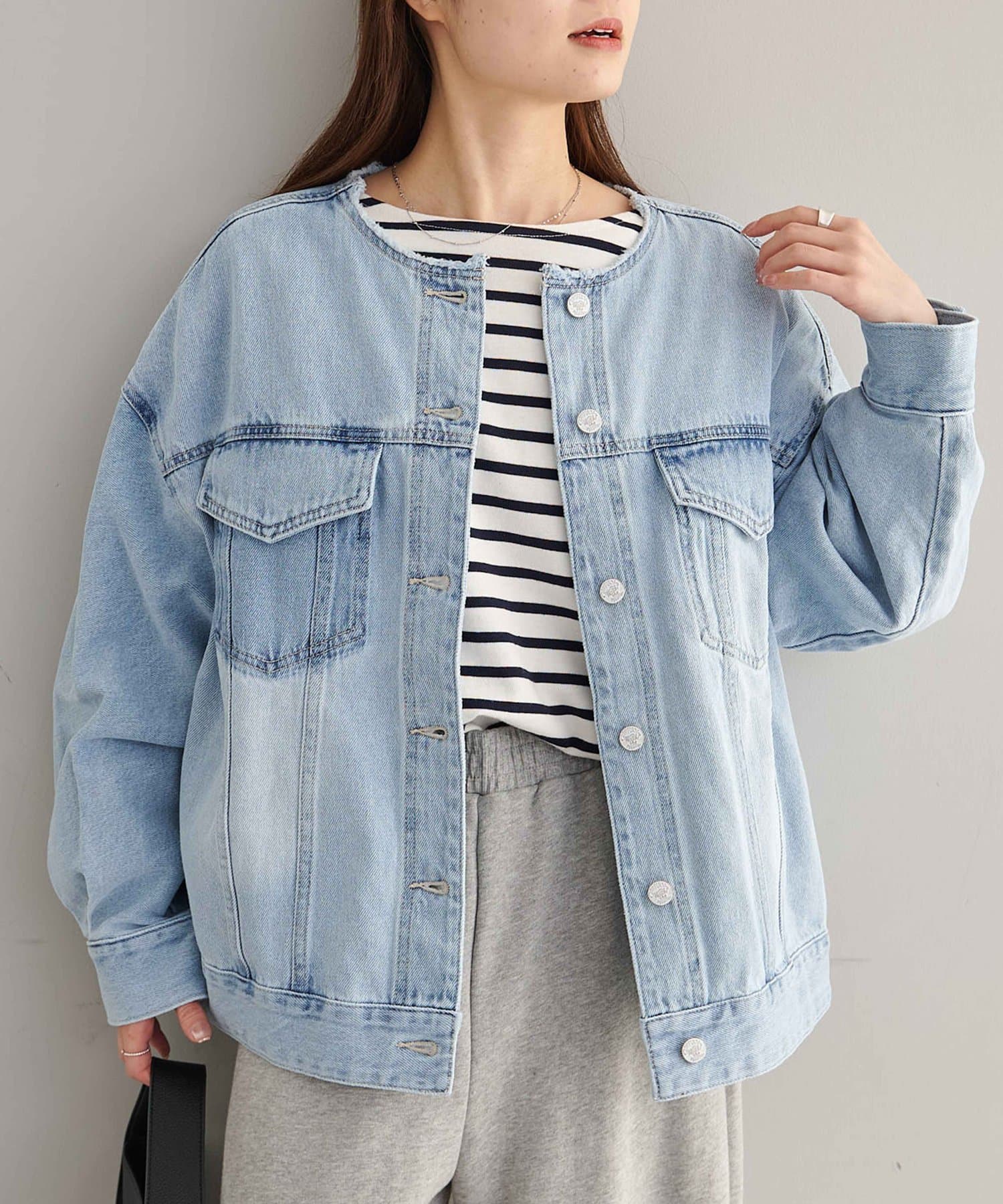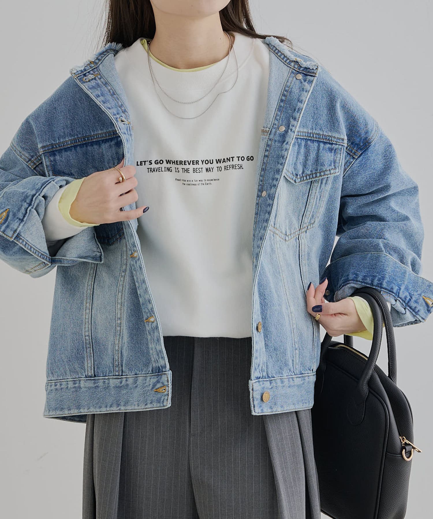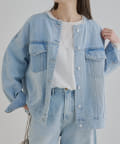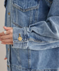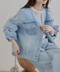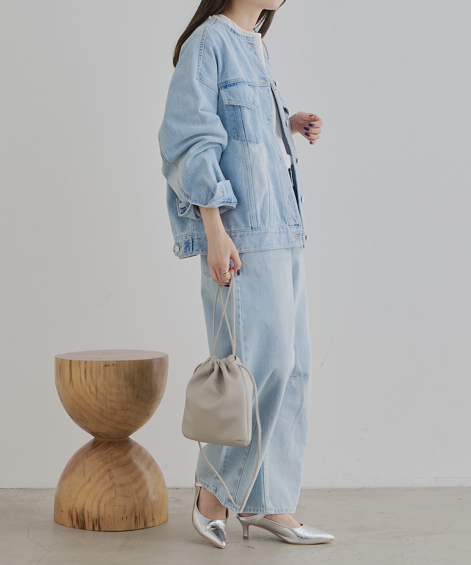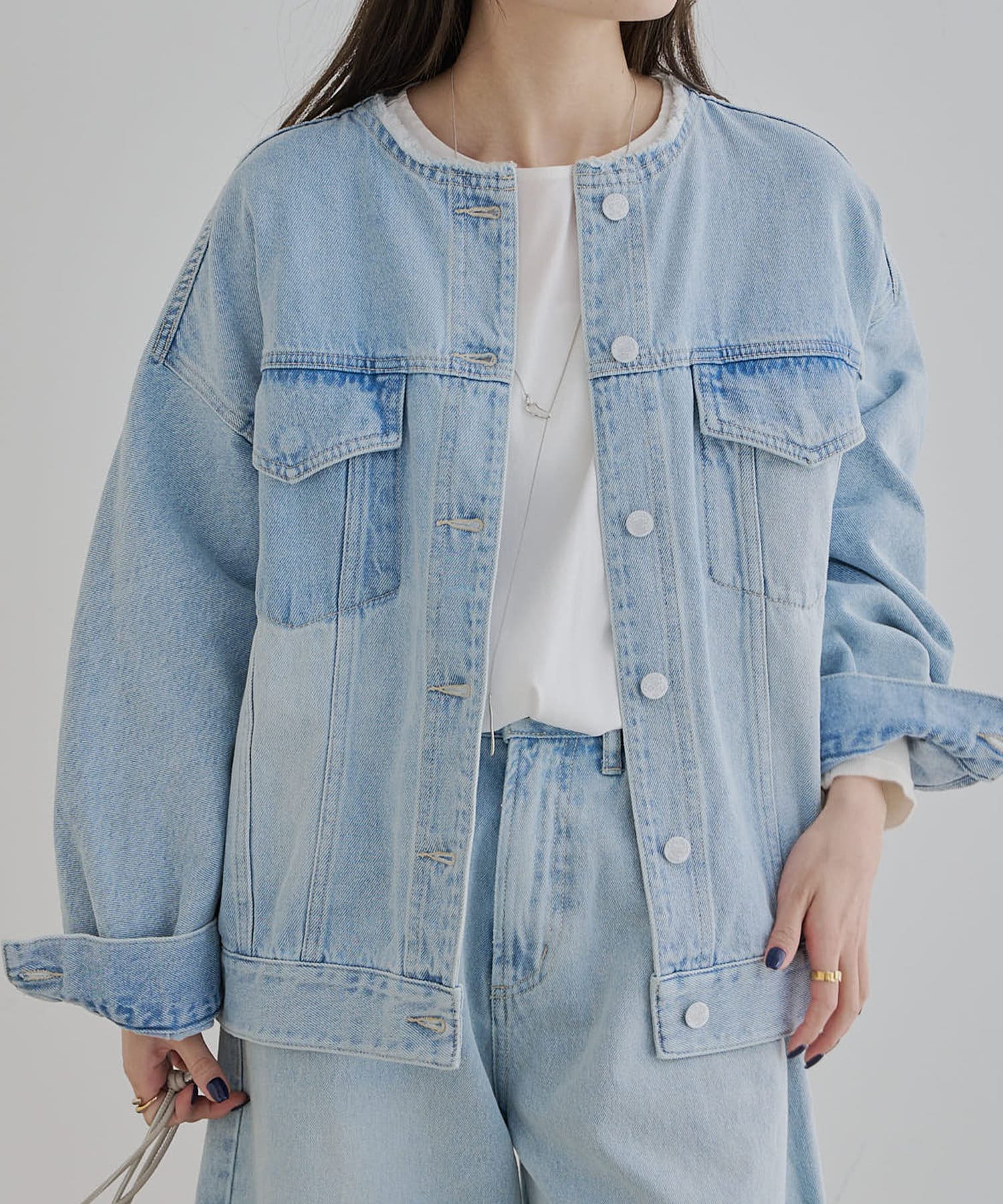 同じ色合いのデニムパンツを合わせ、デニムコーディネートでメンズライクな着こなしや