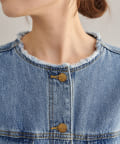 すっきりとしたノーカラーデザインはフリンジ加工でおしゃれなポイント。