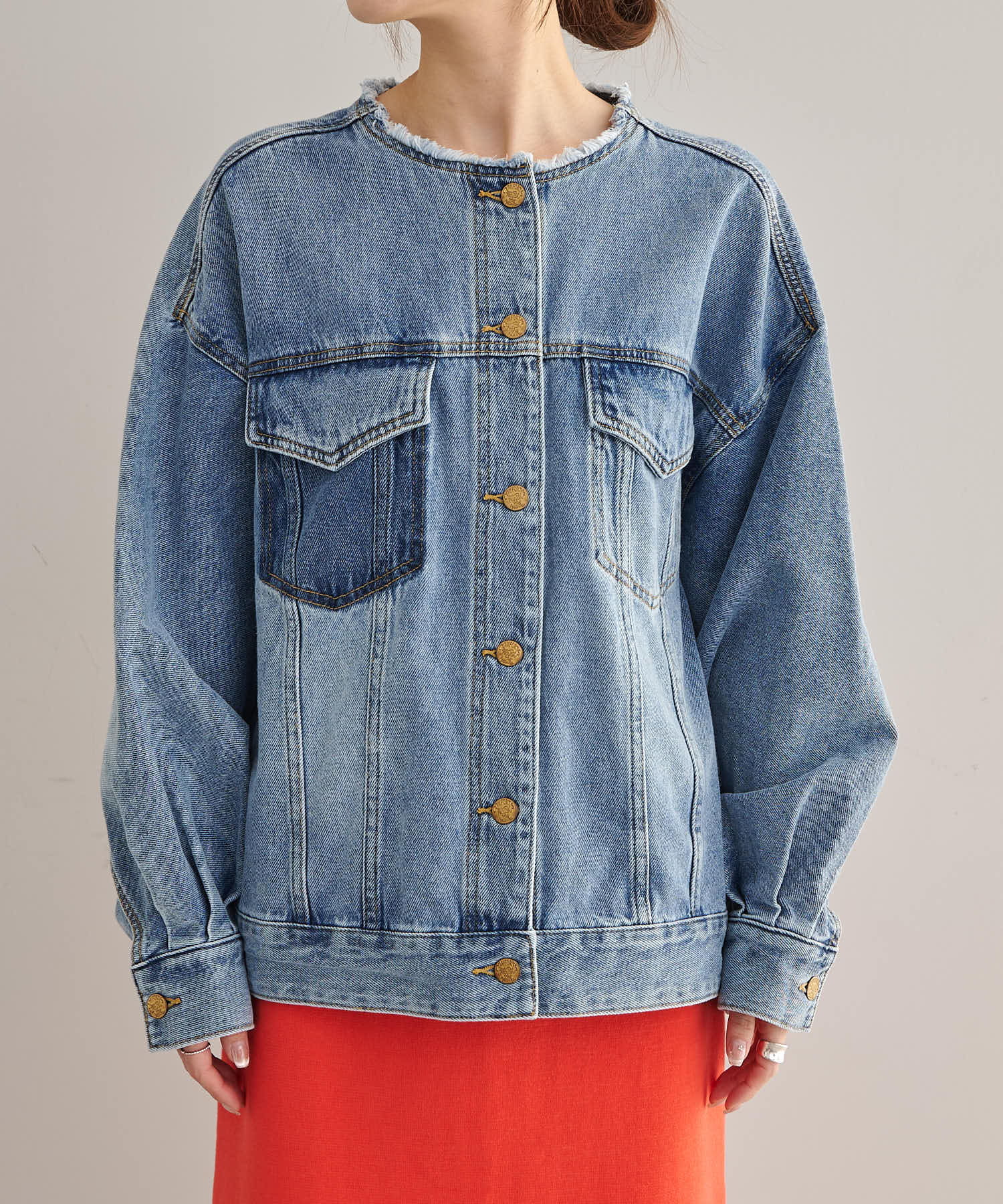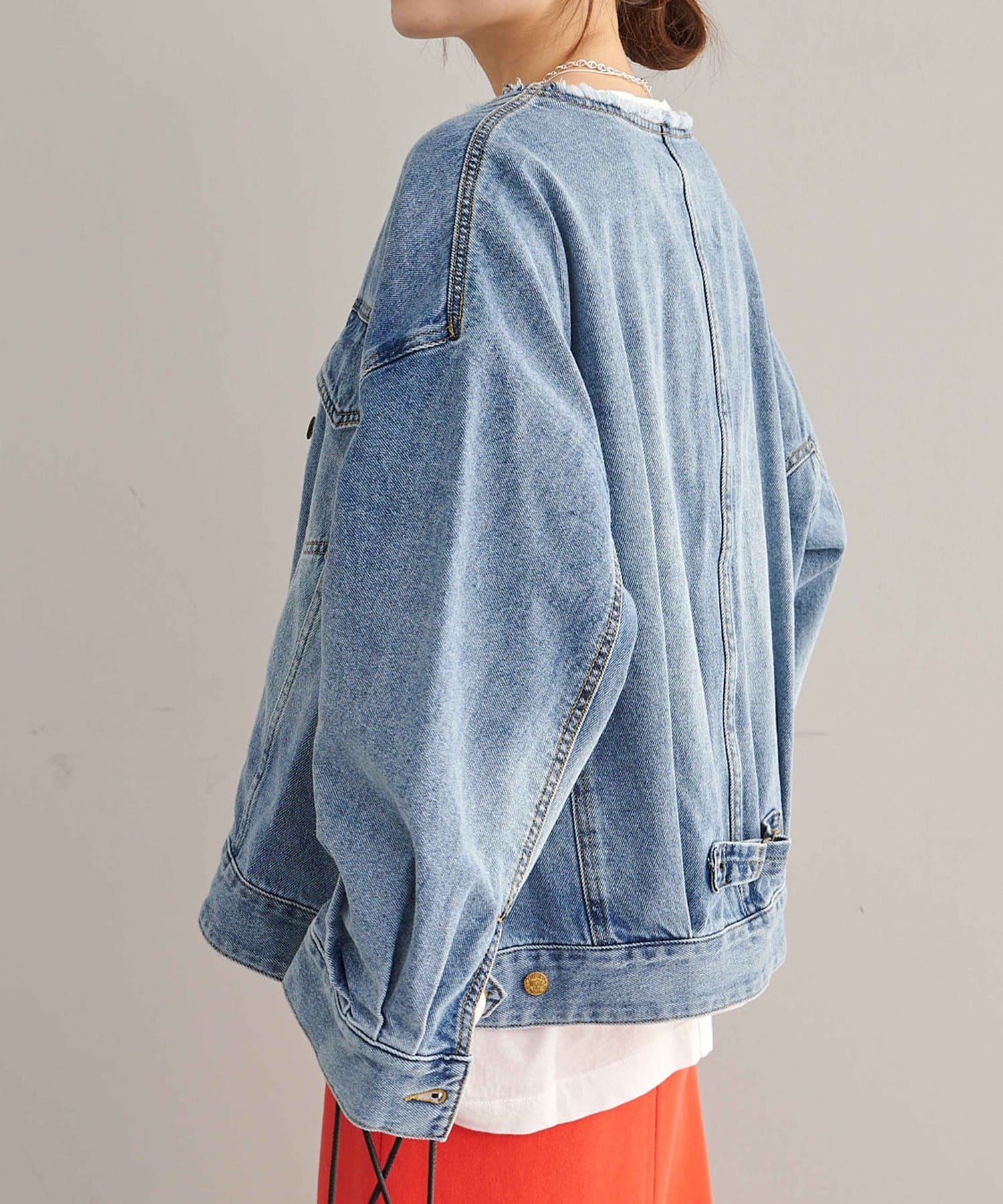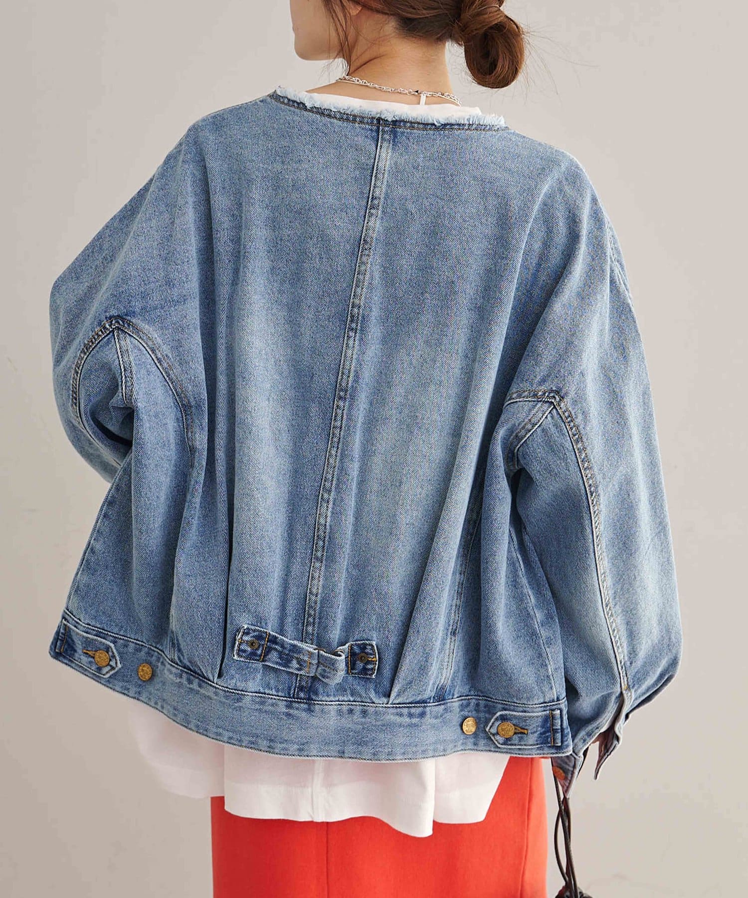 定番で人気のデニムジャケットを女性らしい曲線がでるように仕上げました。