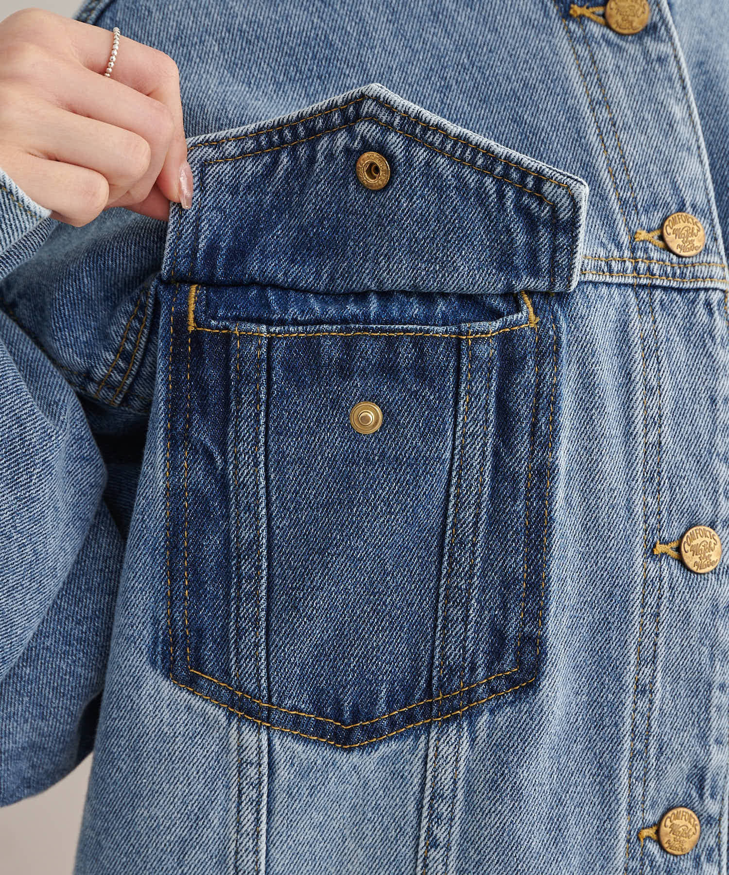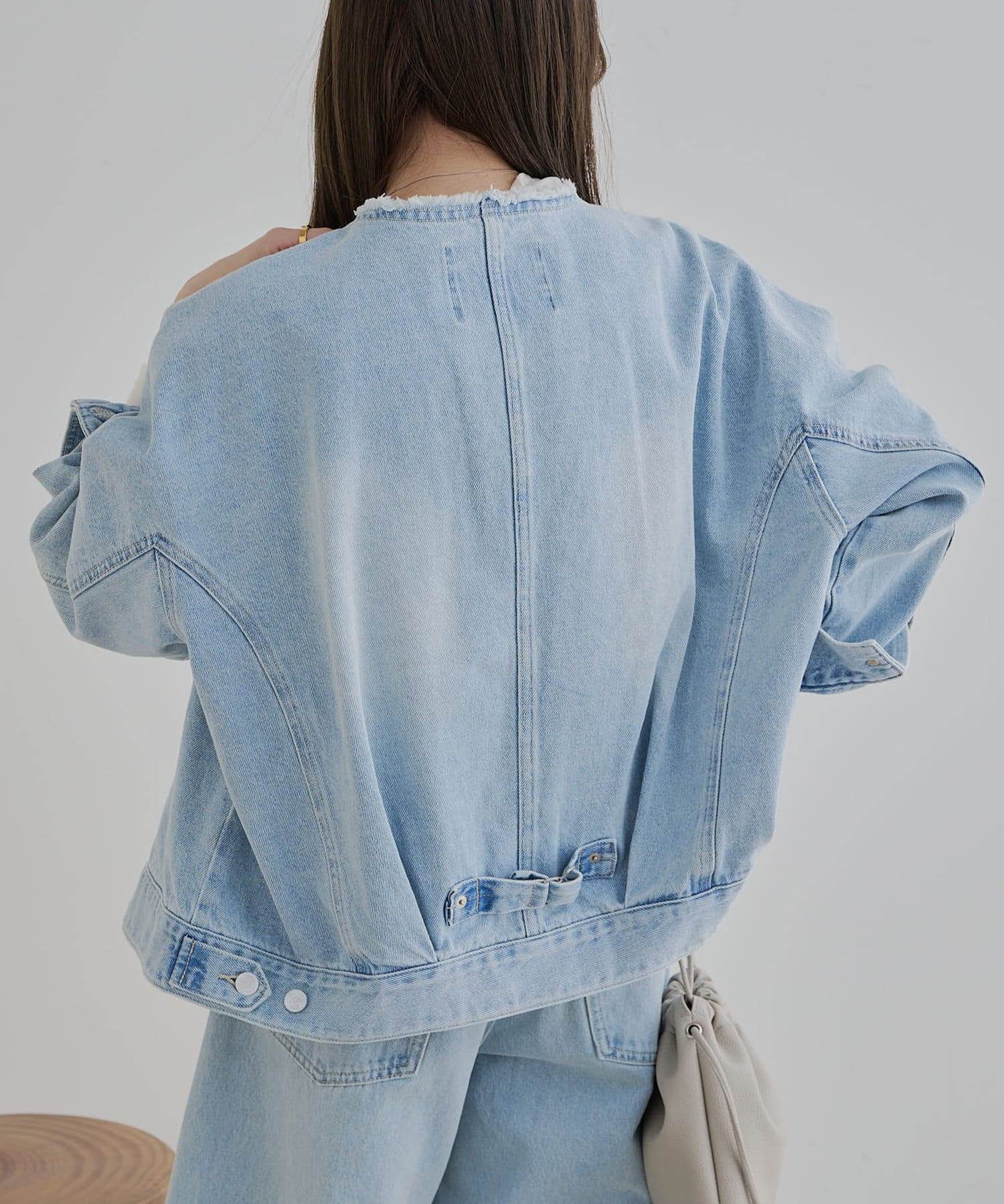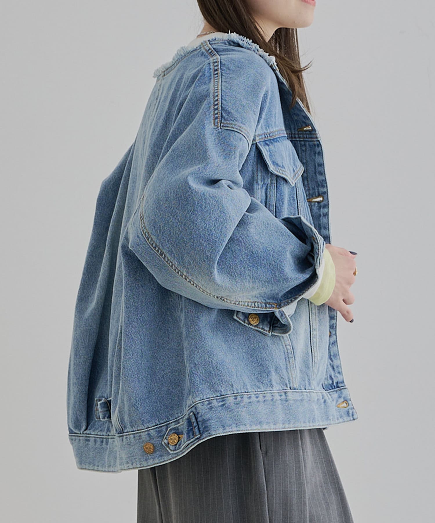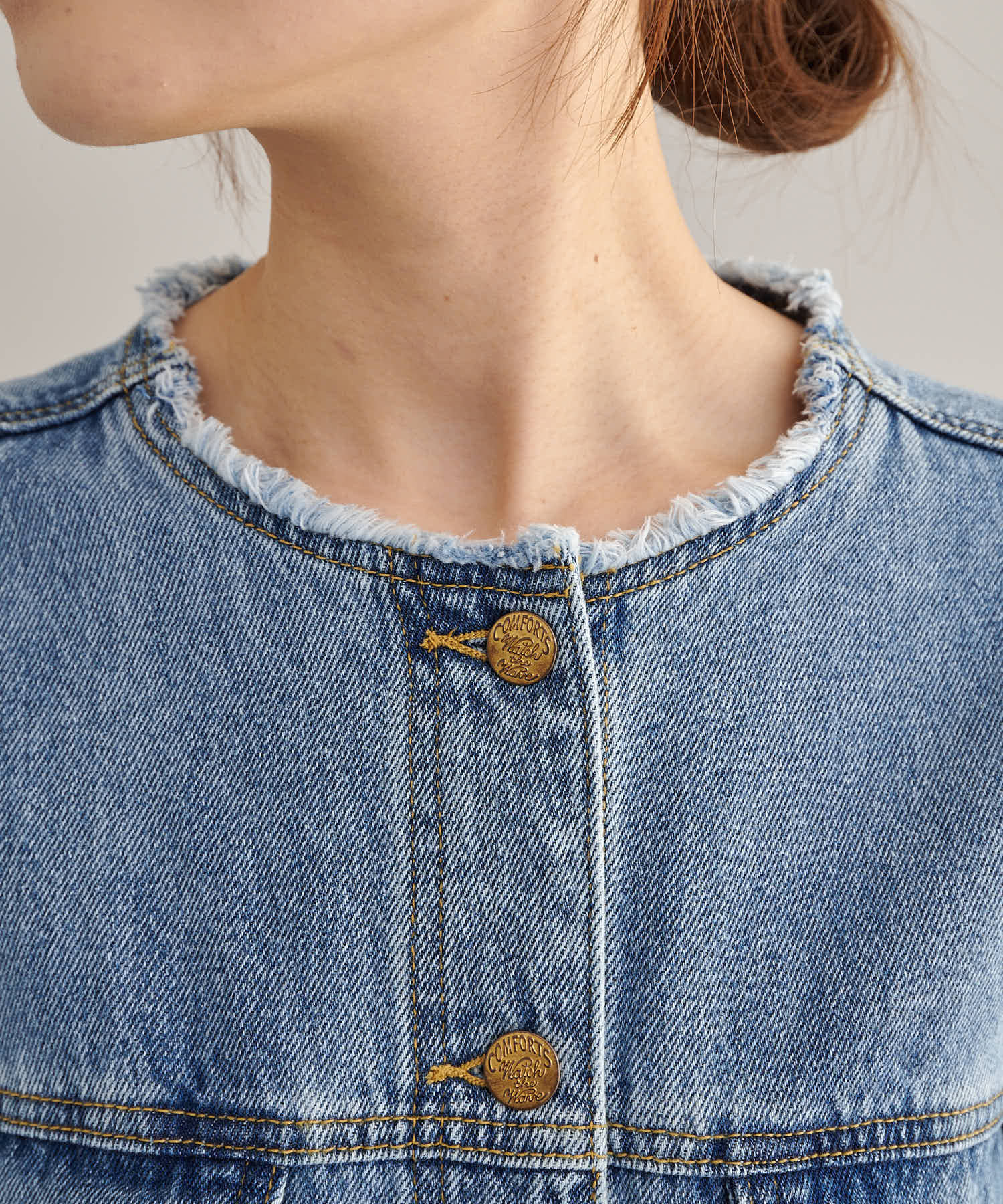 定番で人気のデニムジャケットを女性らしい曲線がでるように仕上げました。