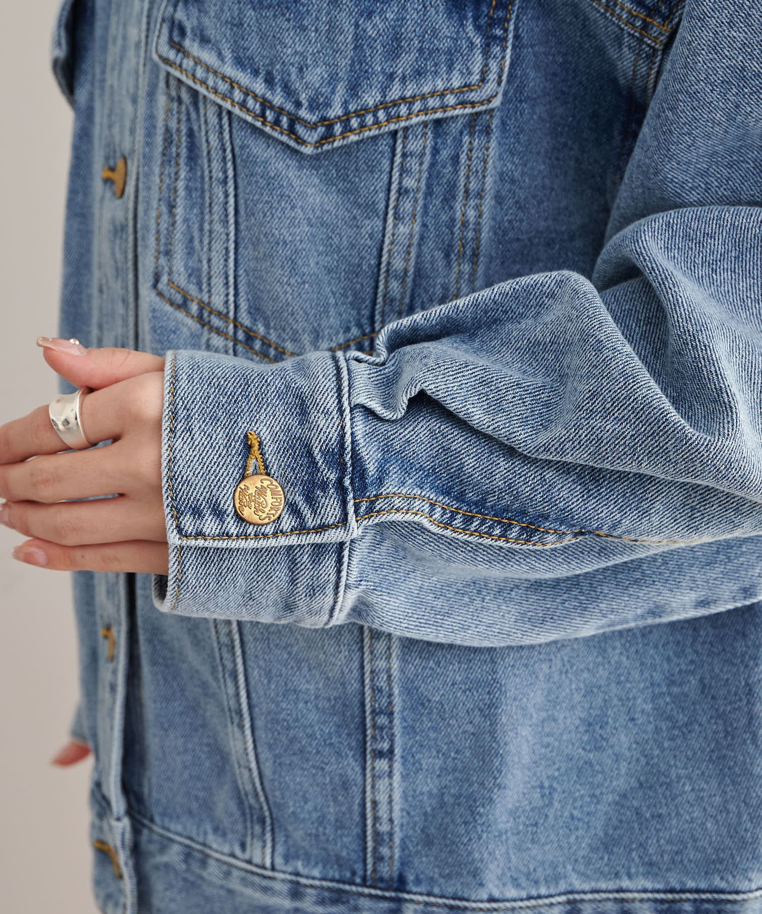 オリジナルボタンを使用し、ゴールドのカラーでアクセントに。