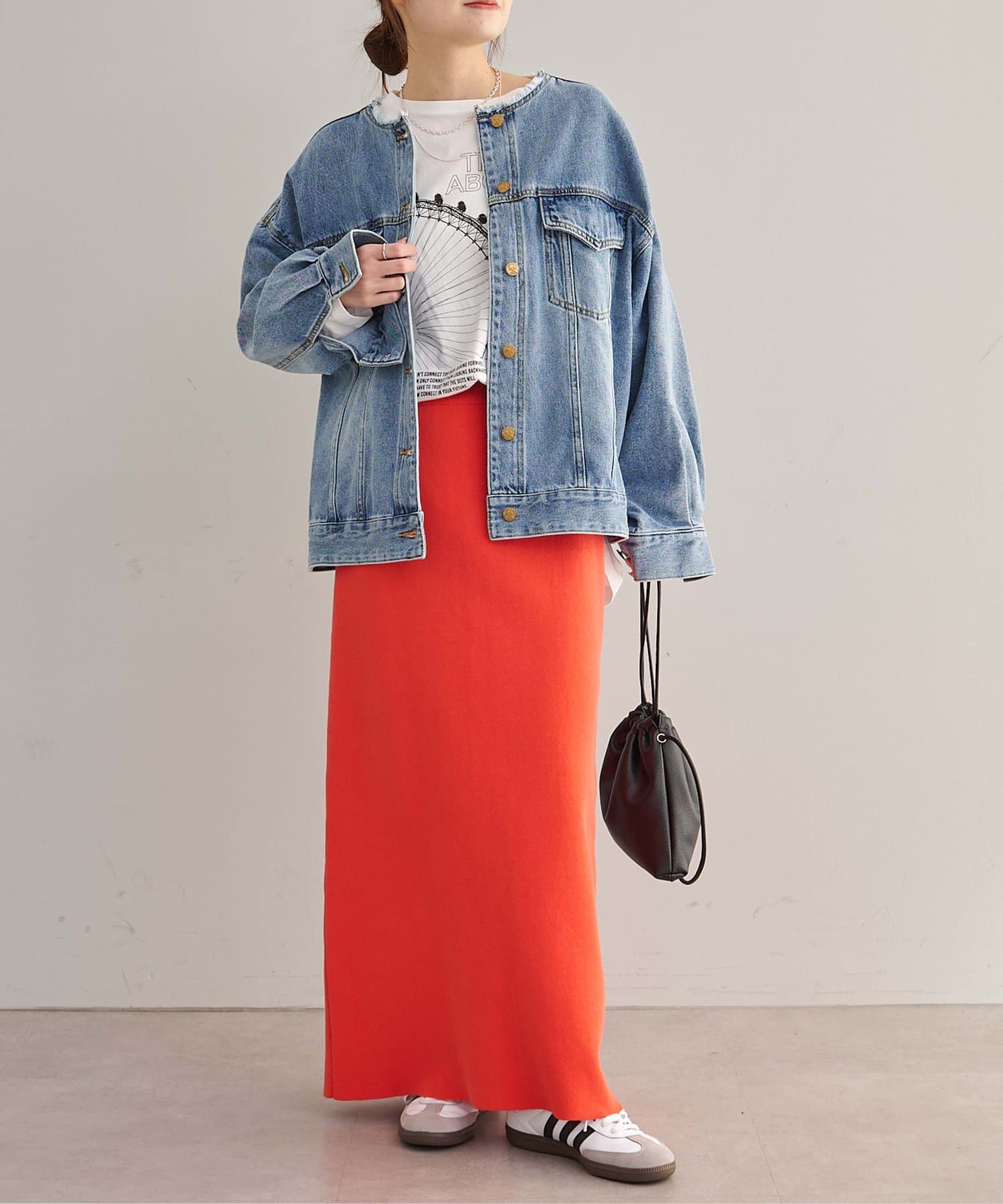 スカートを合わせて女性らしいコーディネートを楽しめます。