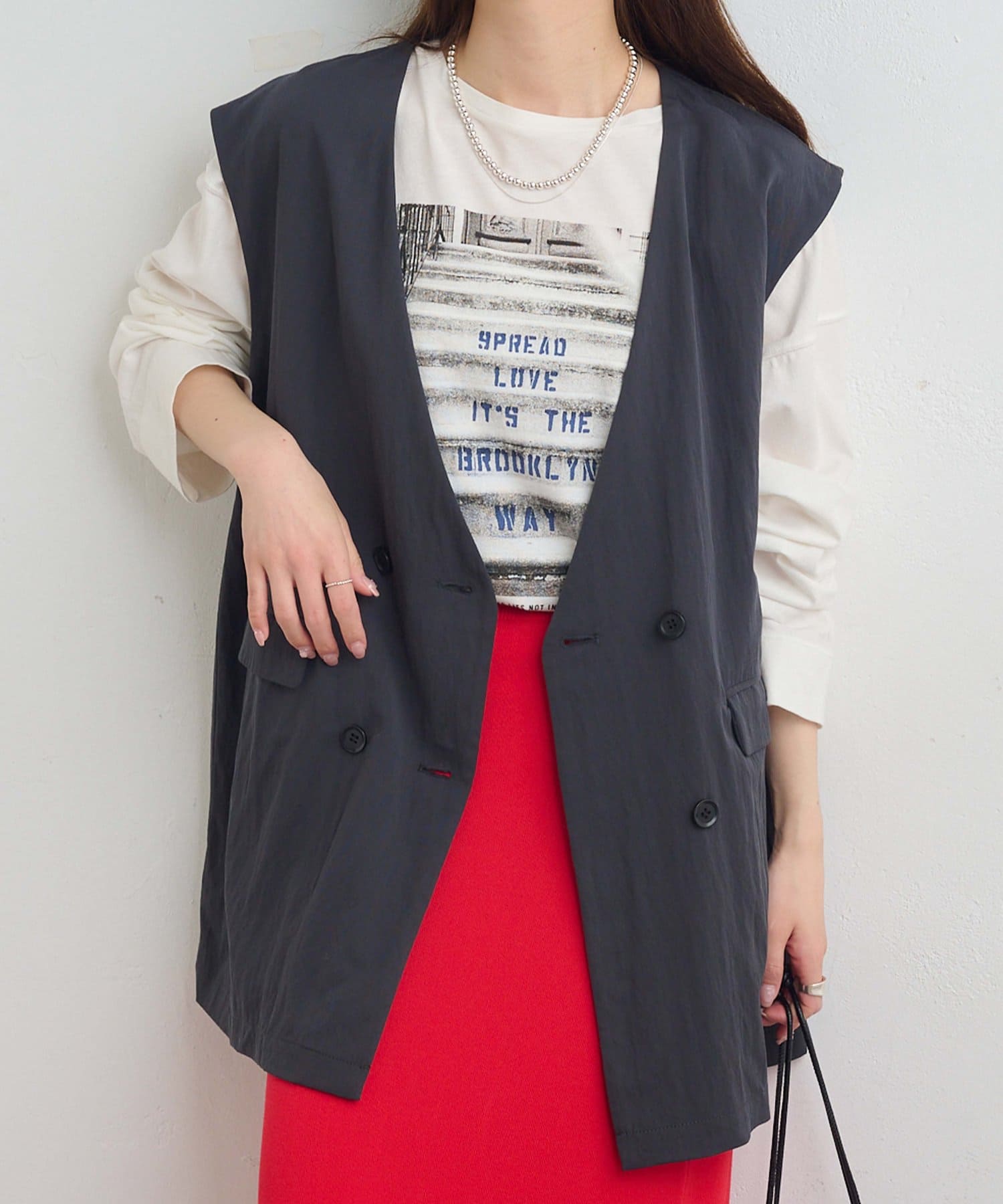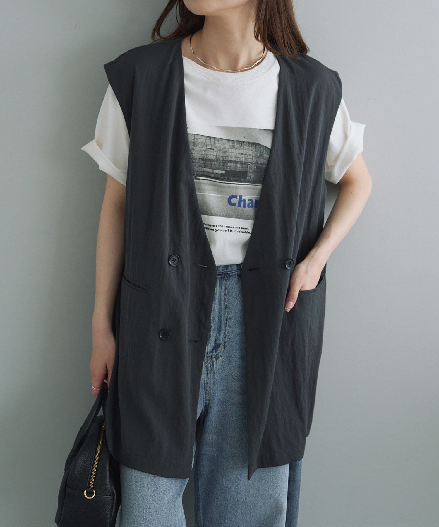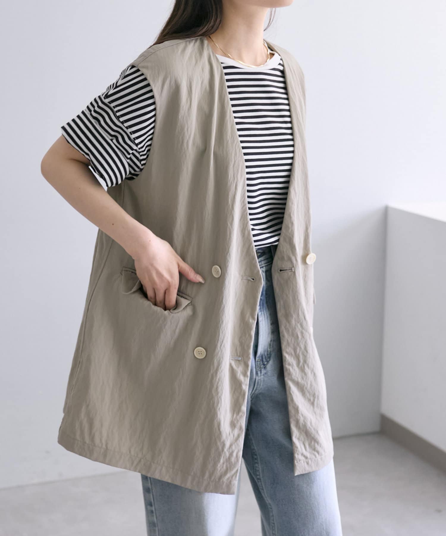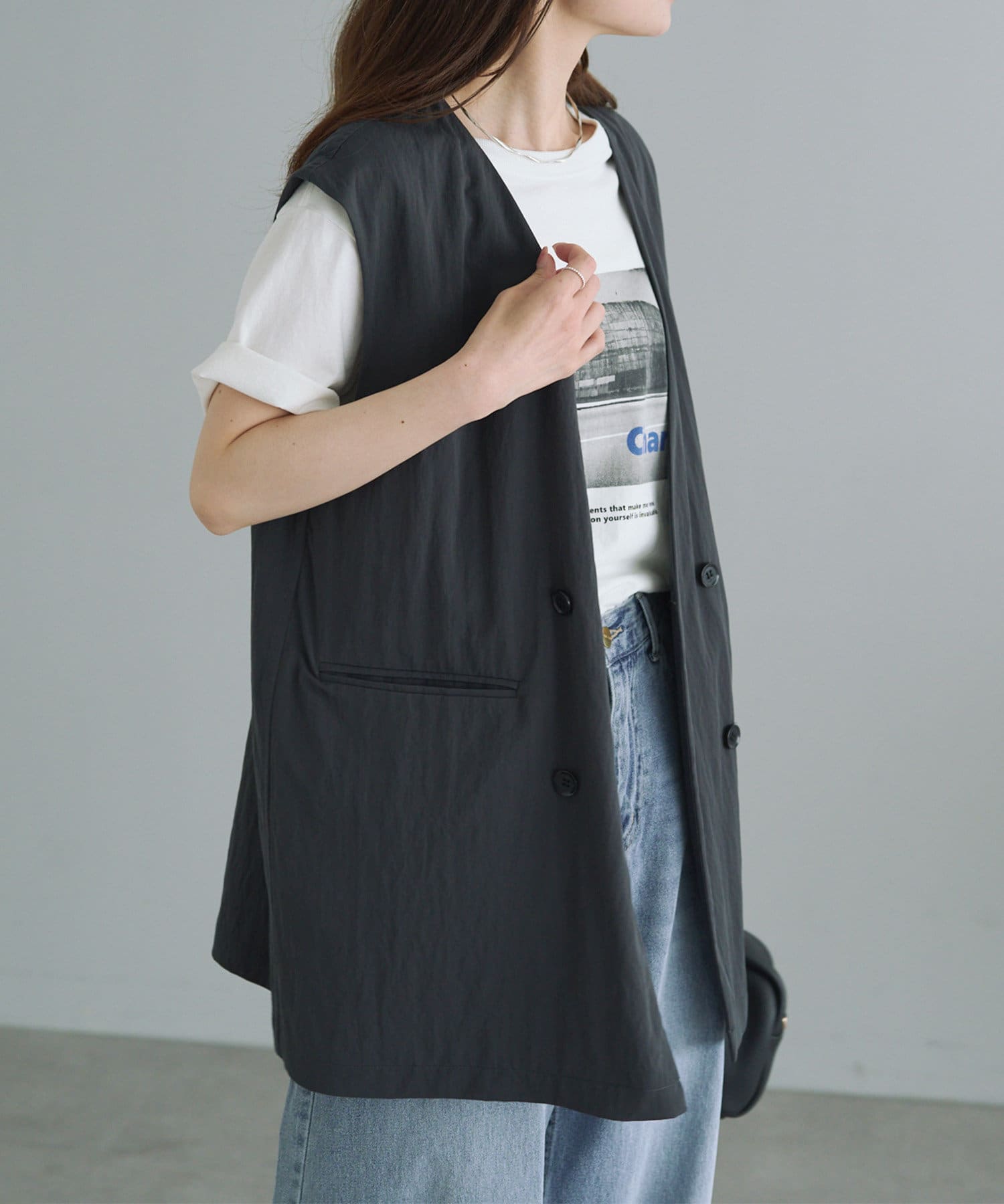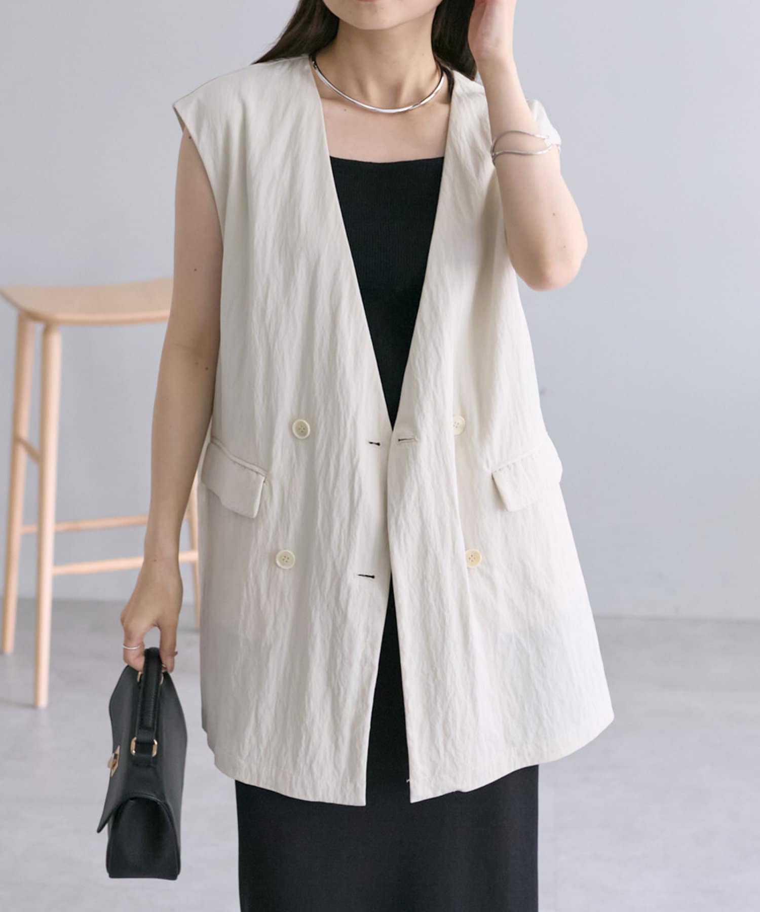 【リバイバル】ノーカラーダブルデザインジレベスト