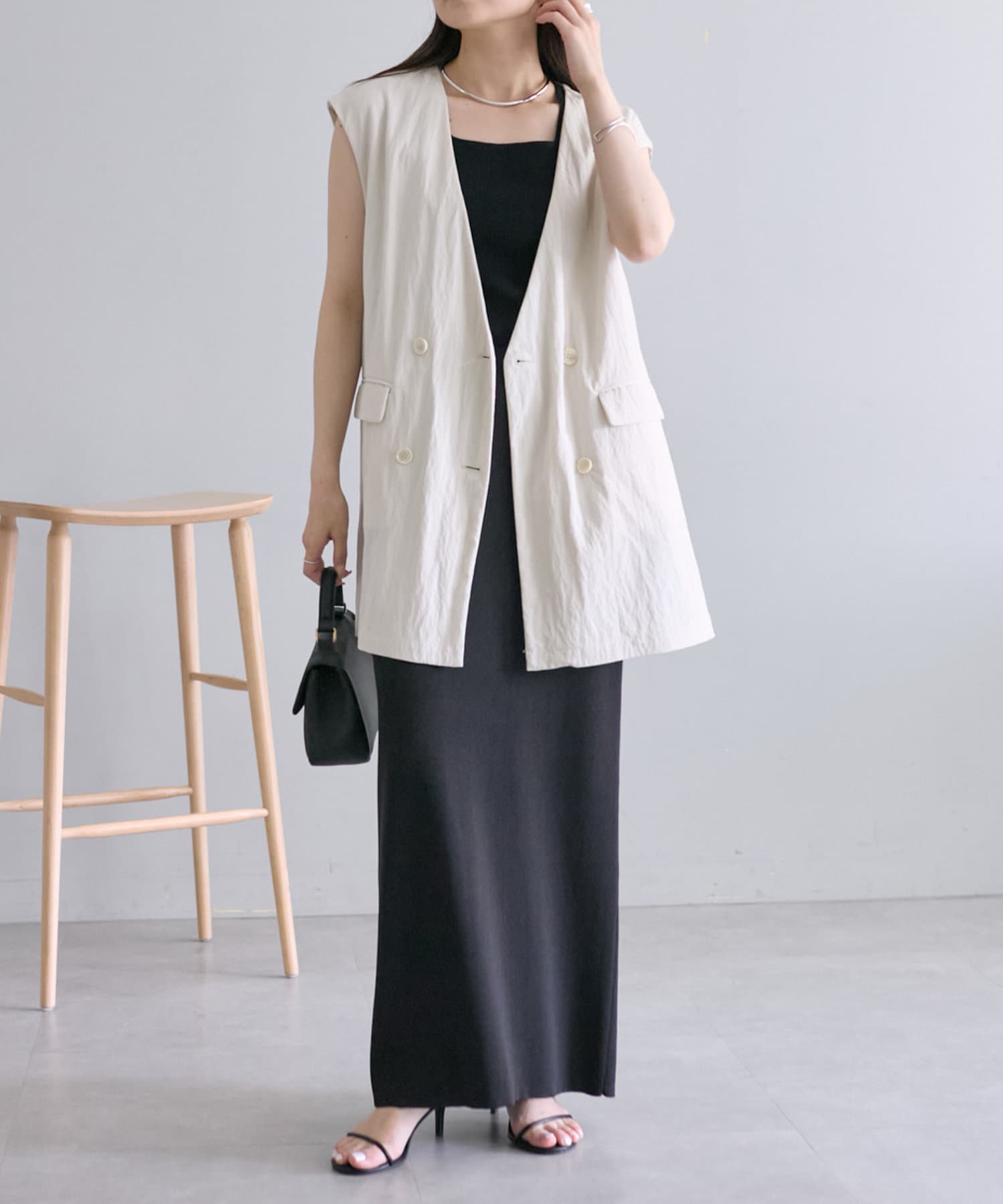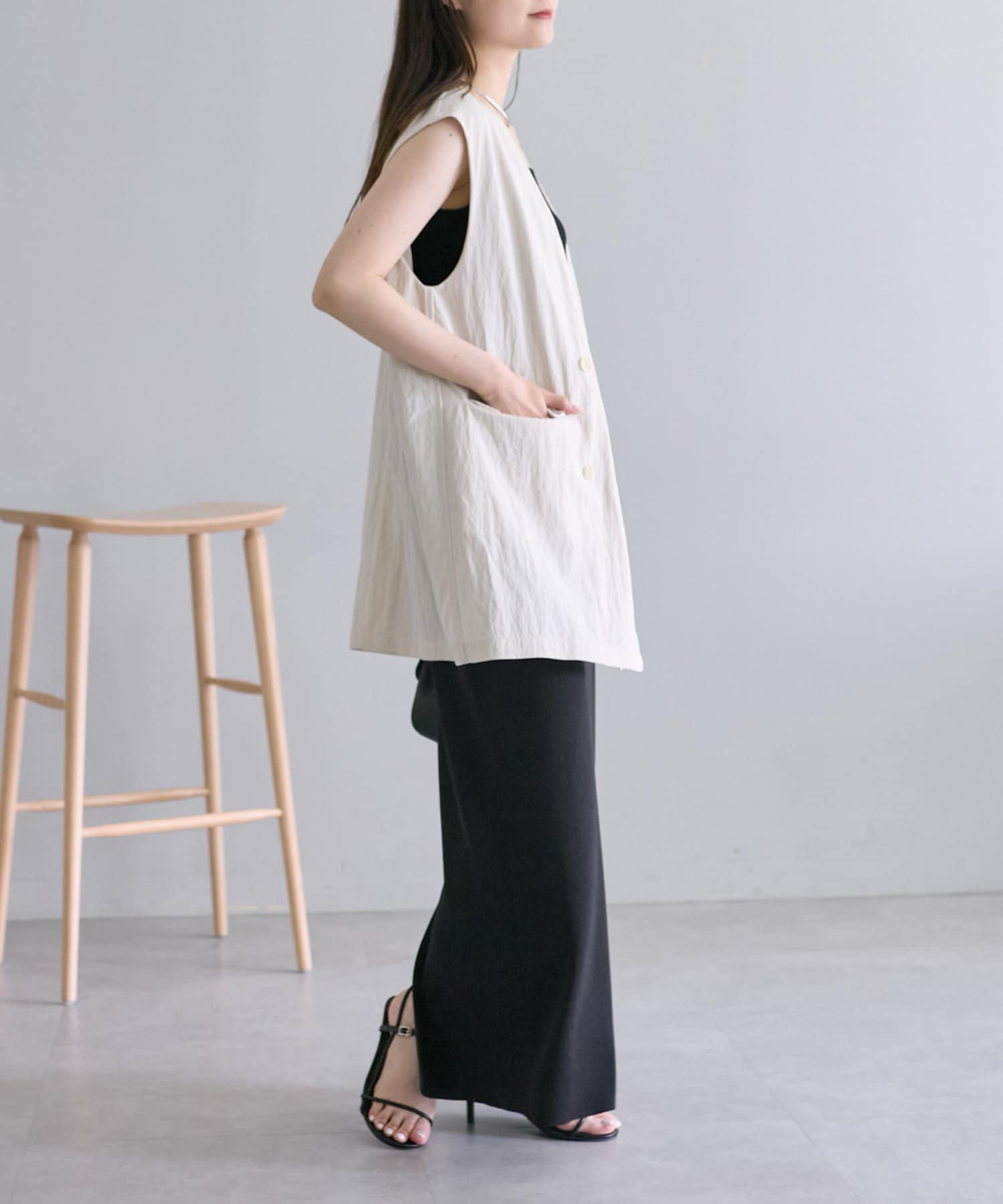普段の装いに1枚合わせるだけで、すっきり上品見えが叶うアイテム。