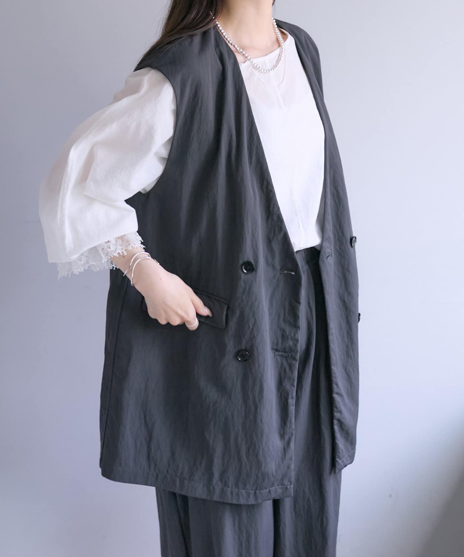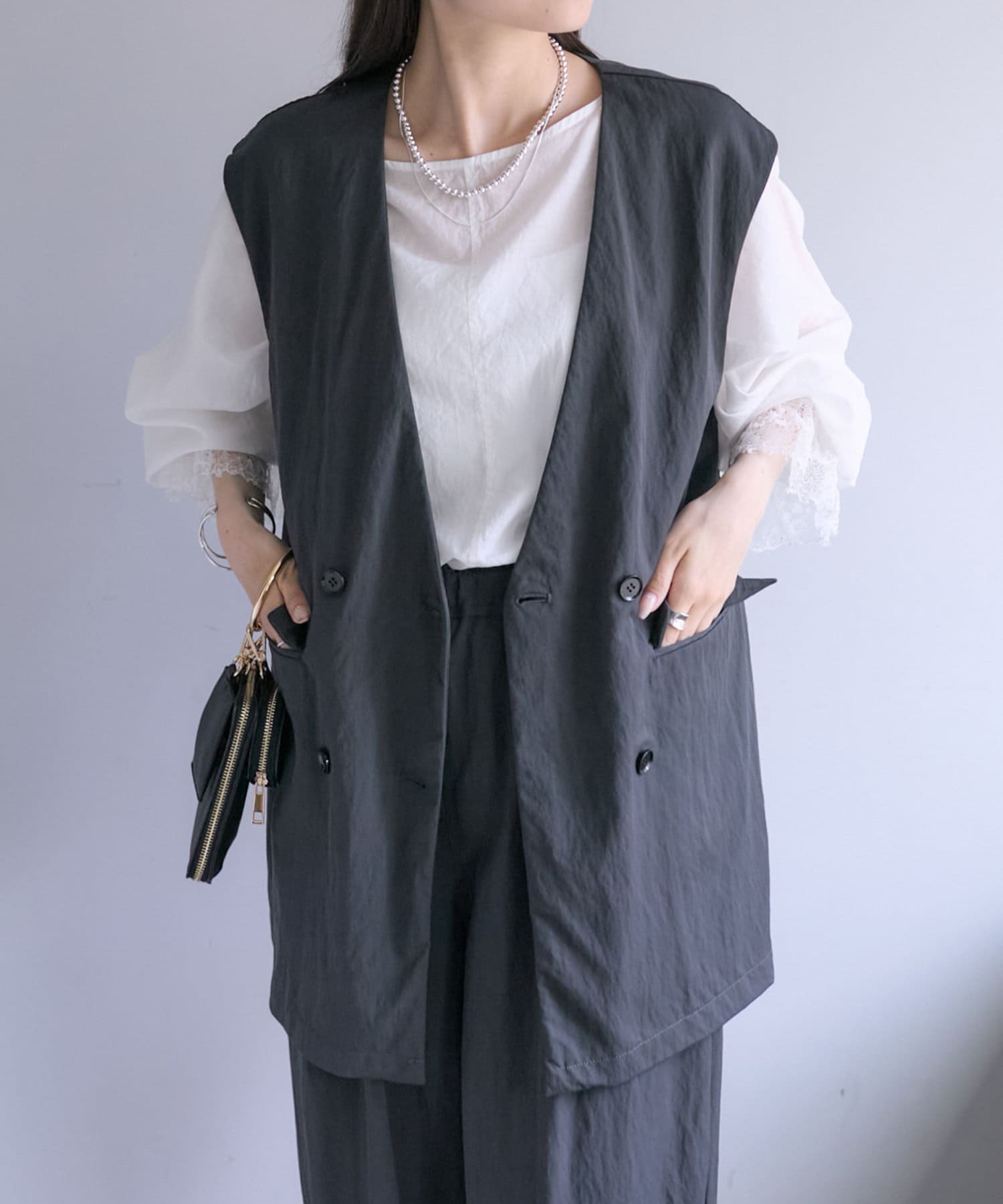 《セットアップのスタイリングで人気のジレベストが再登場!》