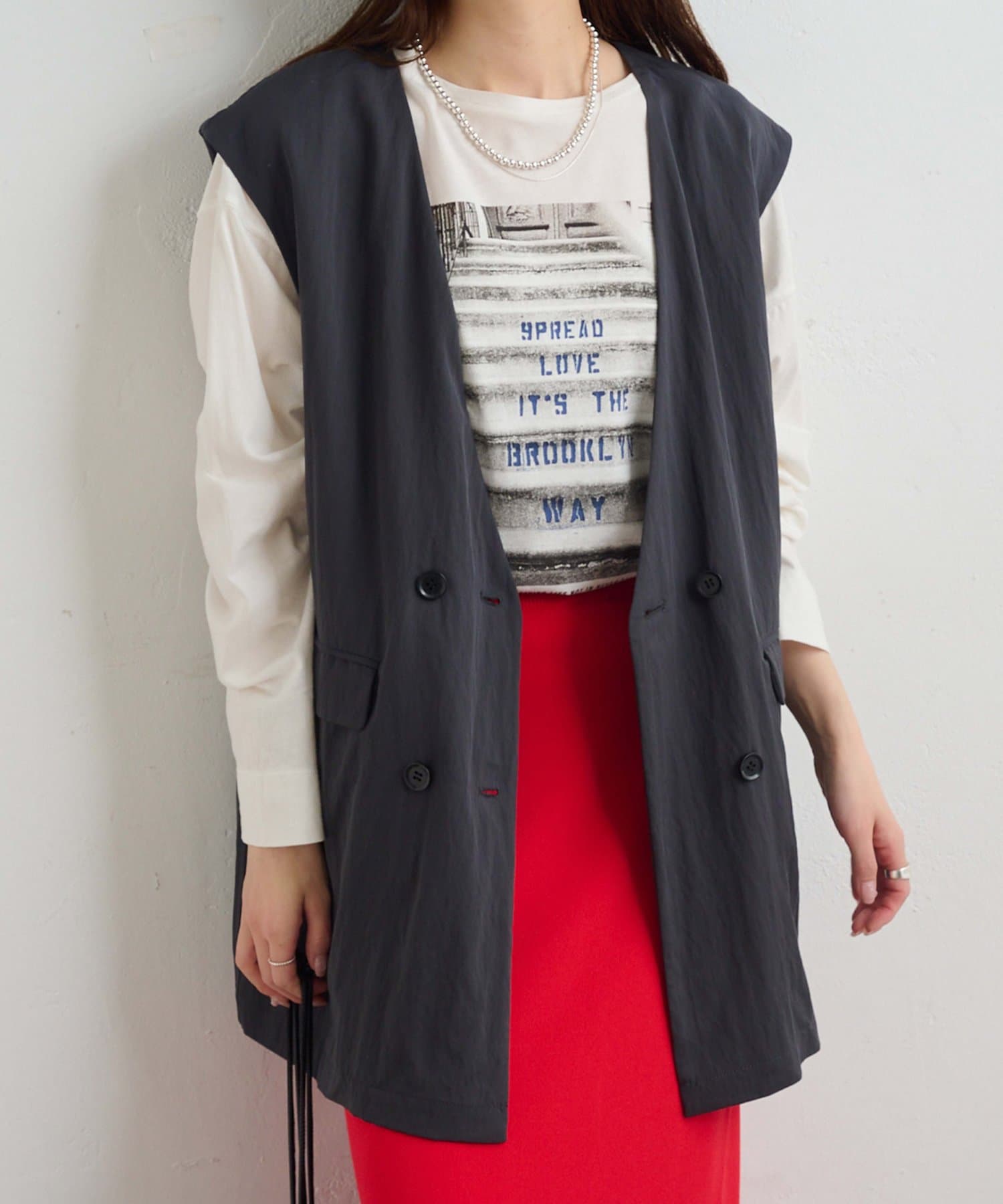 TOP > PUAL CE CIN > レディース > ジャケット/アウター > ベスト/ジレ > 【リバイバル】ノーカラーダブルデザインジレベスト