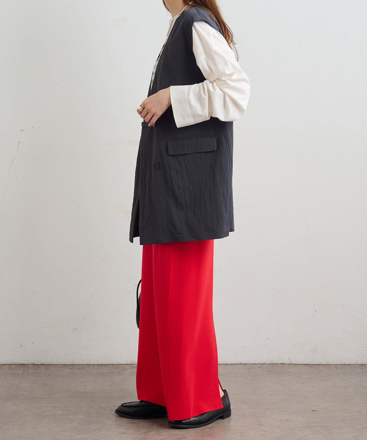 身幅のゆとりがあるため、インナー合わせも服の厚みを気にせず着用いただけます。