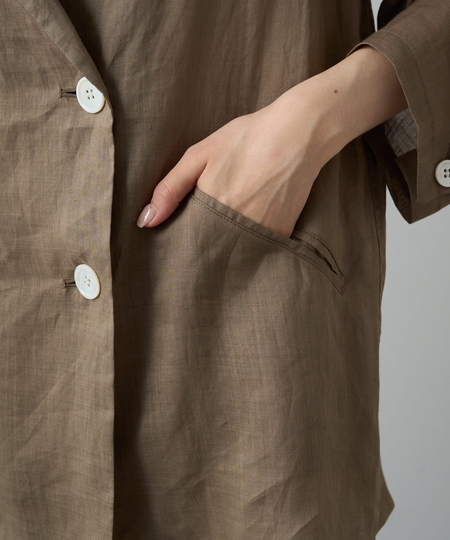 ほのかに光沢感のあるラミーローン生地で仕上げた軽やかなリネンジャケット。