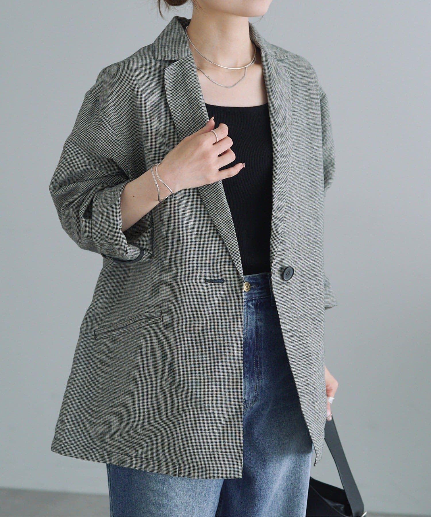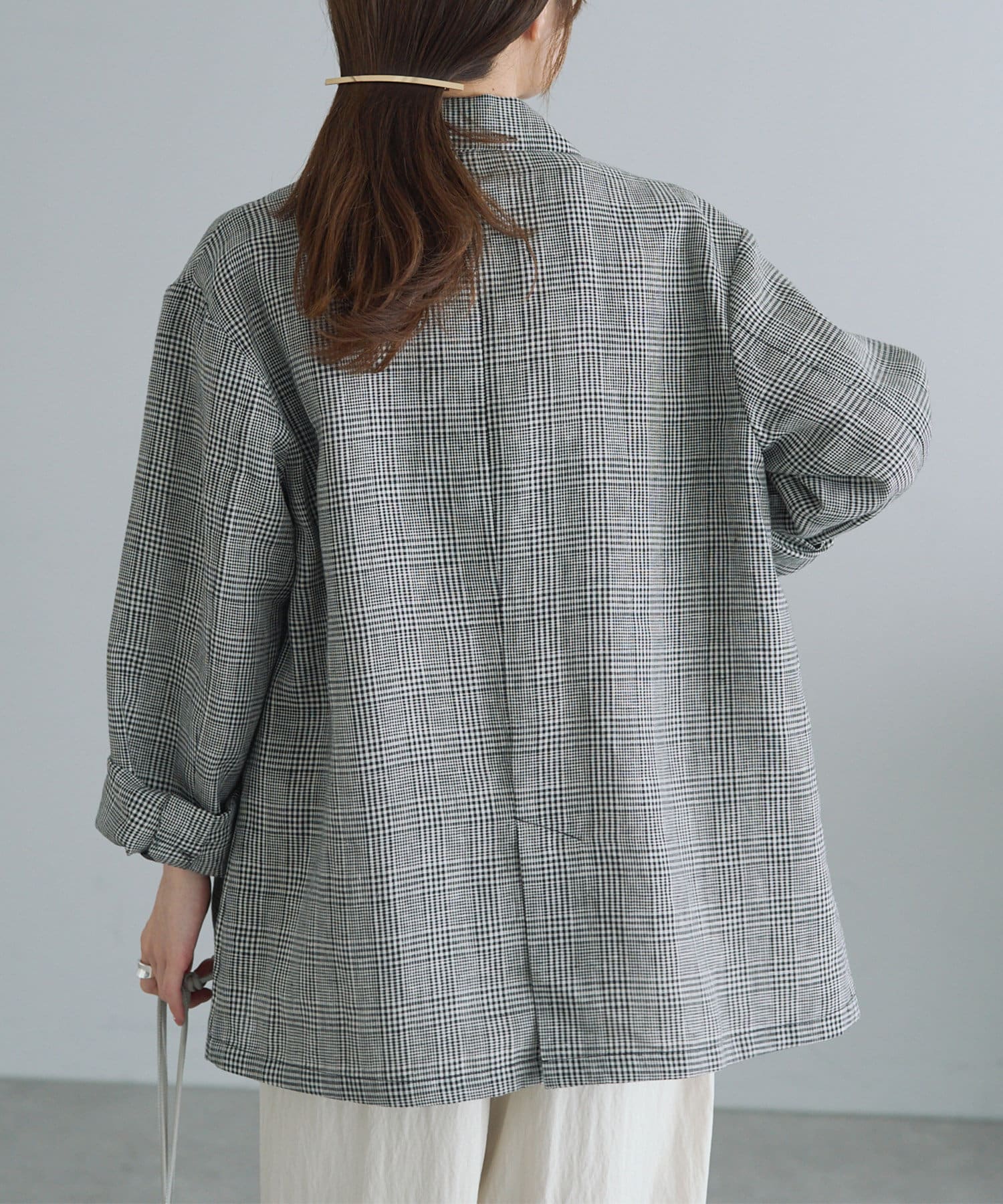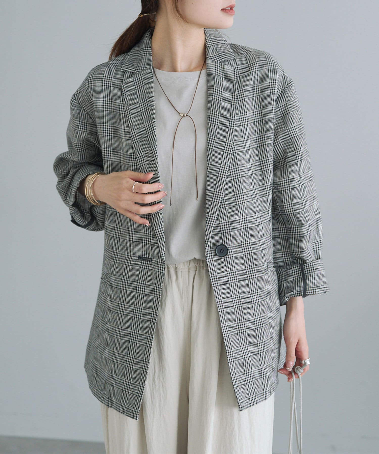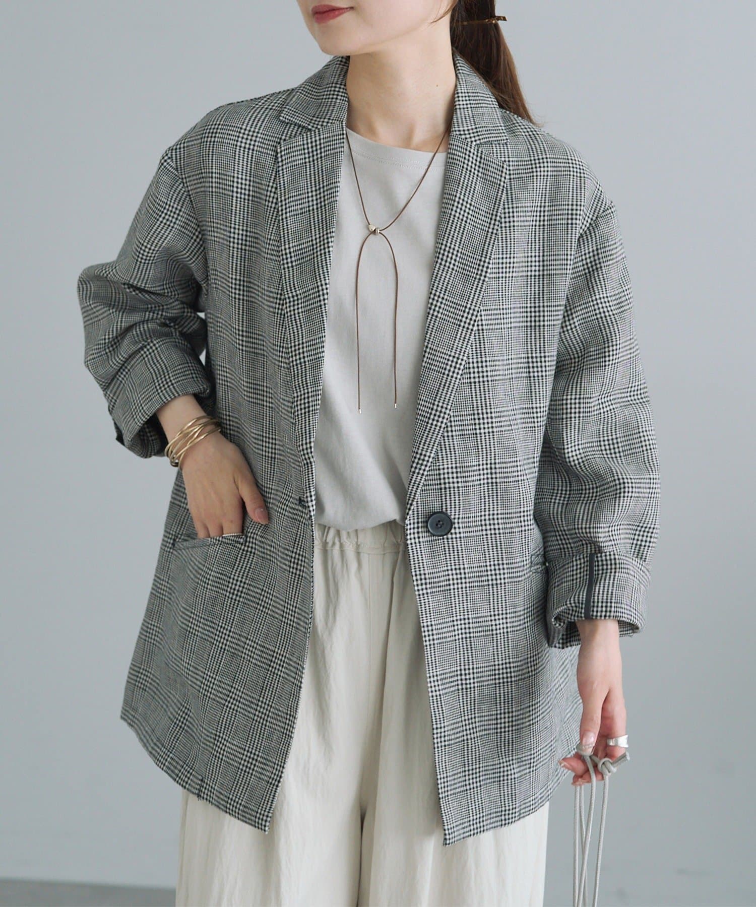 トレンド感のある程よいオーバーサイズのチェックジャケット。