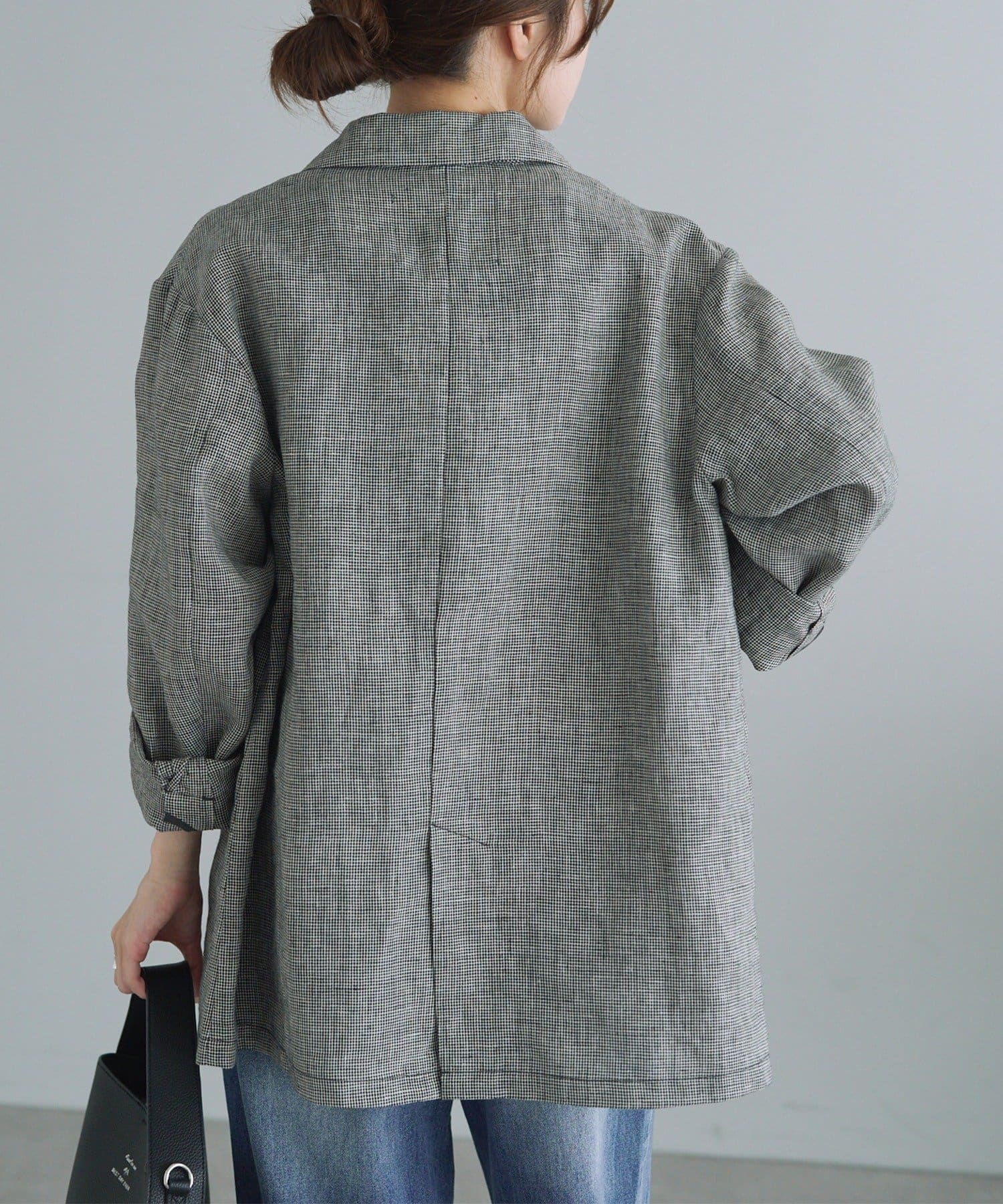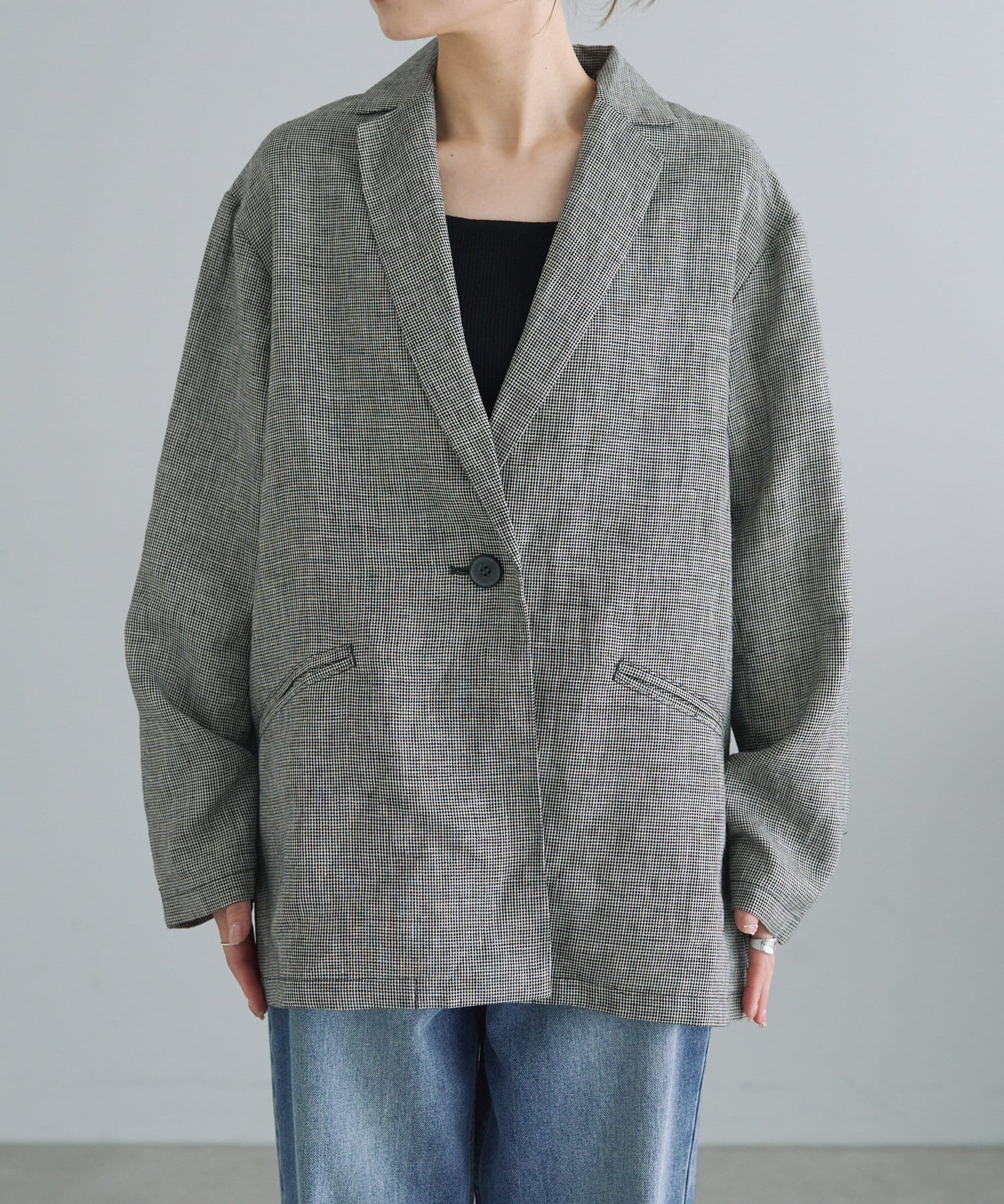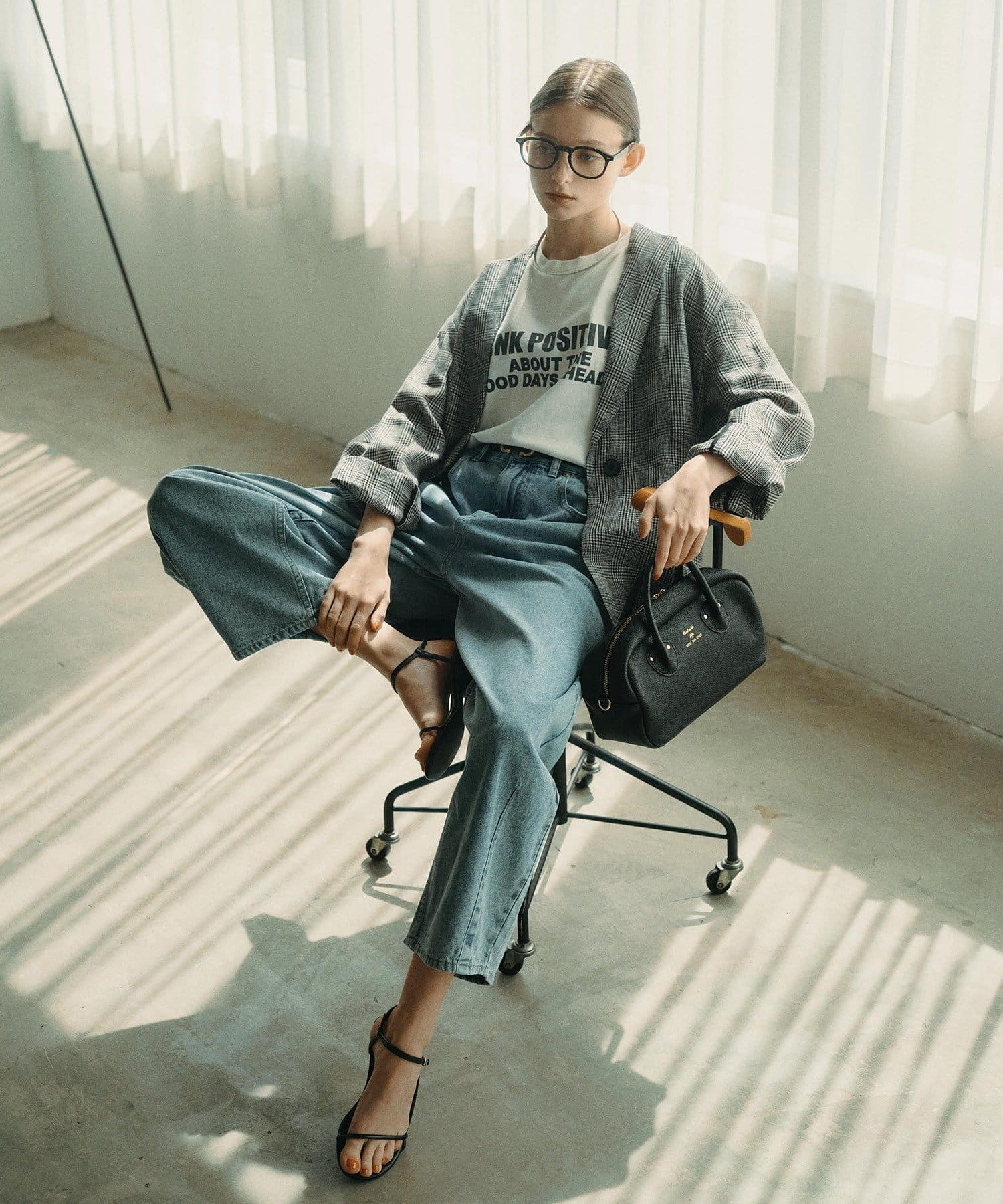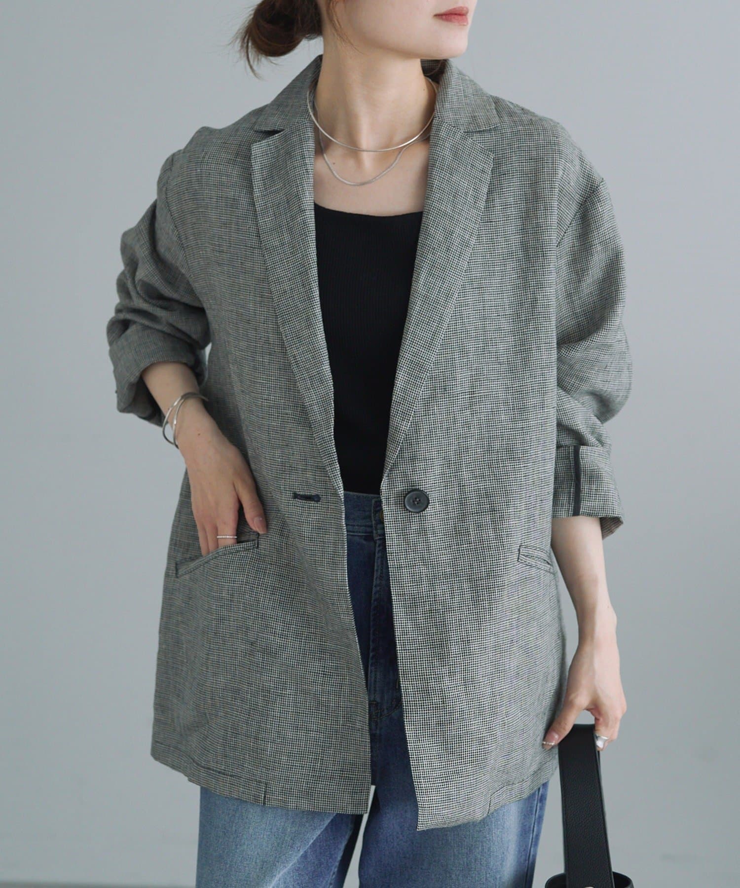 トレンド感のある程よいオーバーサイズのチェックジャケット。