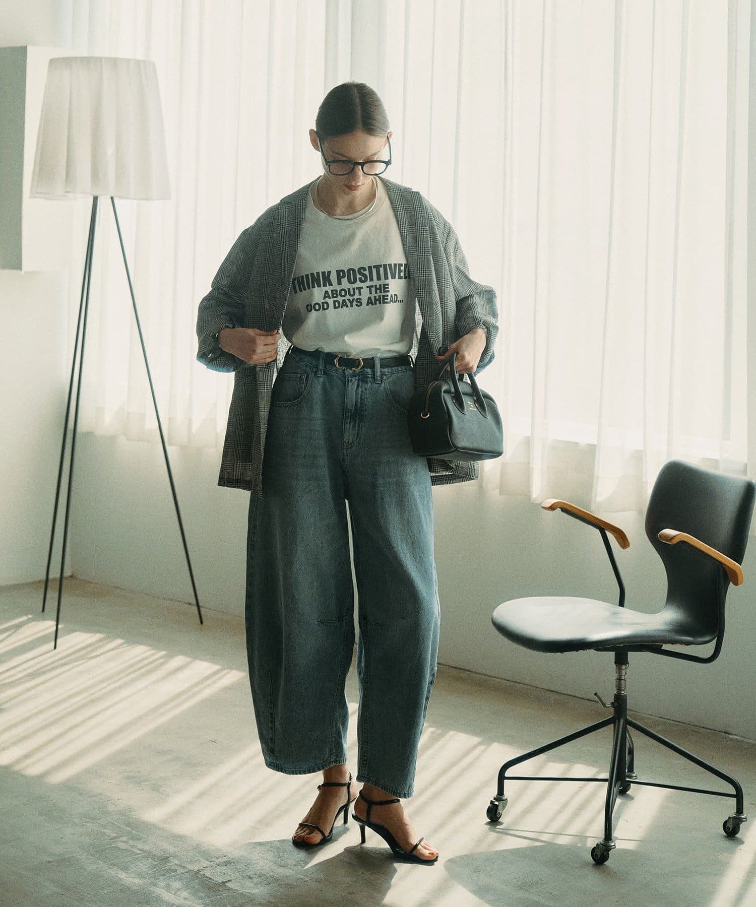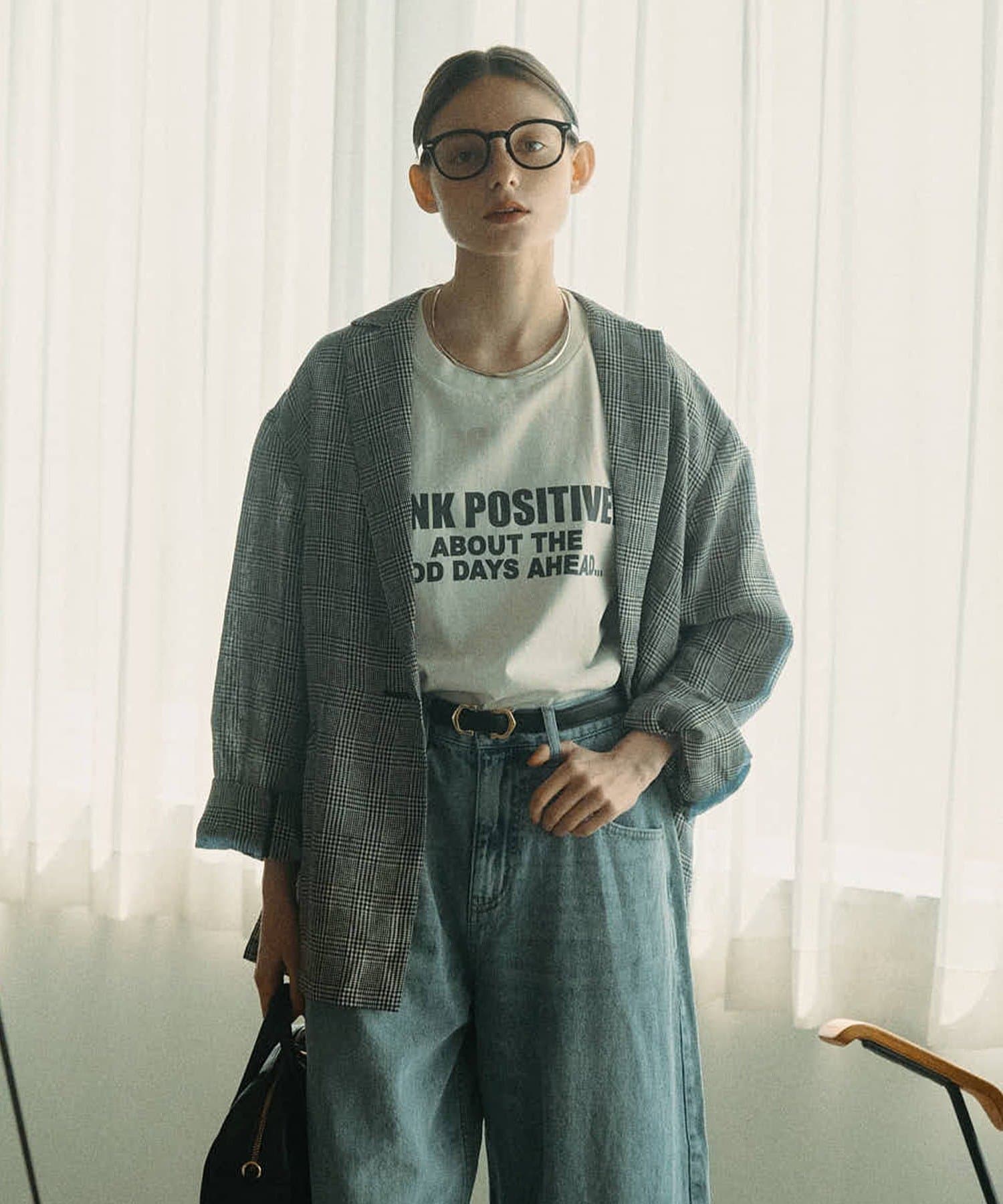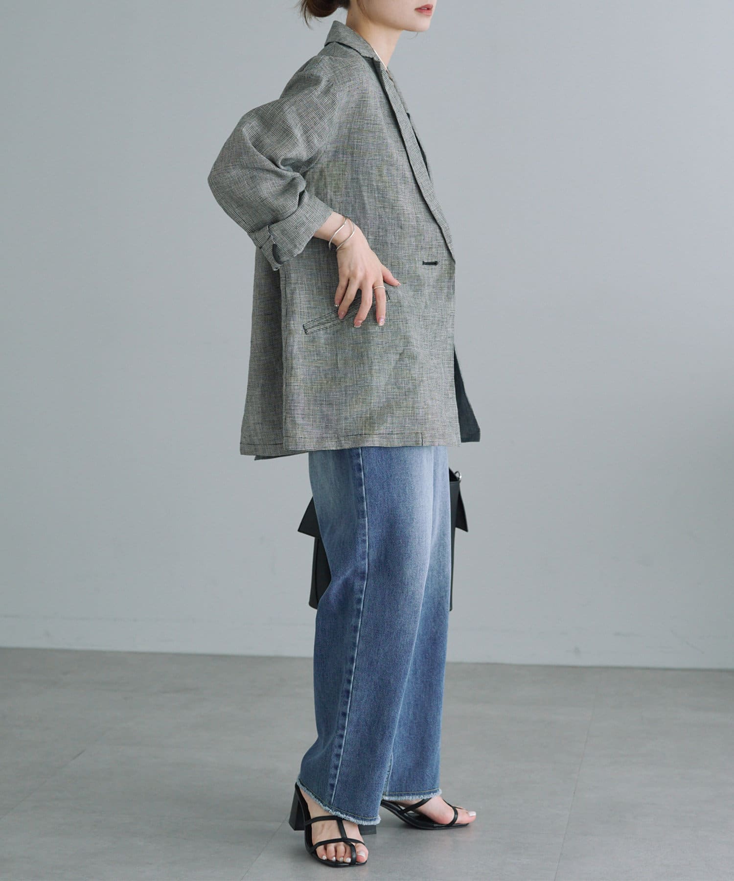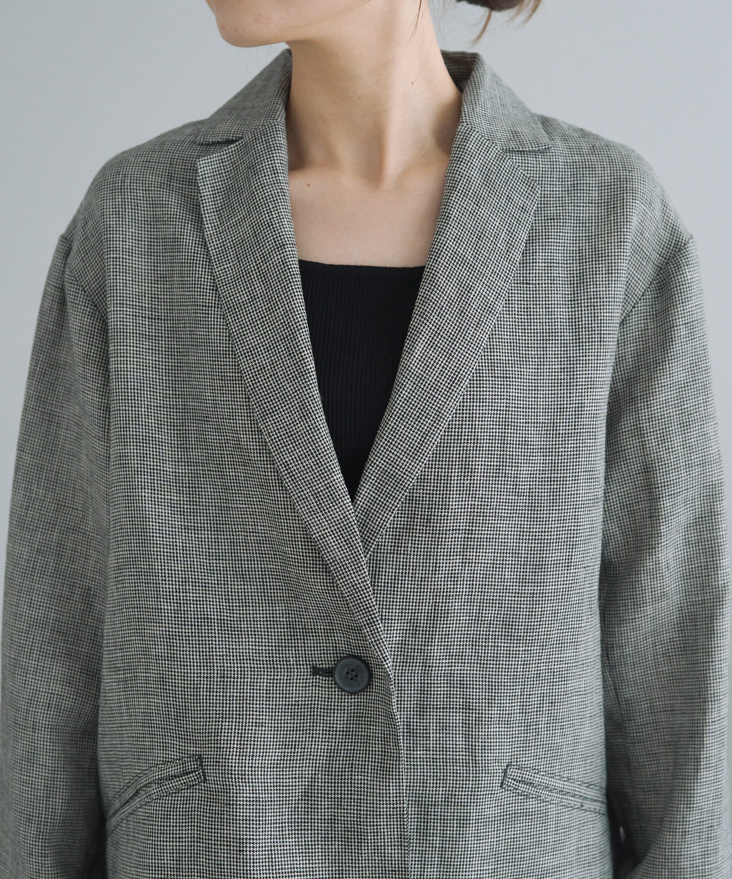 トレンド感のある程よいオーバーサイズのチェックジャケット。