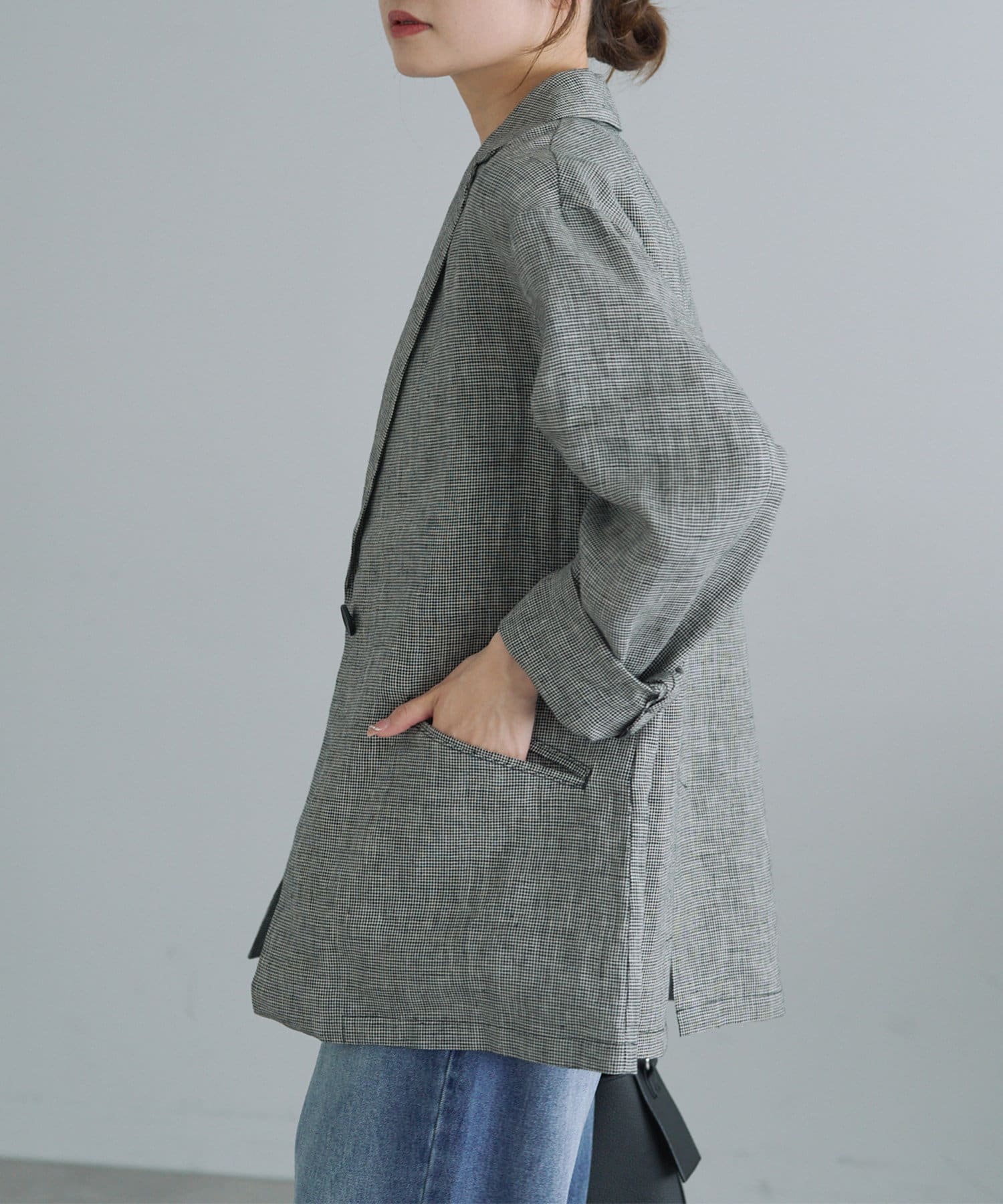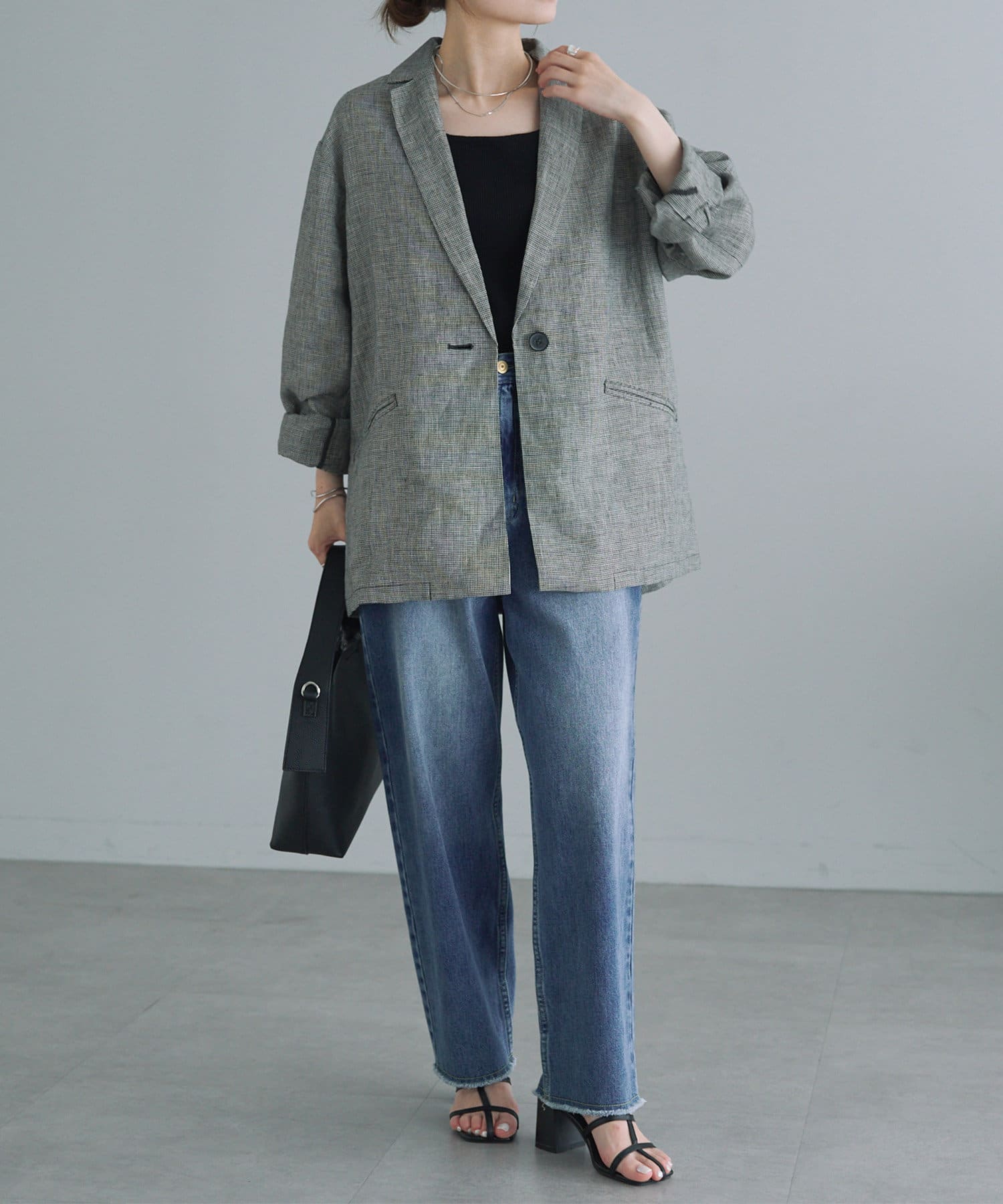 1つボタンのデザインは、合わせるアイテム次第でカジュアルな装いからビジネスシーン・フォーマルな場にもマッチします。