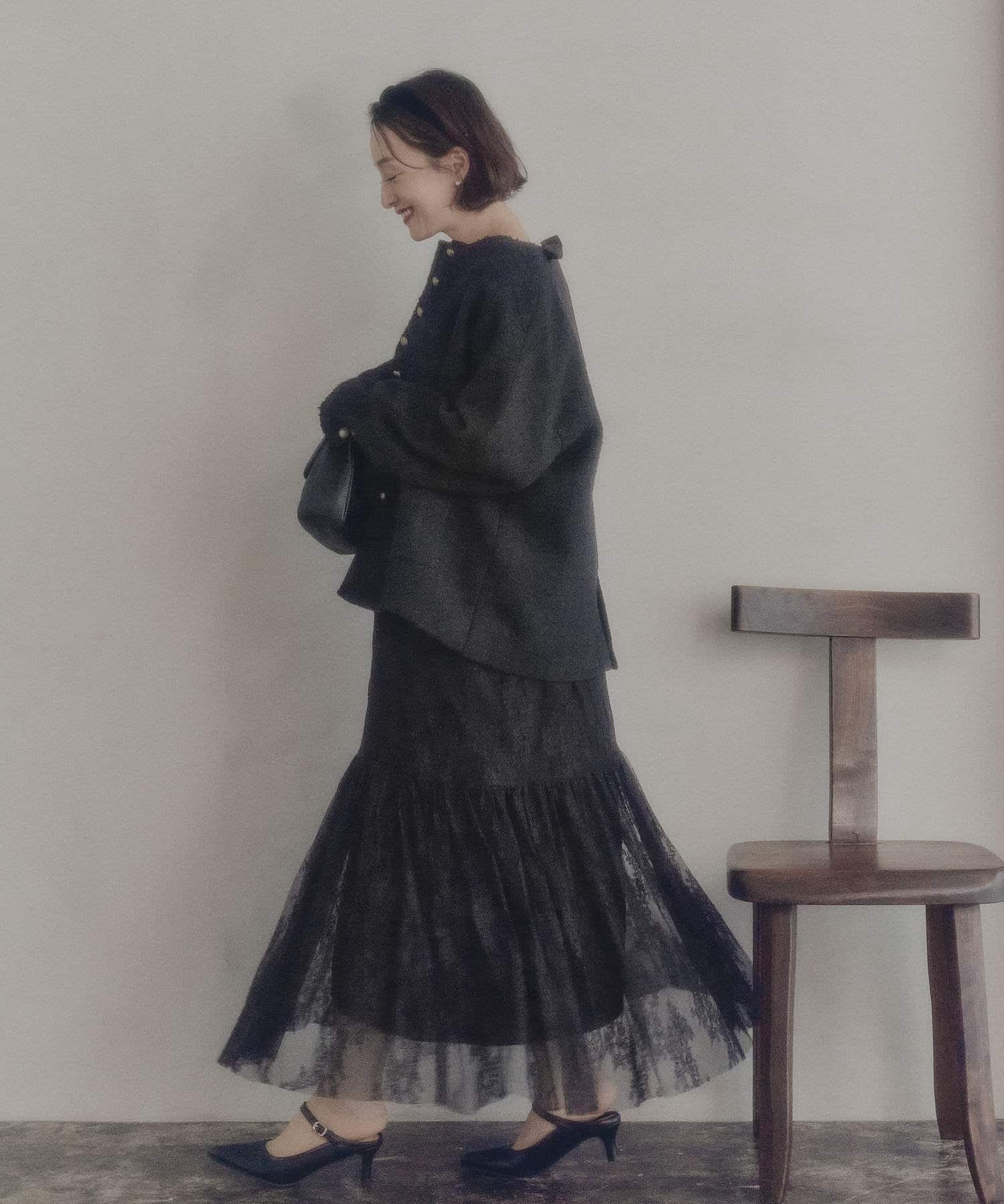 ふんわりとしたボリュームスリーブがさらに女性らしさを引き立てます。