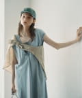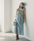 インナーにロゴTを合わせてワンピースのVネックからチラ見せするとこなれた印象に。