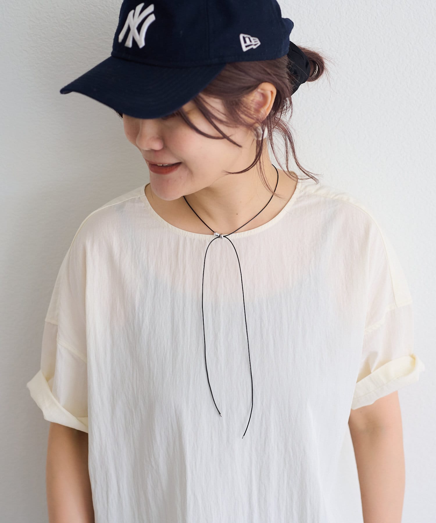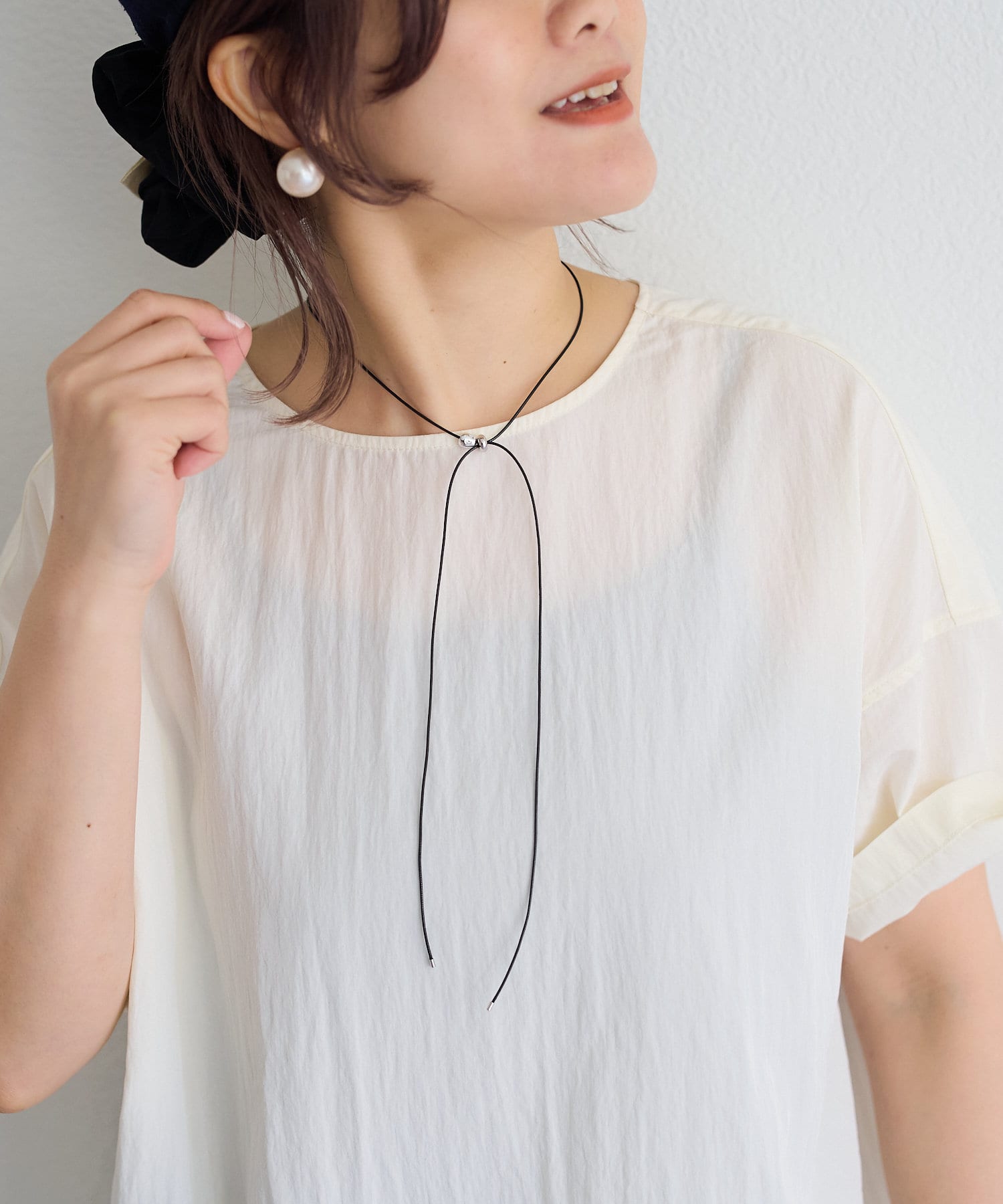 前に垂らしてラリエットネックレス風なつけ方から、コードを後ろに流す使い方も◎