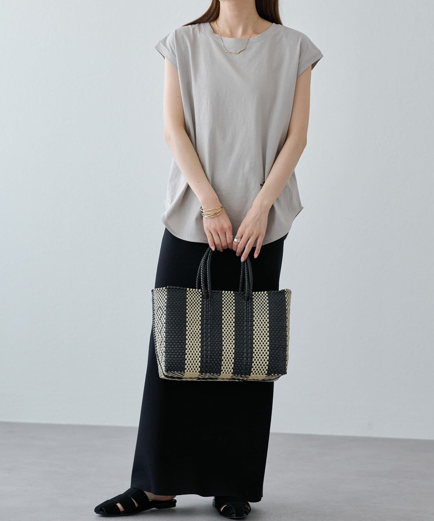 素材感がコーディネートのアクセントになるメルカドバッグ。