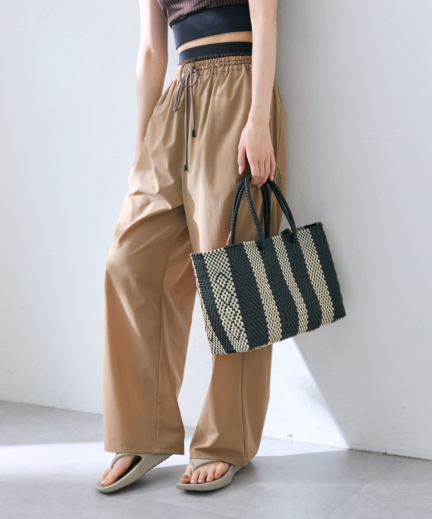 夏のスタイルを涼やかに演出する編み柄がシーズンムードを高めるアイテムです。