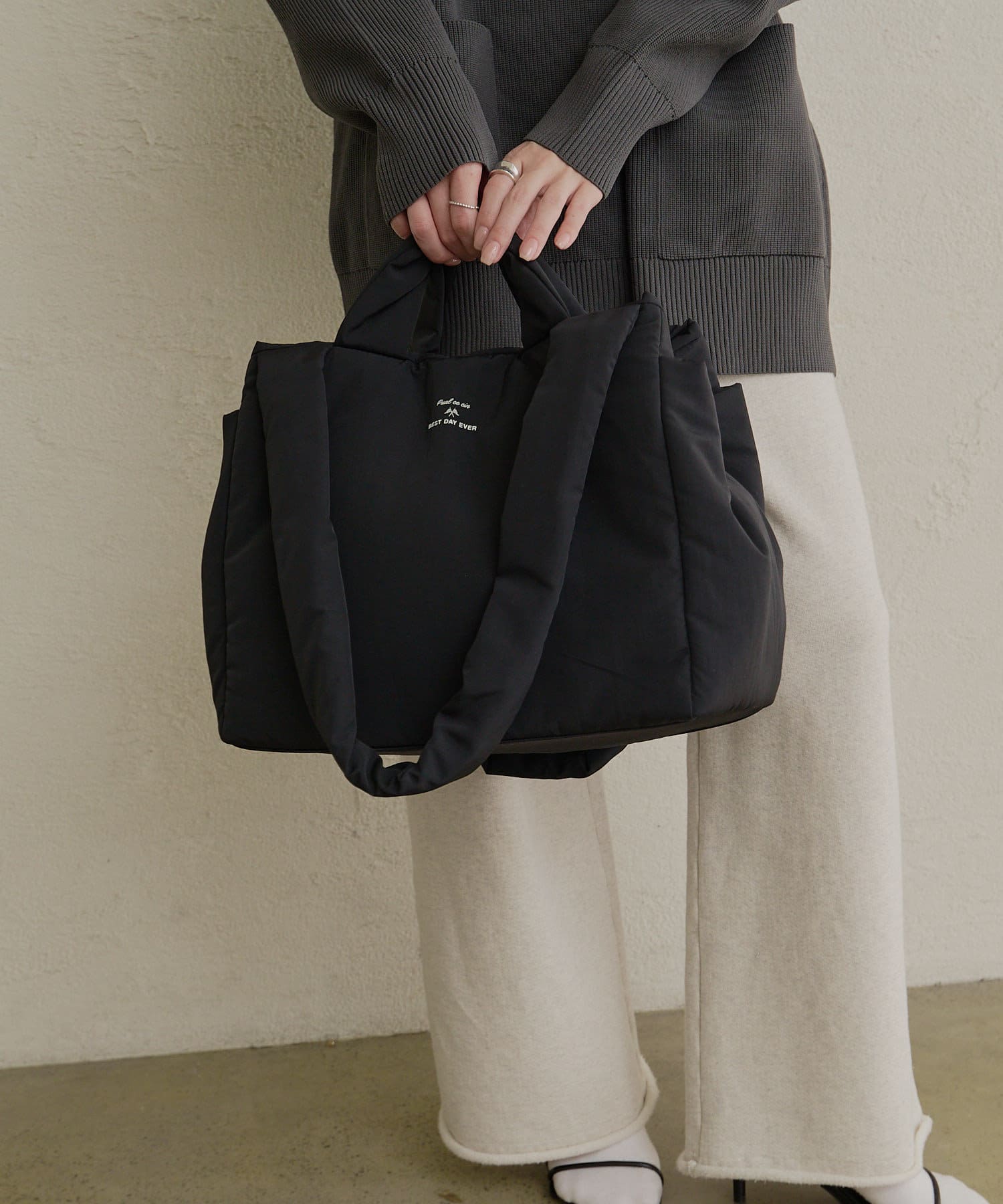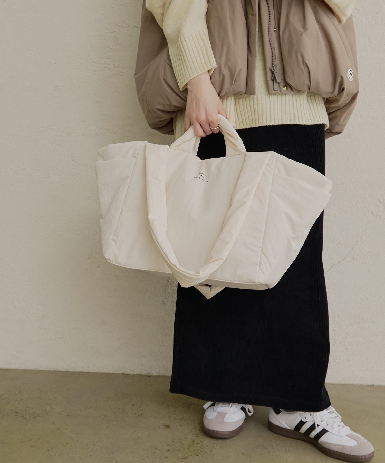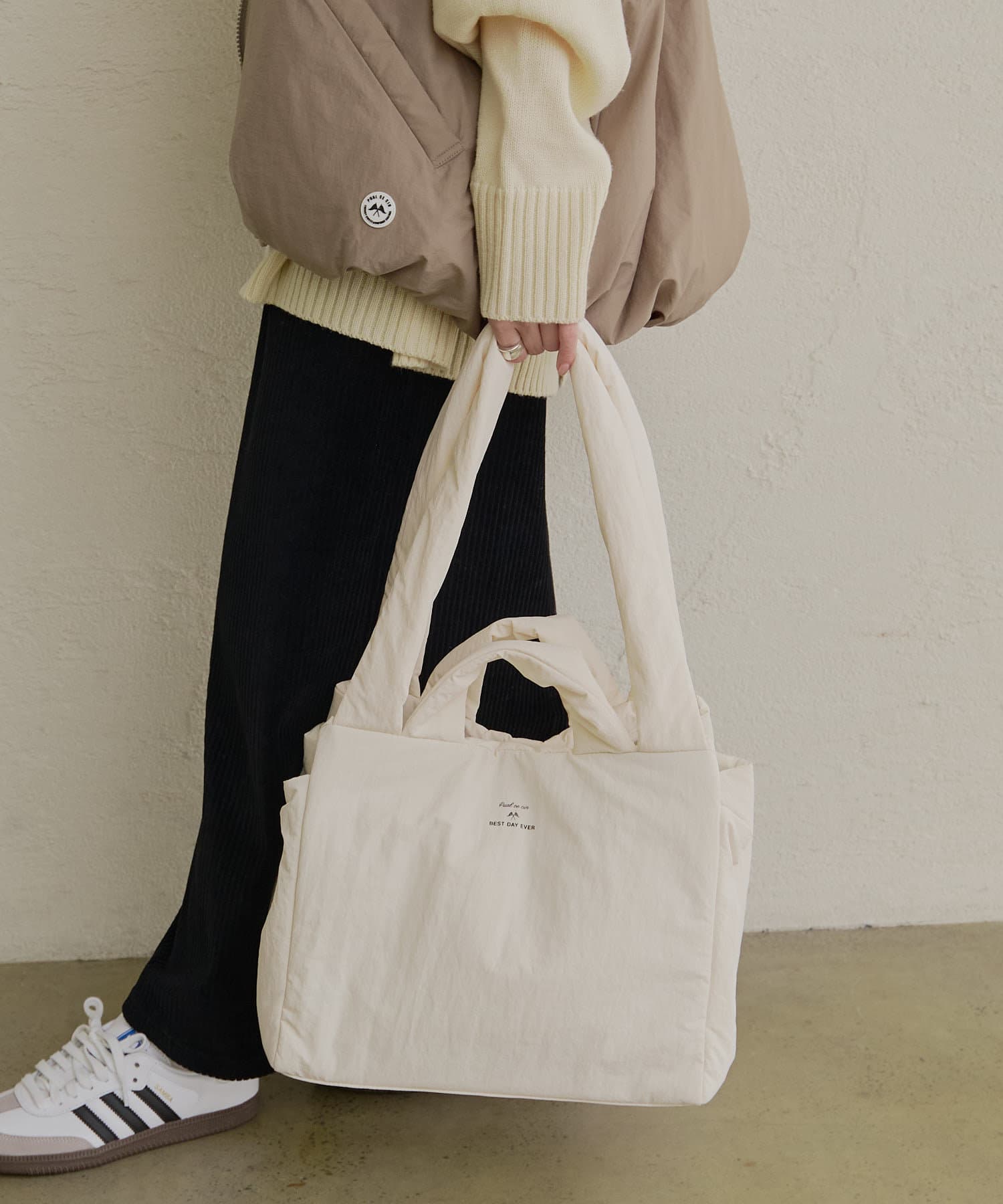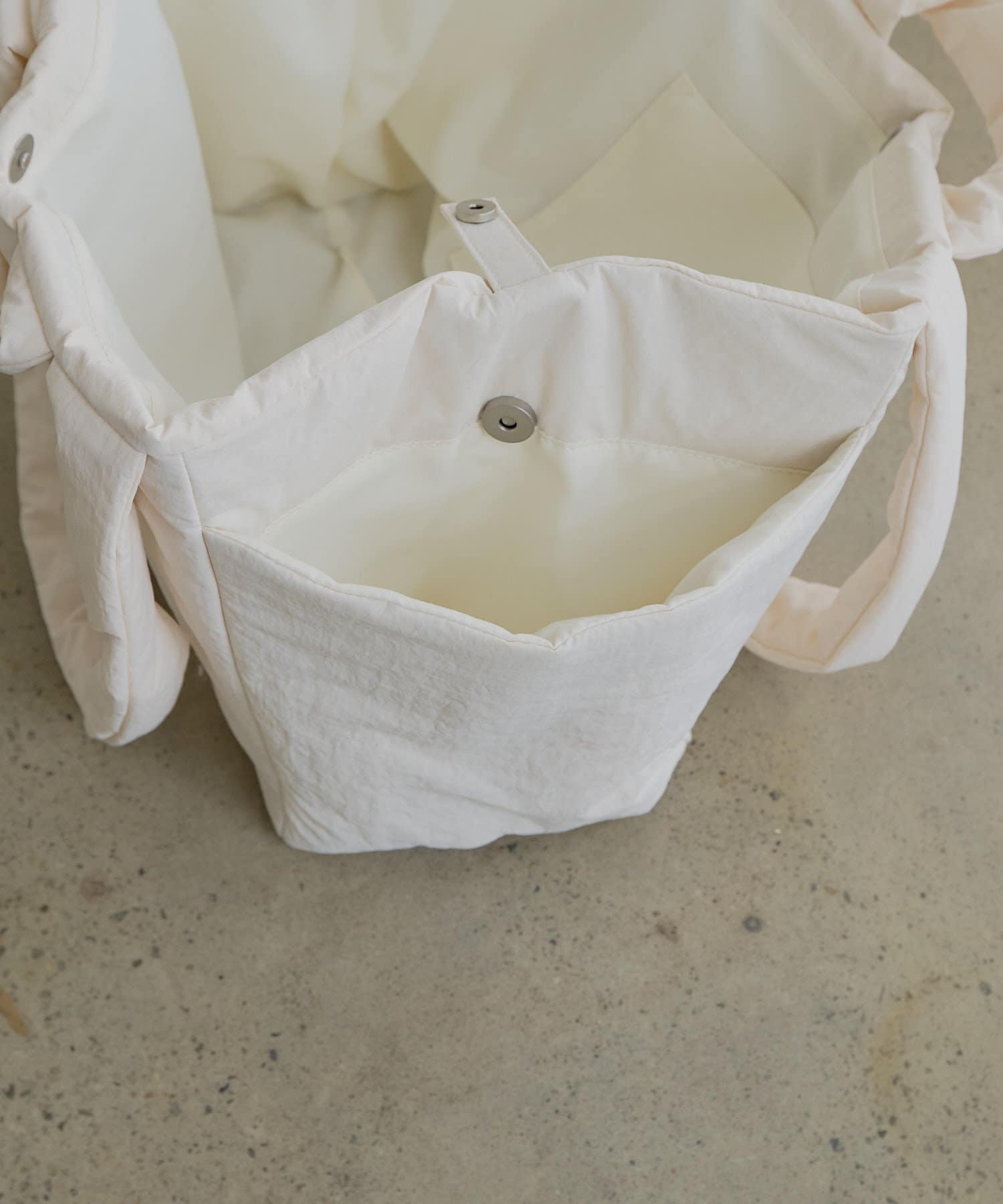 中綿を入れてふっくら仕上げたボリューム感が可愛いパファーバッグ。