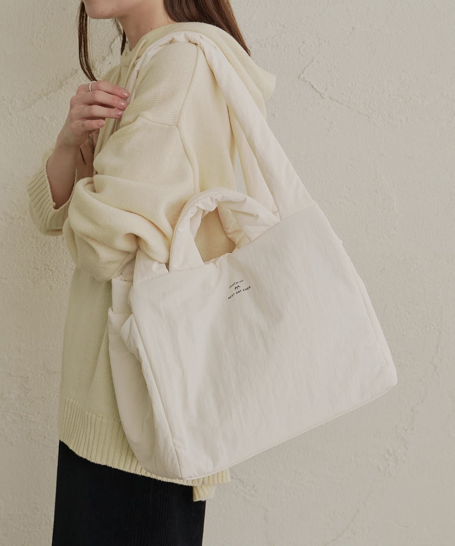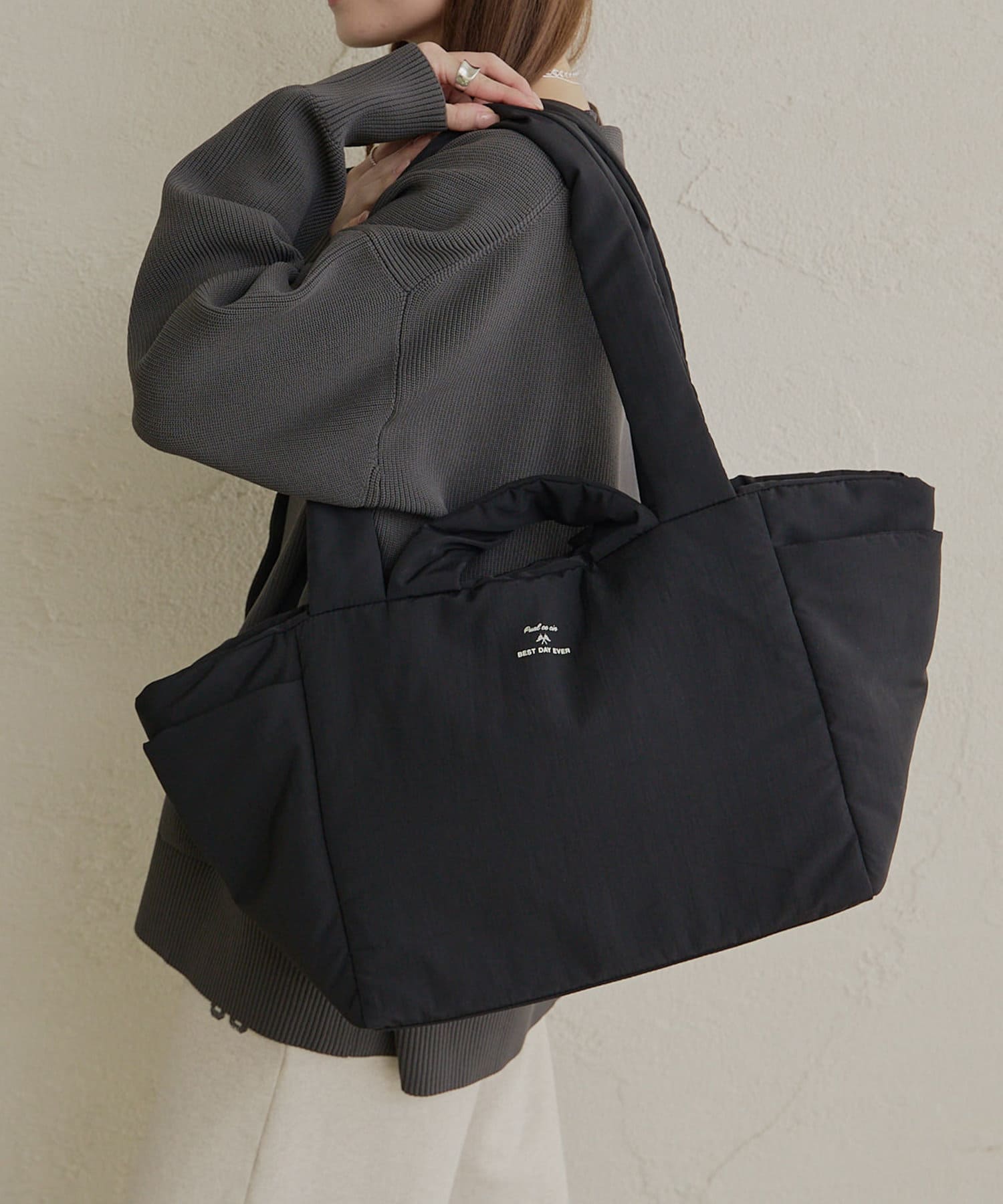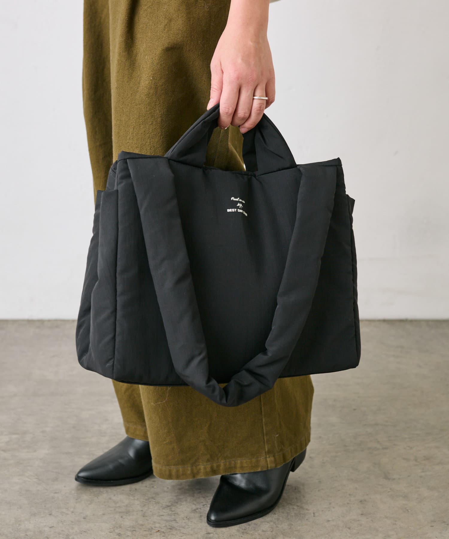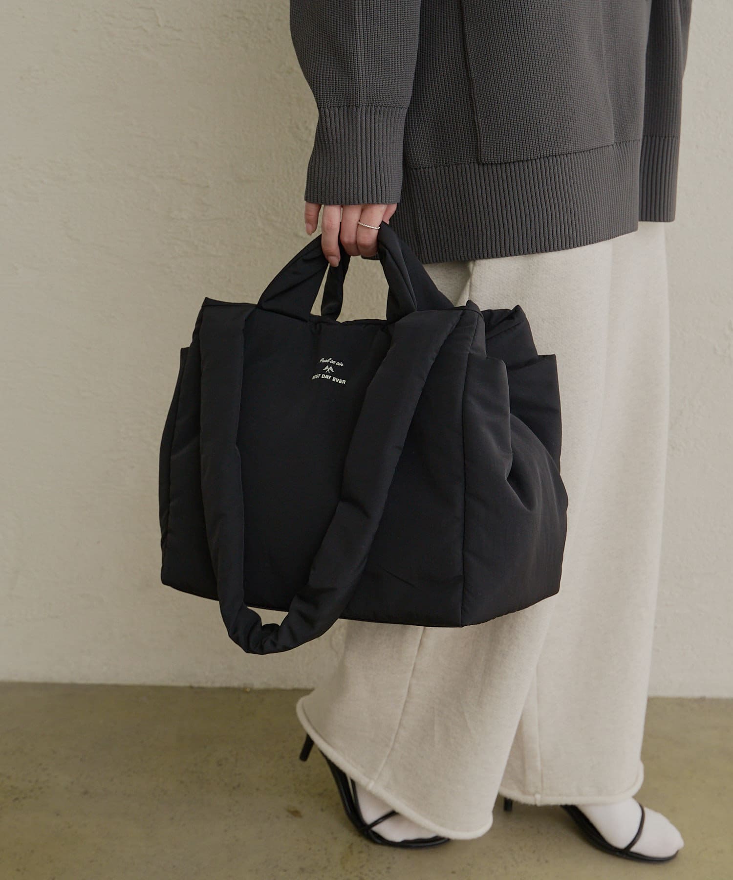 中綿を入れてふっくら仕上げたボリューム感が可愛いパファーバッグ。