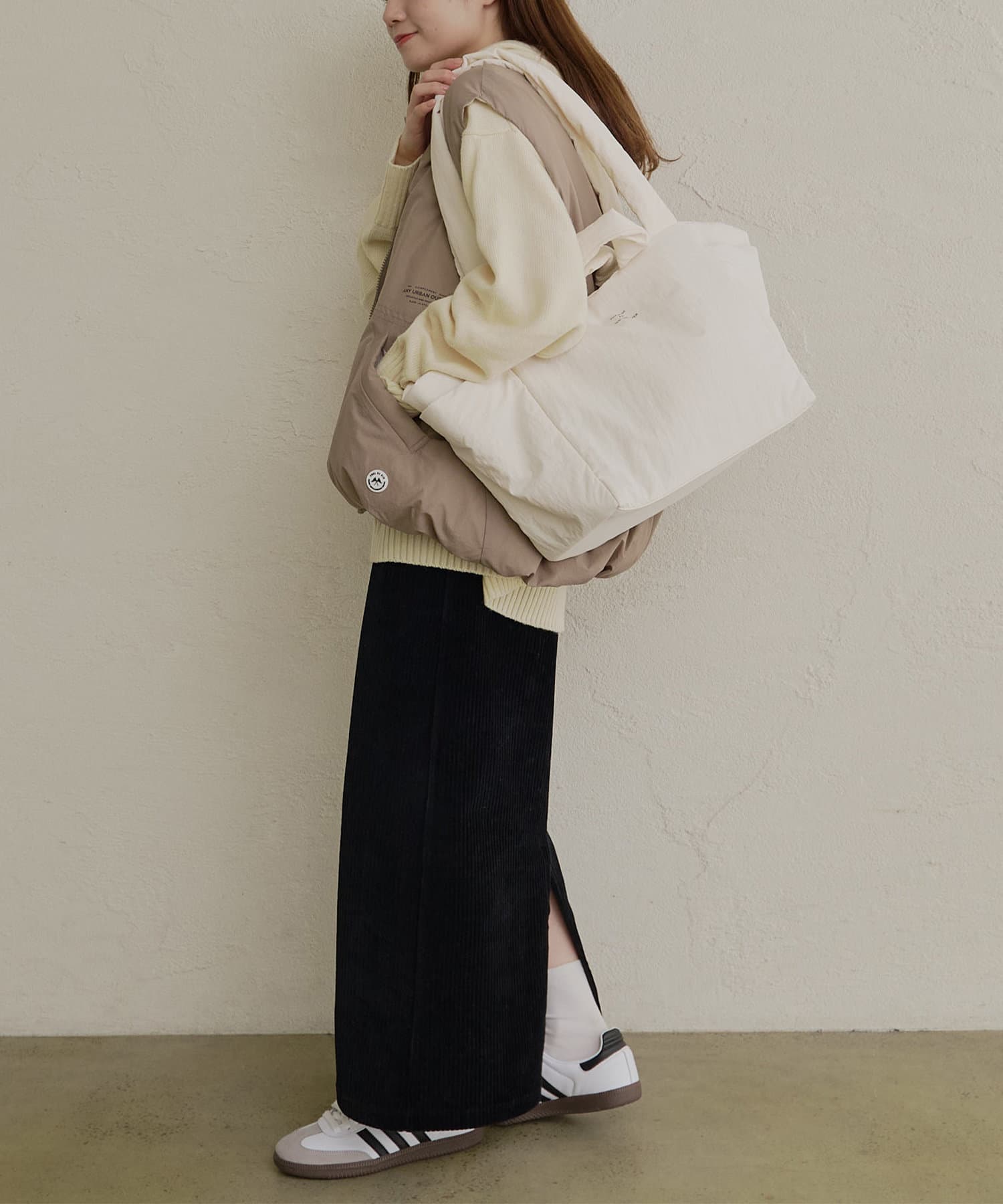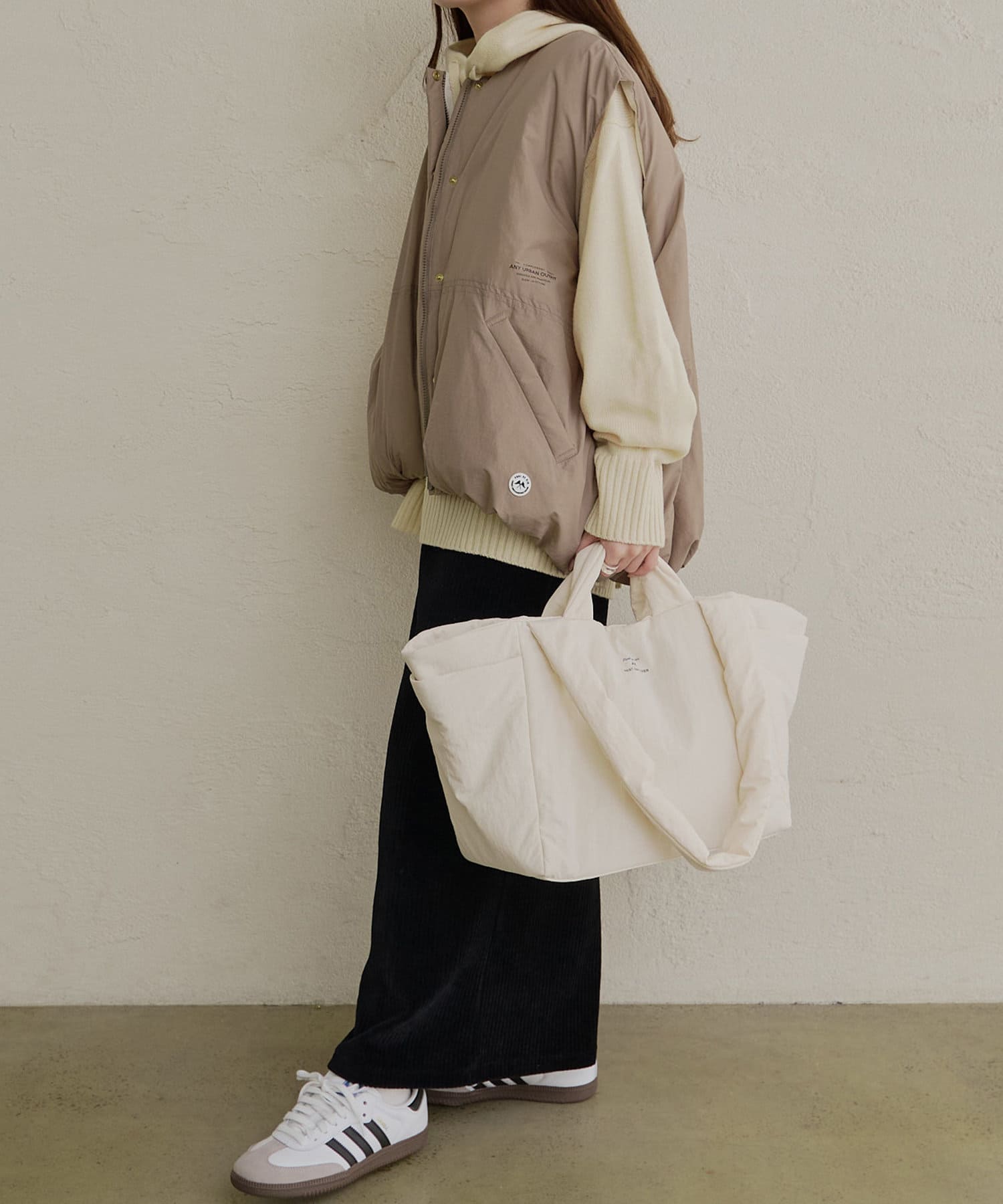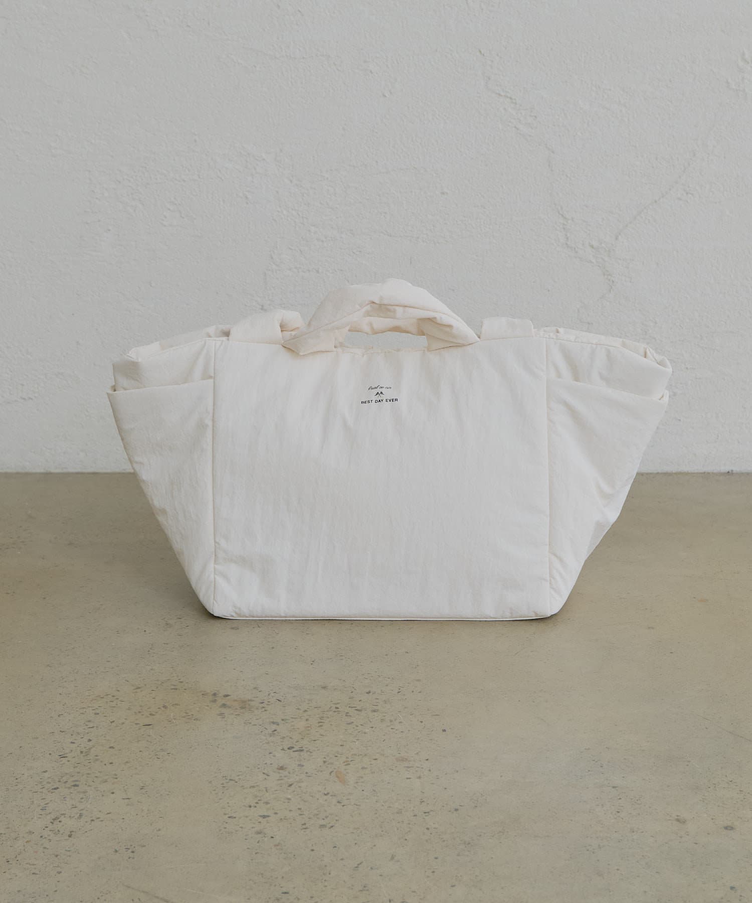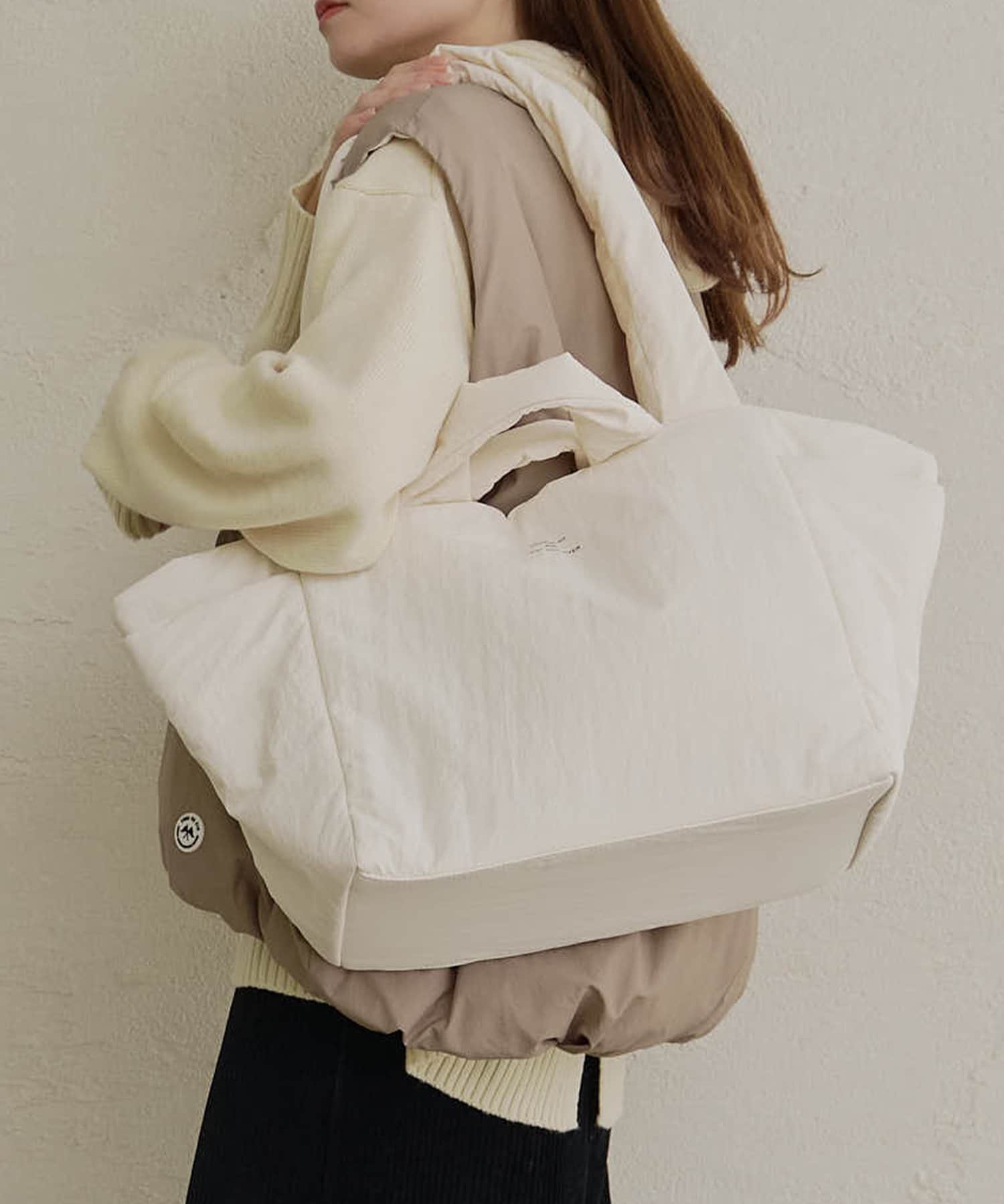 中綿を入れてふっくら仕上げたボリューム感が可愛いパファーバッグ。
