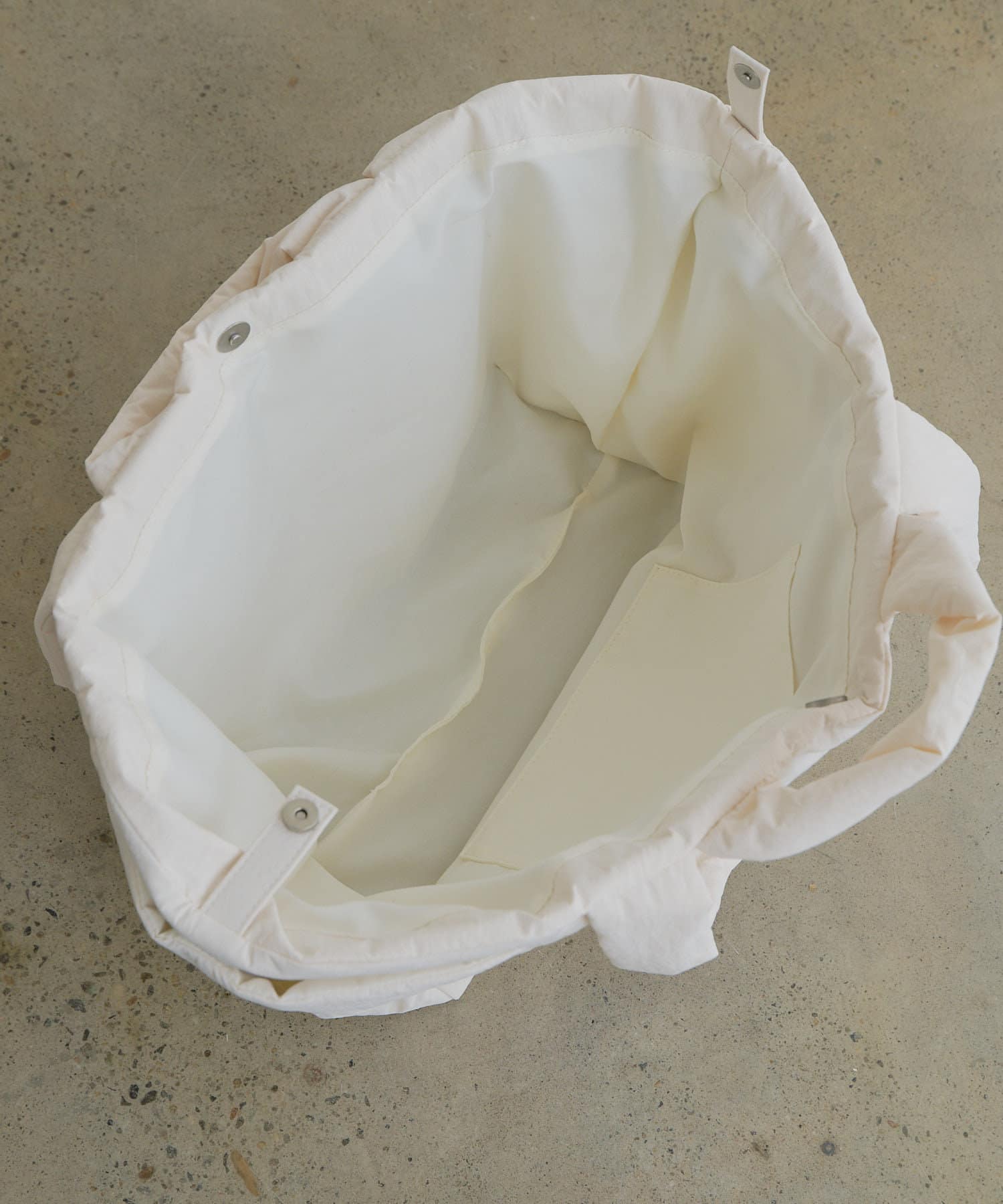 自立する本体は、お弁当や500mlのペットボトル、メイクポーチなどがすっぽりと入る収納力を備えています。