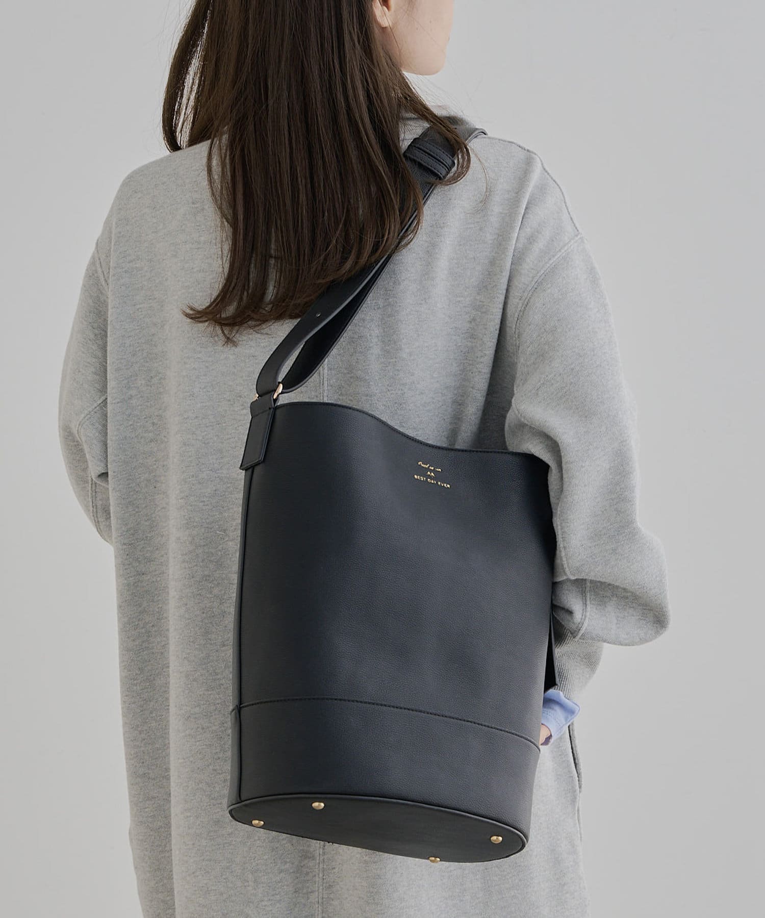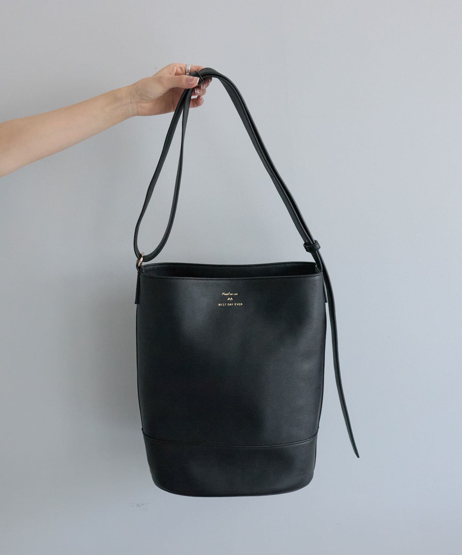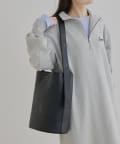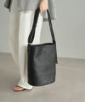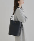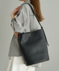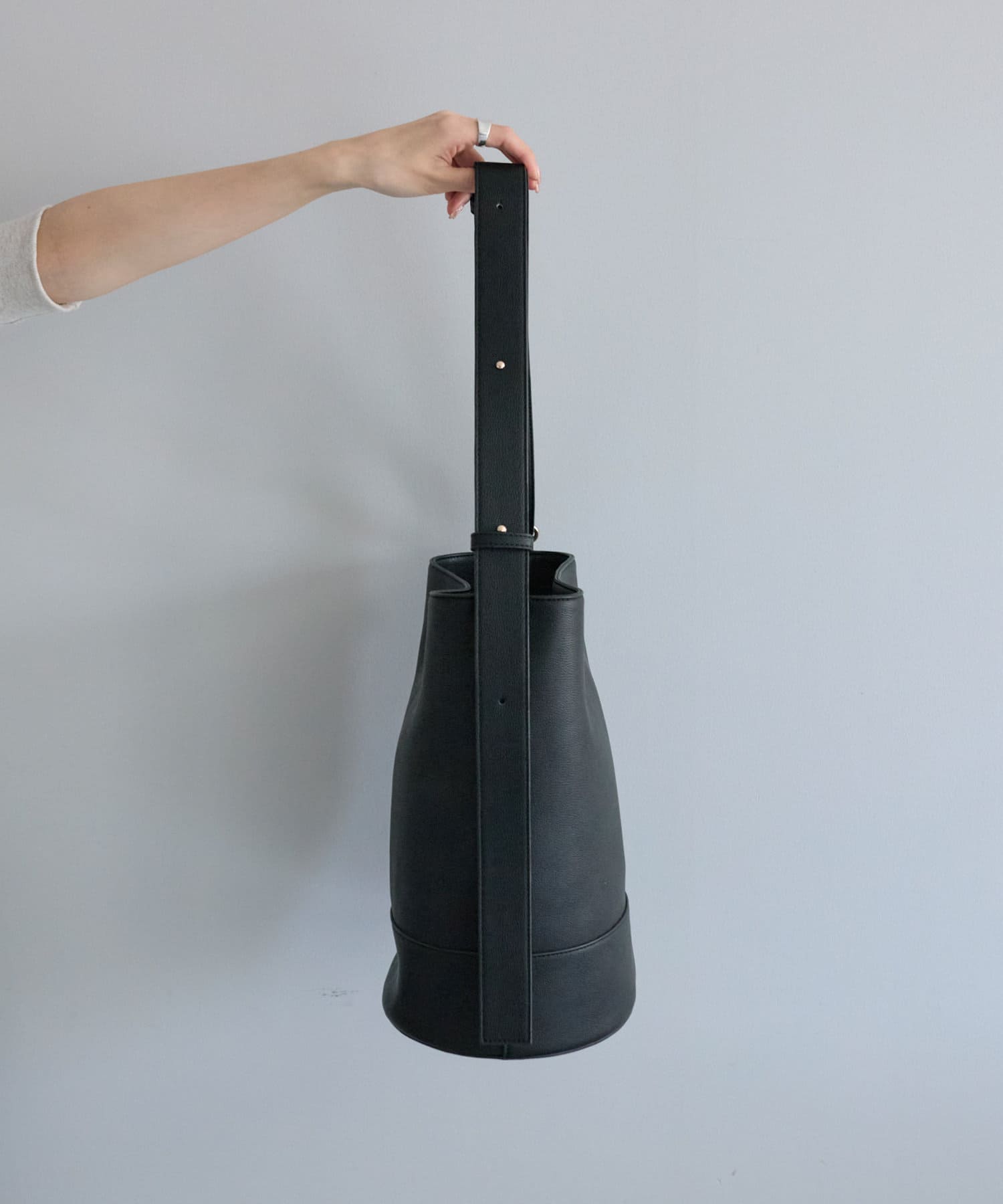 シンプルなフォルムとデザインが魅力のフェイクレザーのバケツバッグ。