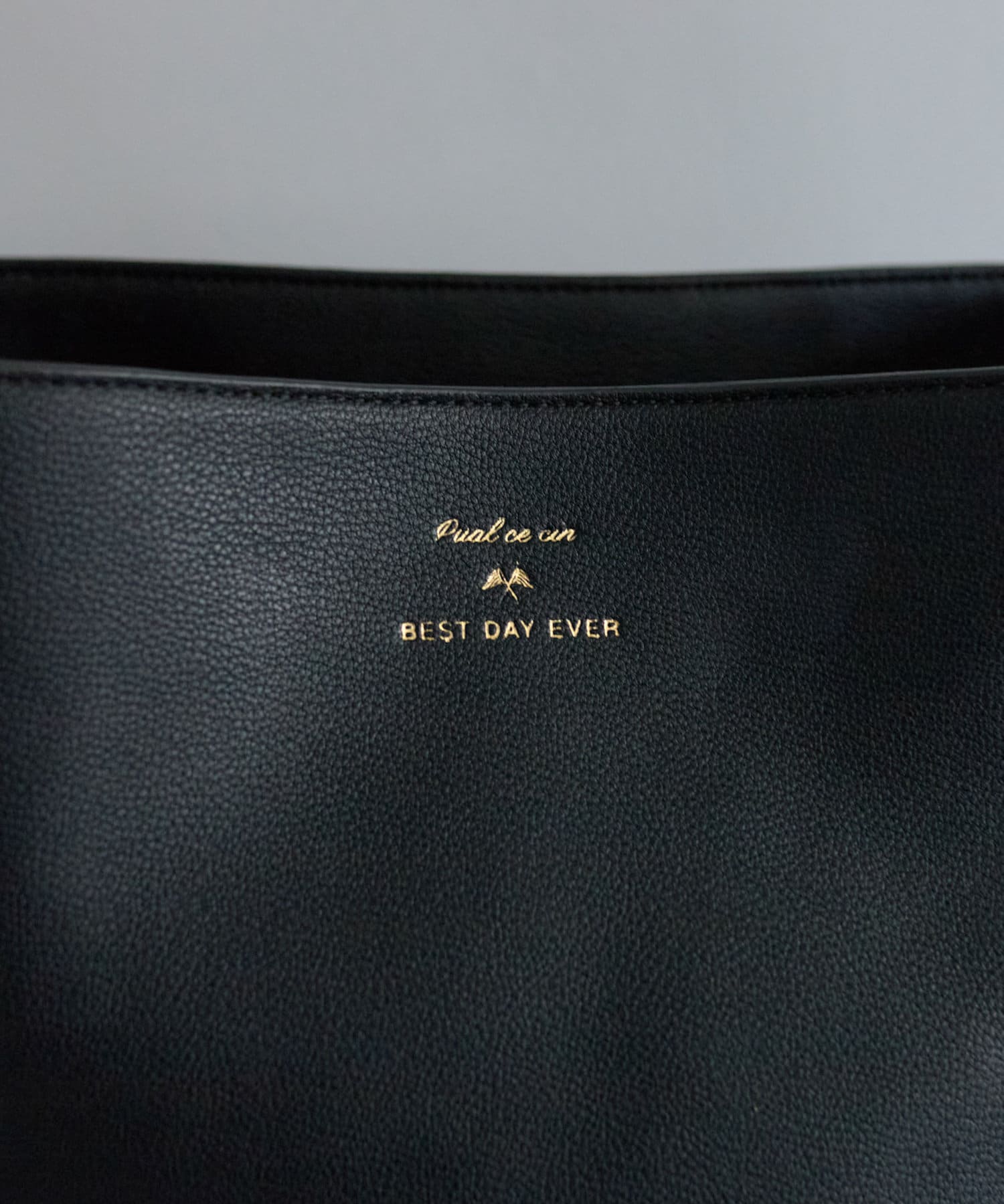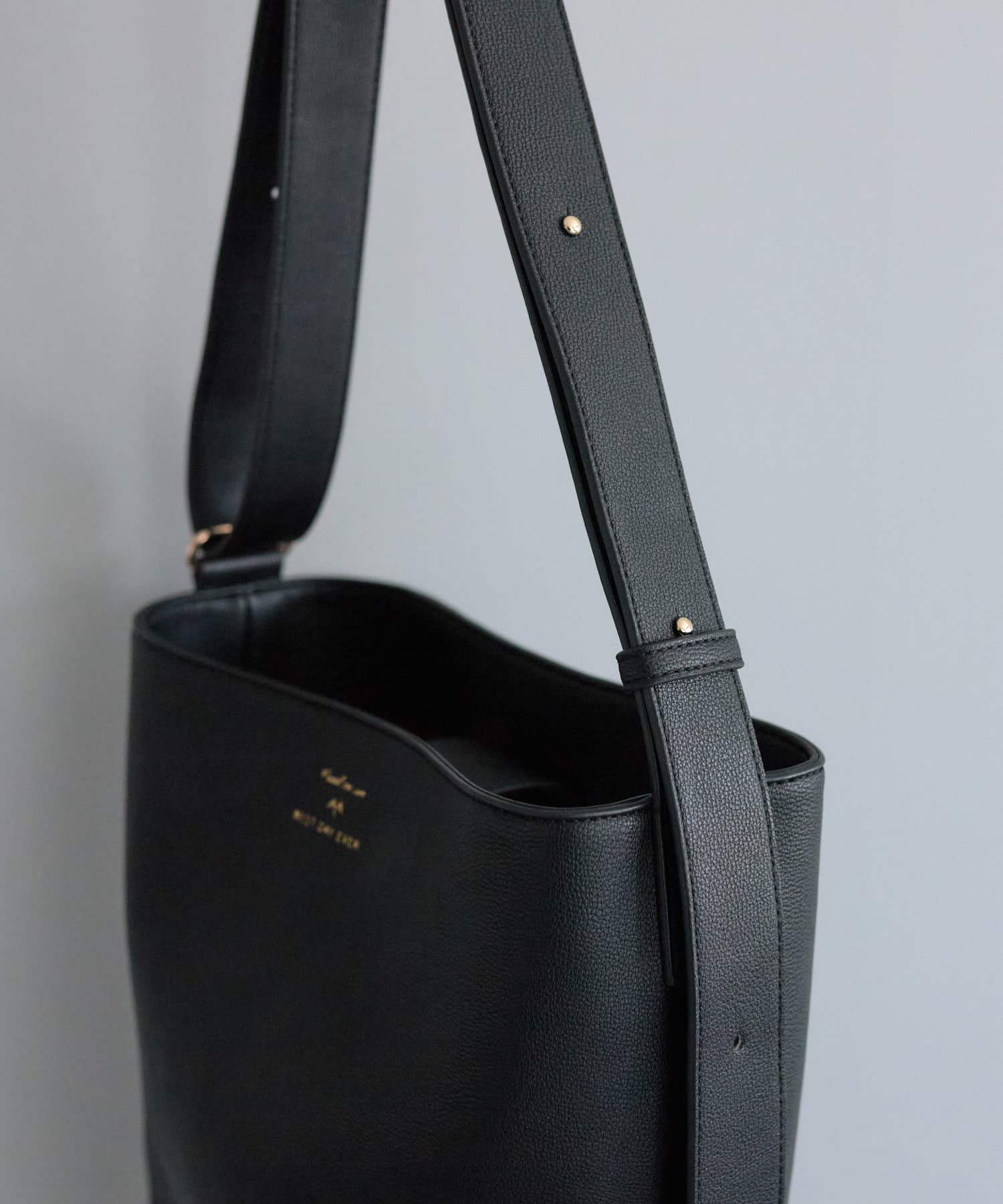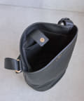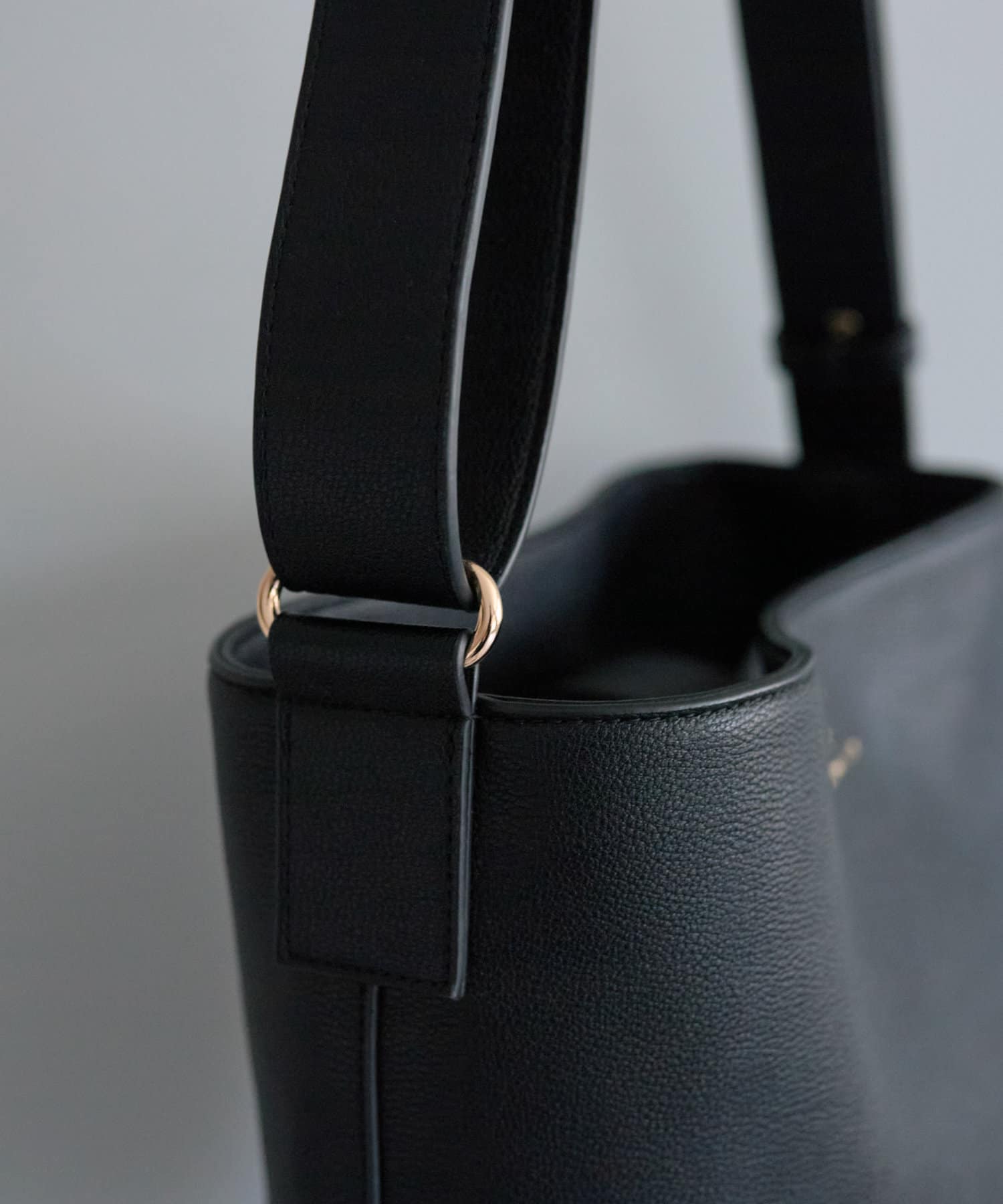 シンプルなフォルムとデザインが魅力のフェイクレザーのバケツバッグ。