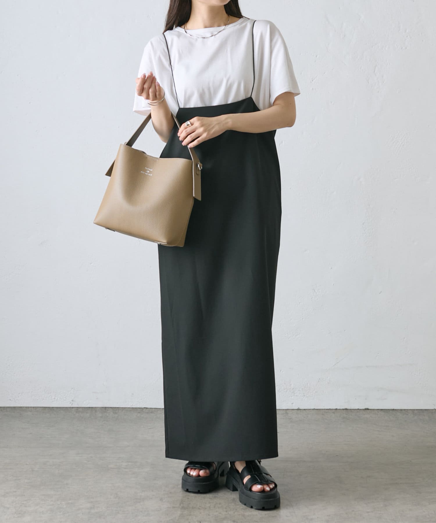 底マチがあることで、長財布や500mlのペットボトル、メイクポーチなどがすっぽりと入る収納力を備え、