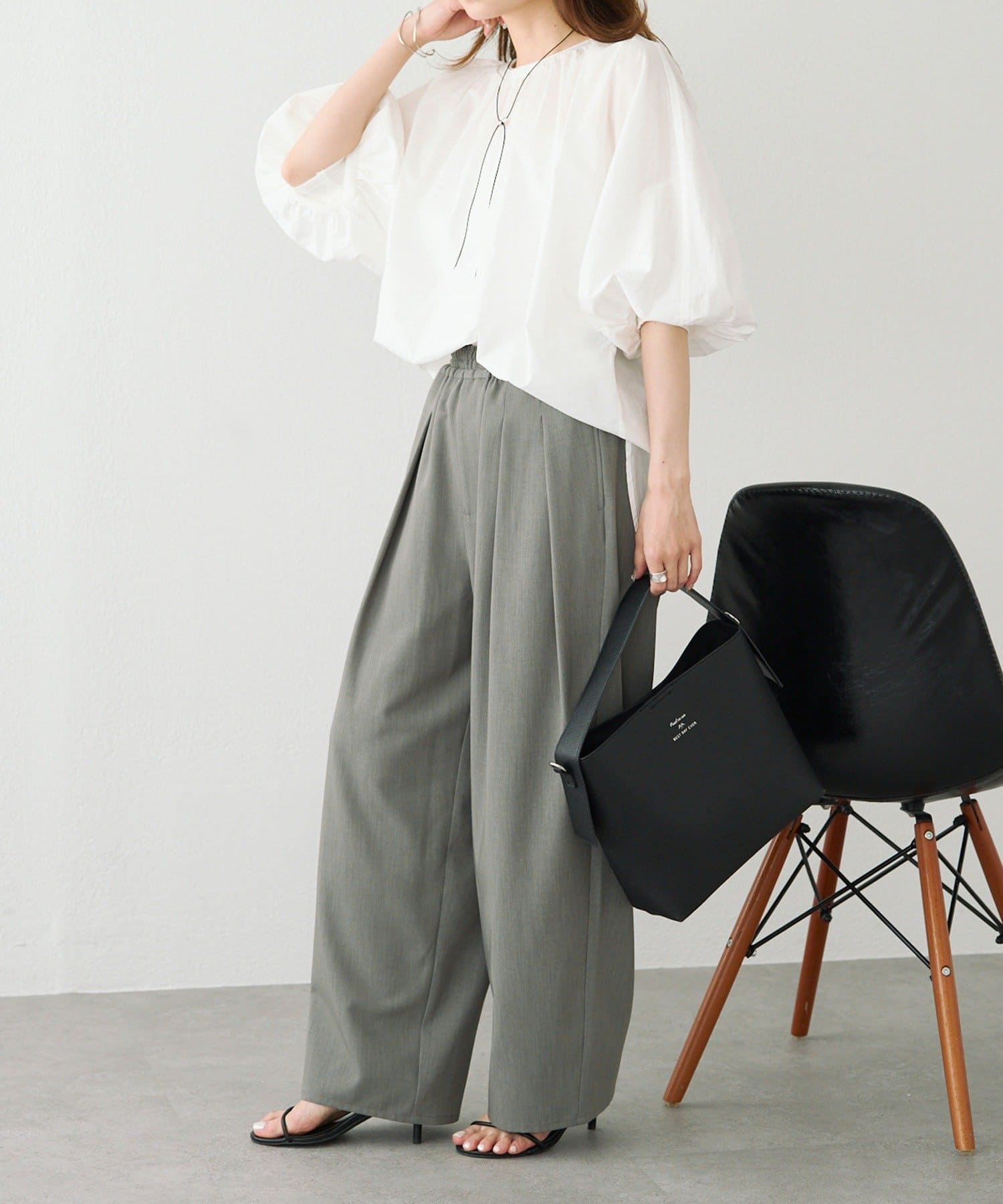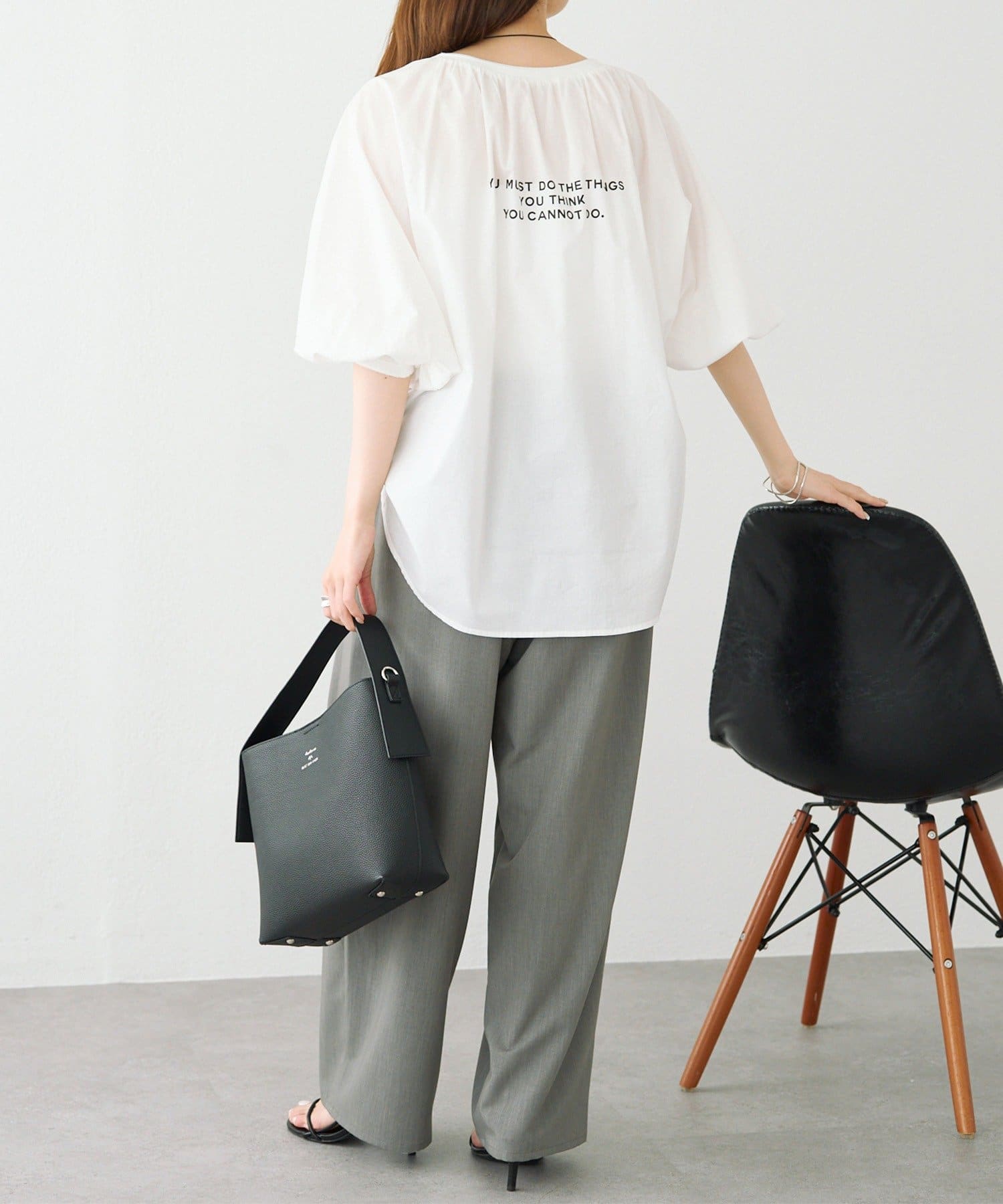 しっかりとした硬めの生地感に、ブランドロゴを控えめに添えた上品顔の一品。