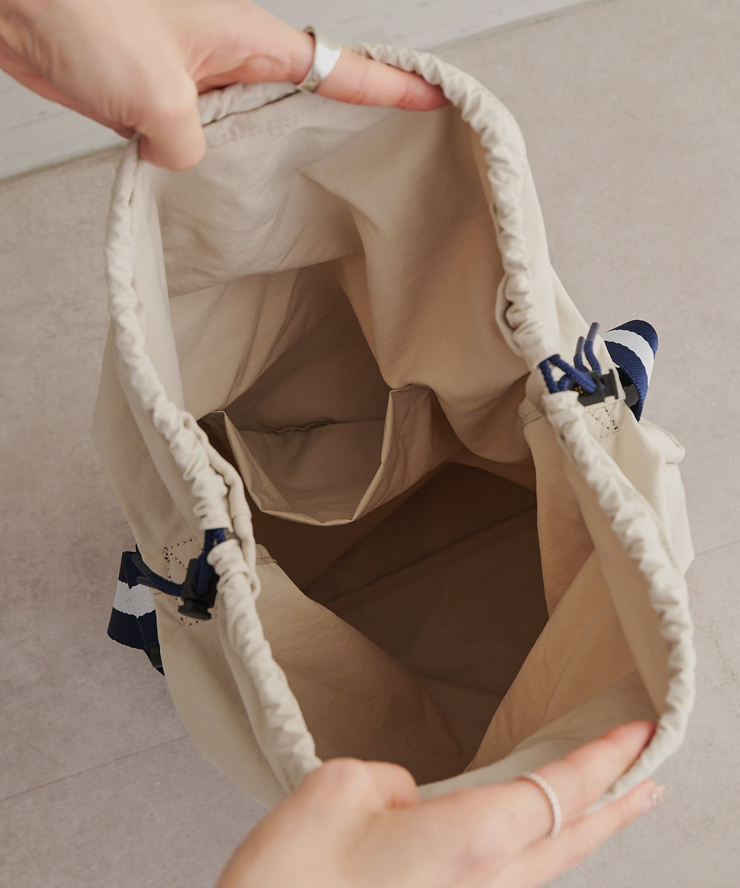 トレンドの巾着バッグをアウトドアチックなデザインでのご用意です。