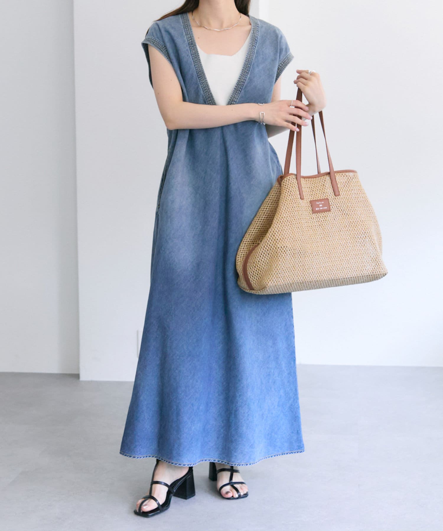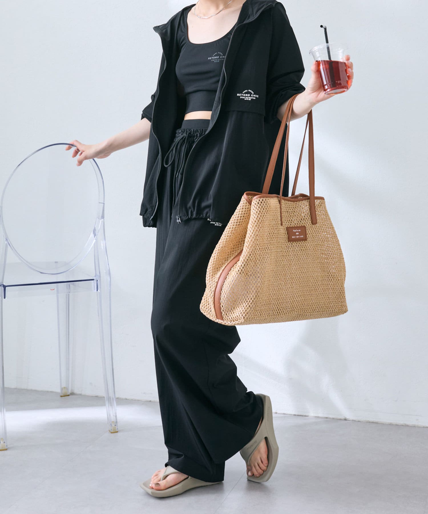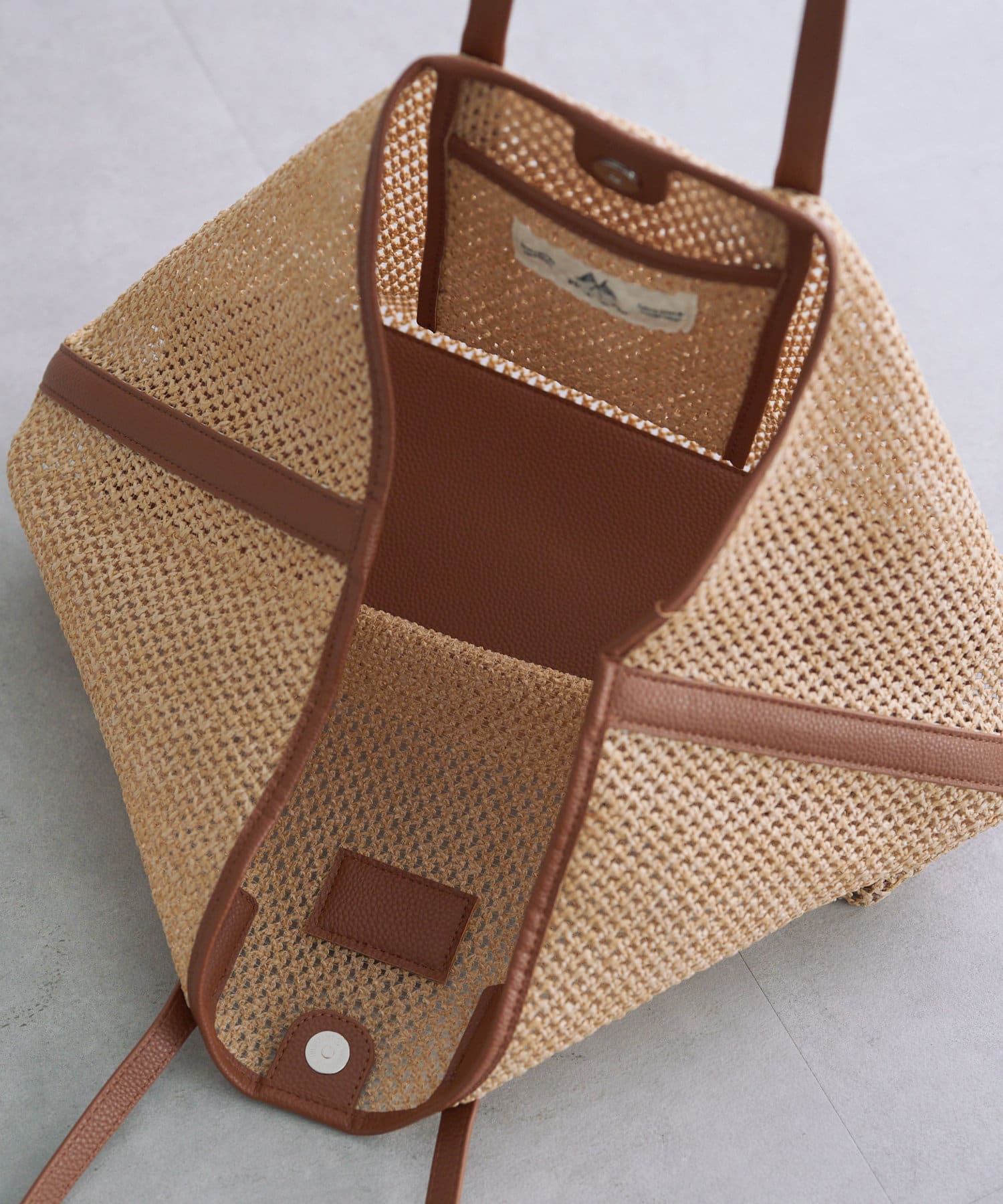 春夏シーズンにピッタリの涼し気な雑材トートバッグ。