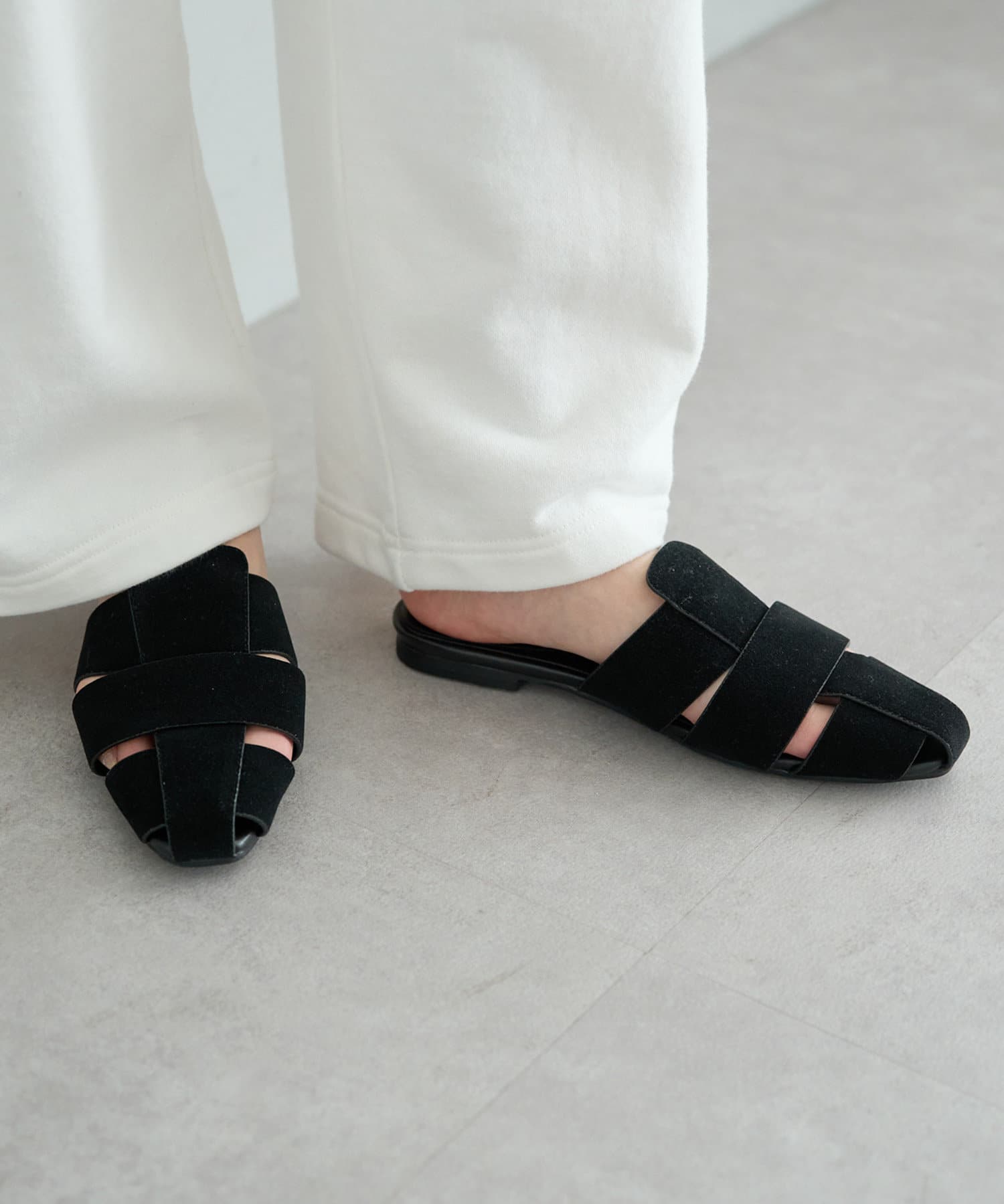スウェード調の素材を使用しミュール型に落とし込むことで、プチプラながら上品で大人な着こなしにもマッチします。