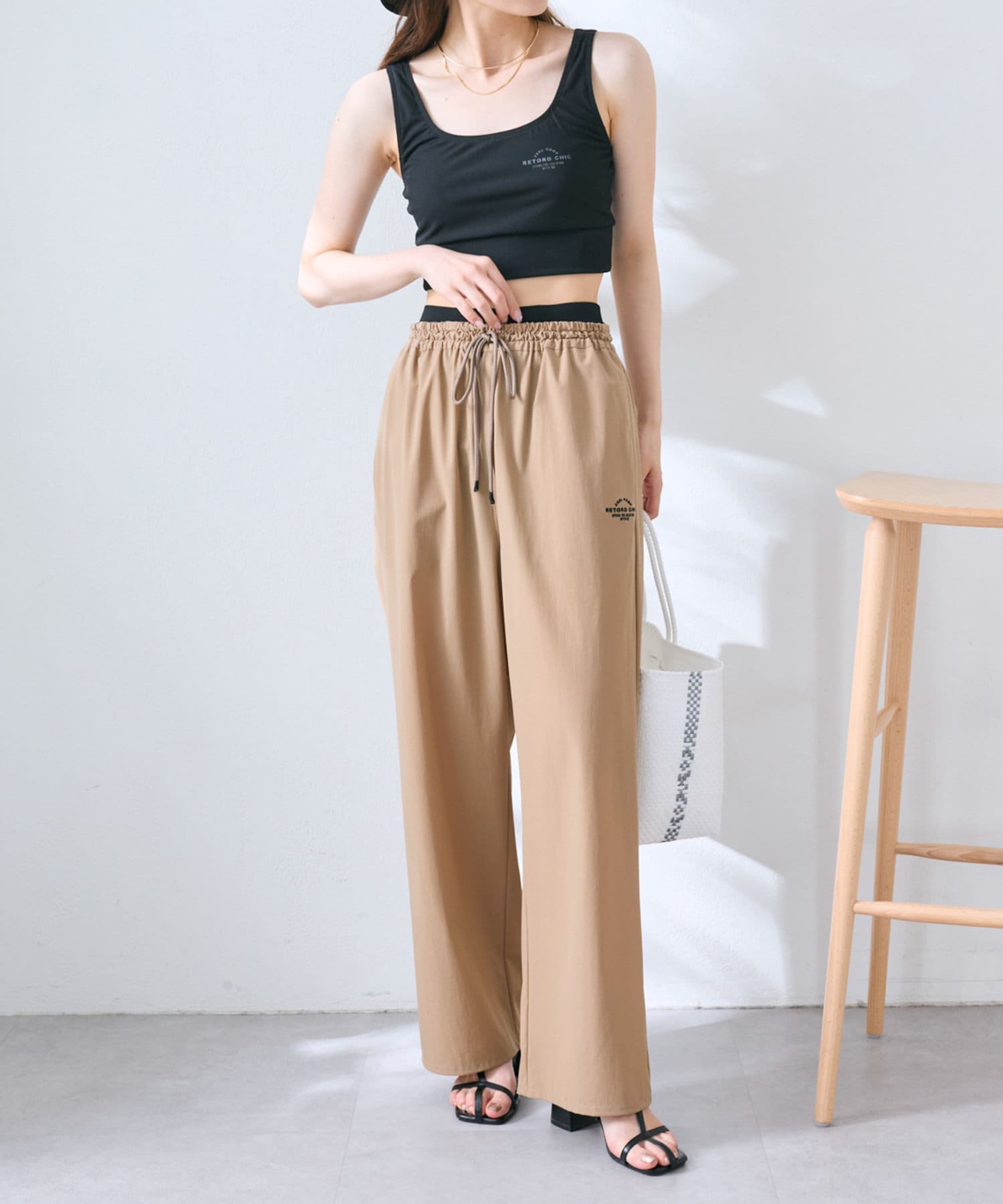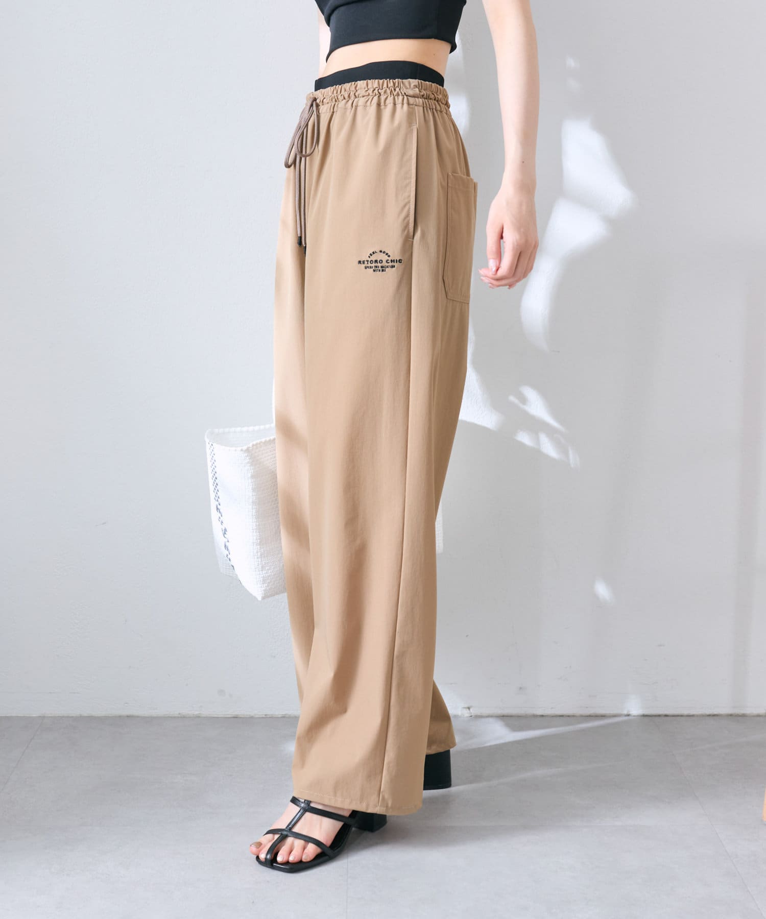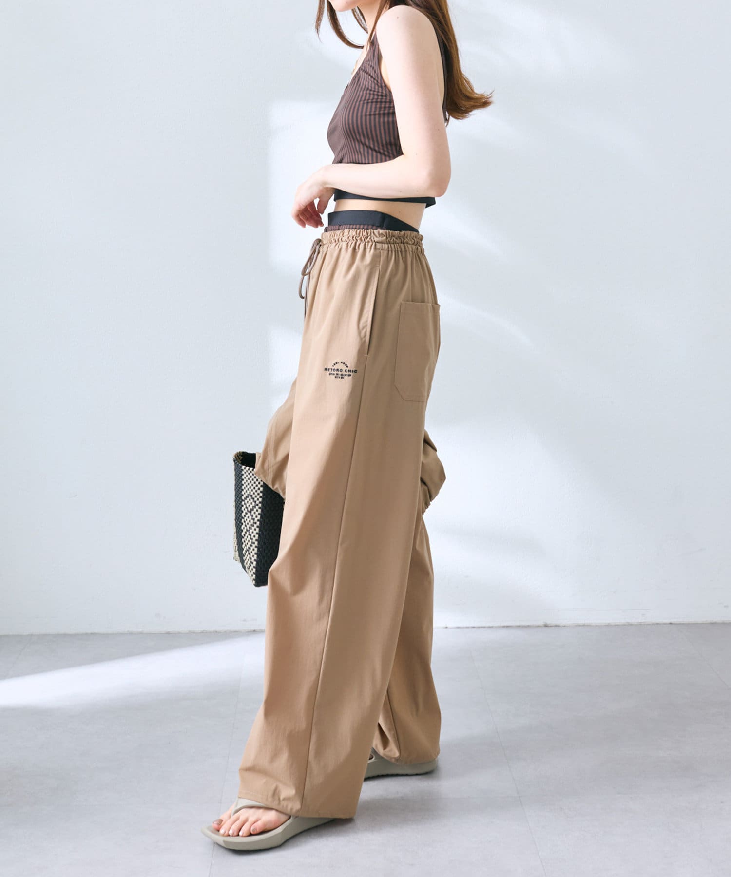 アクティブシーンに大活躍間違いなしの水陸両用のナイロンワイドパンツ。
