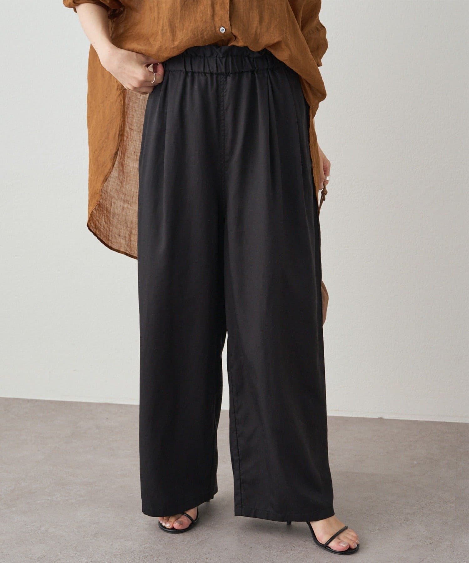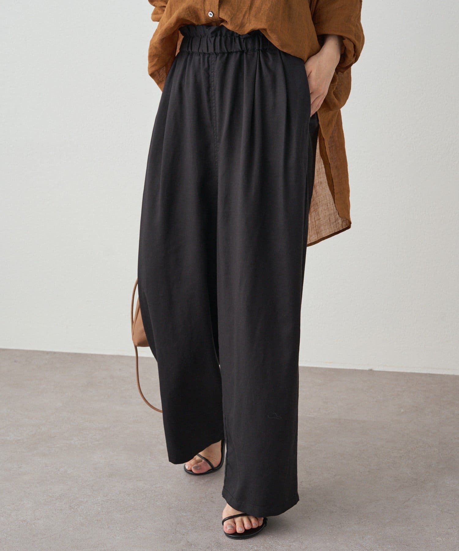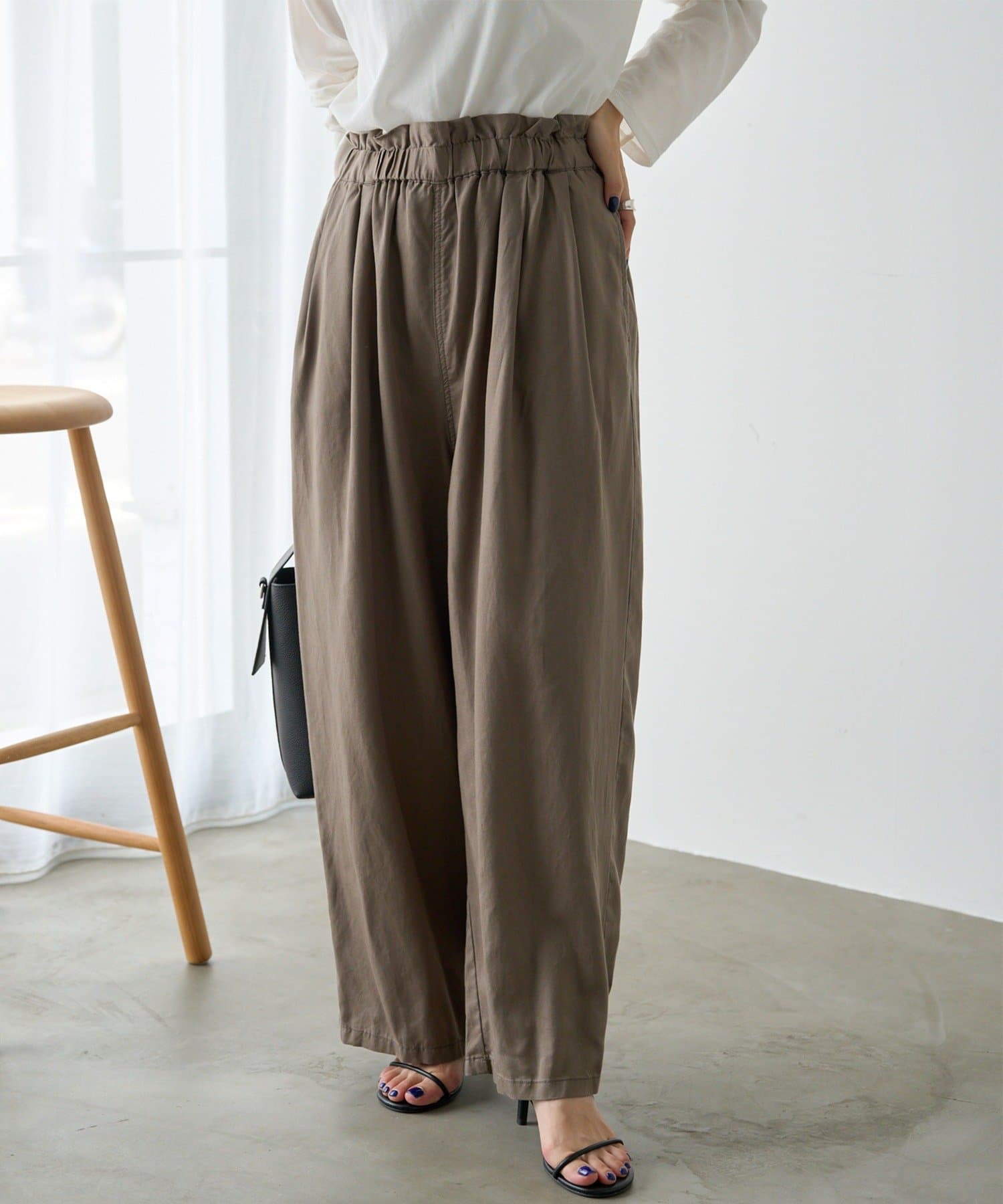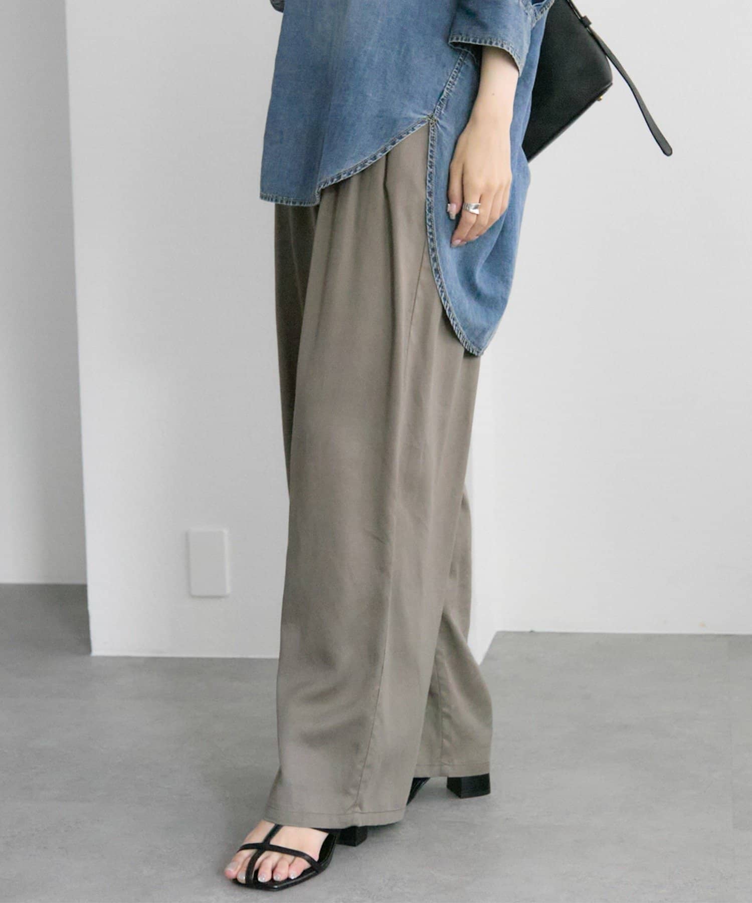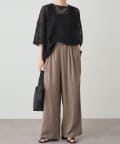 リネンテンセルの素材が女性らしいワイドパンツ。