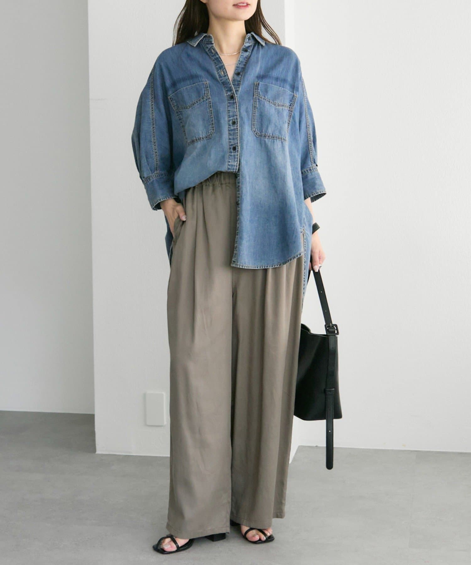 ヒップ回りは程よく離れるワイドストレートシルエットで