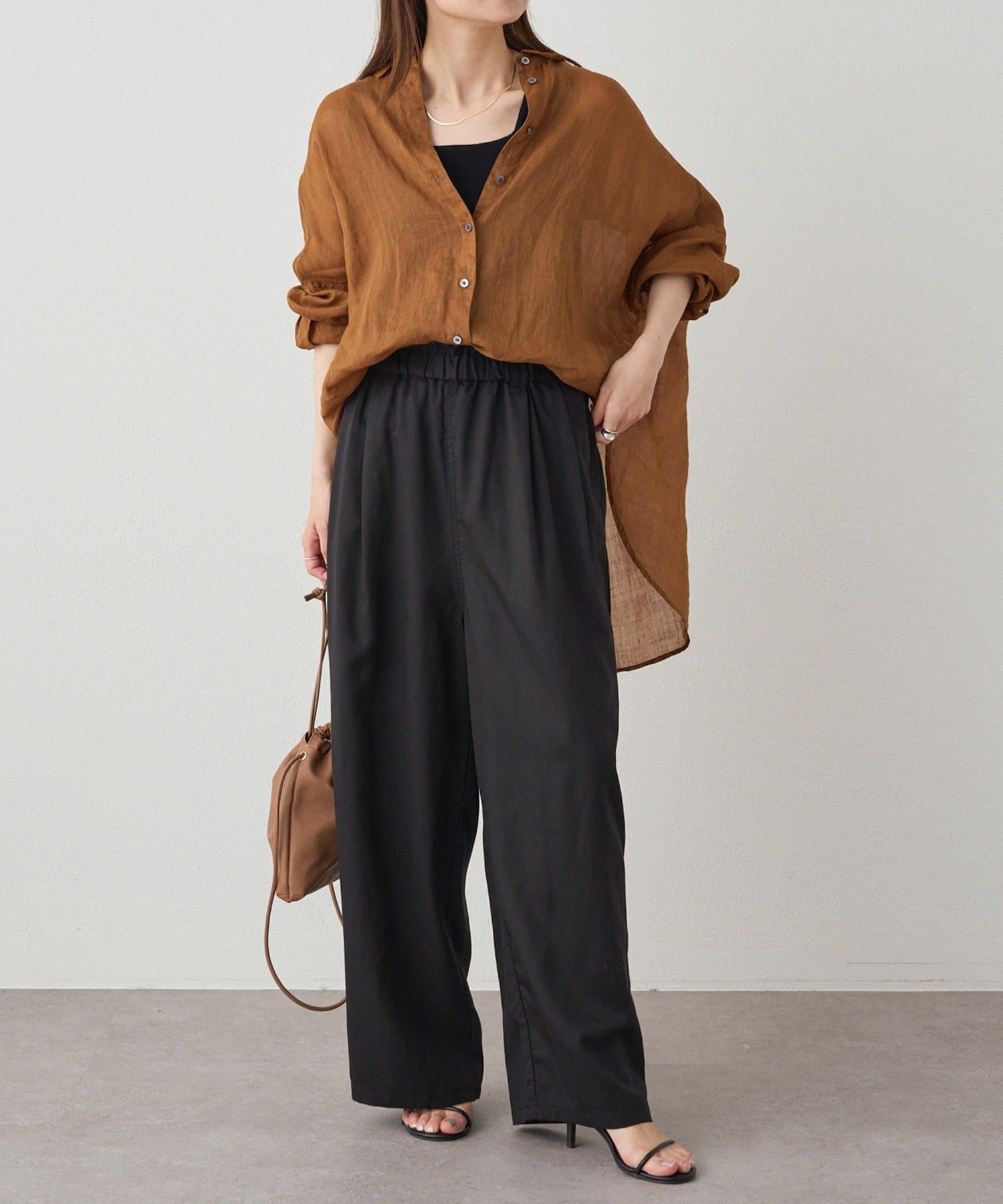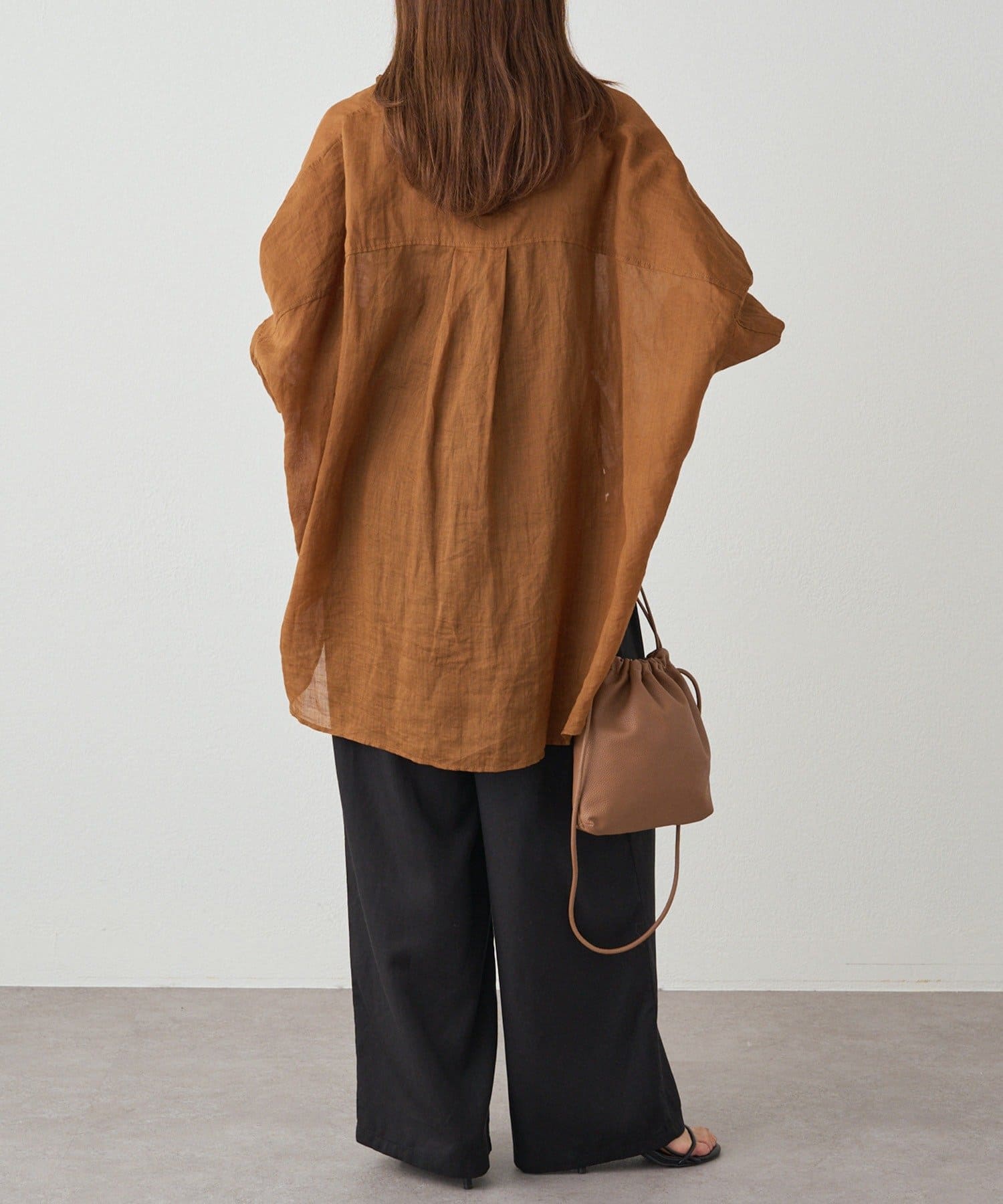 裏地なしですが透けも気にならないので季節を問わず、ロングシーズン活躍するアイテムです。