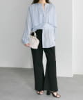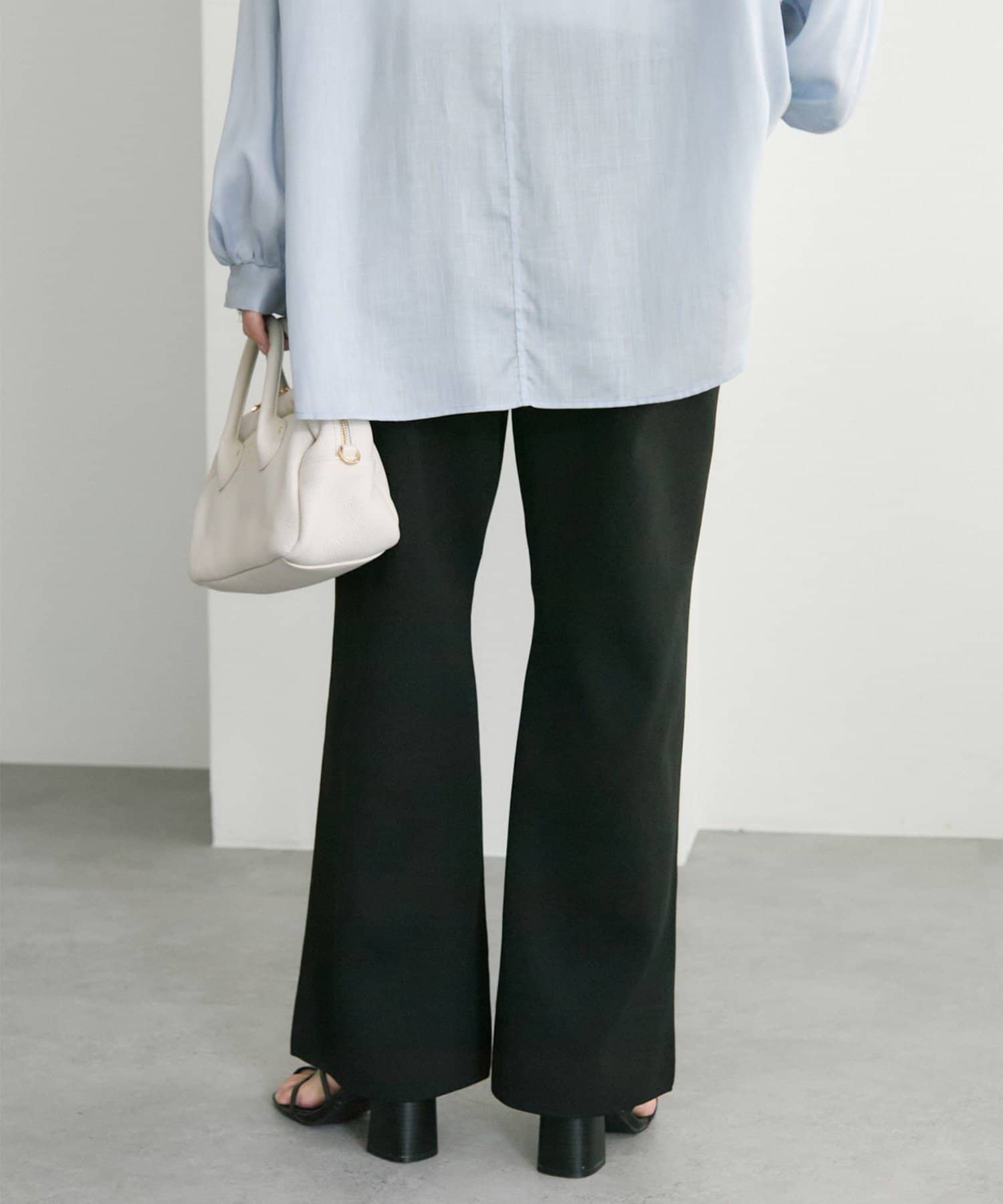 広がりすぎないややフレアシルエットで脚のラインをすっきりときれいに見せてくれます。