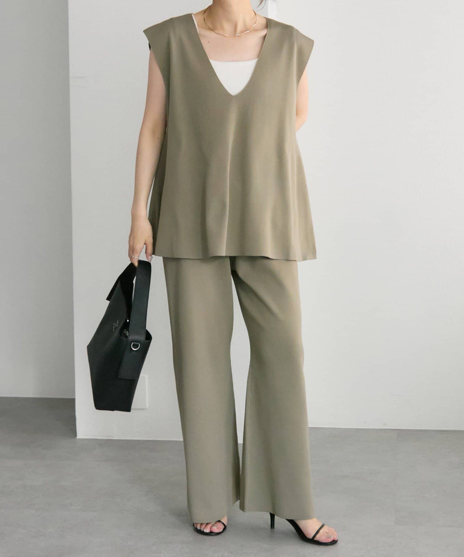 同素材を使用したニットベスト(No.0252050080)とのセットアップコーデも◎