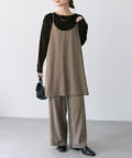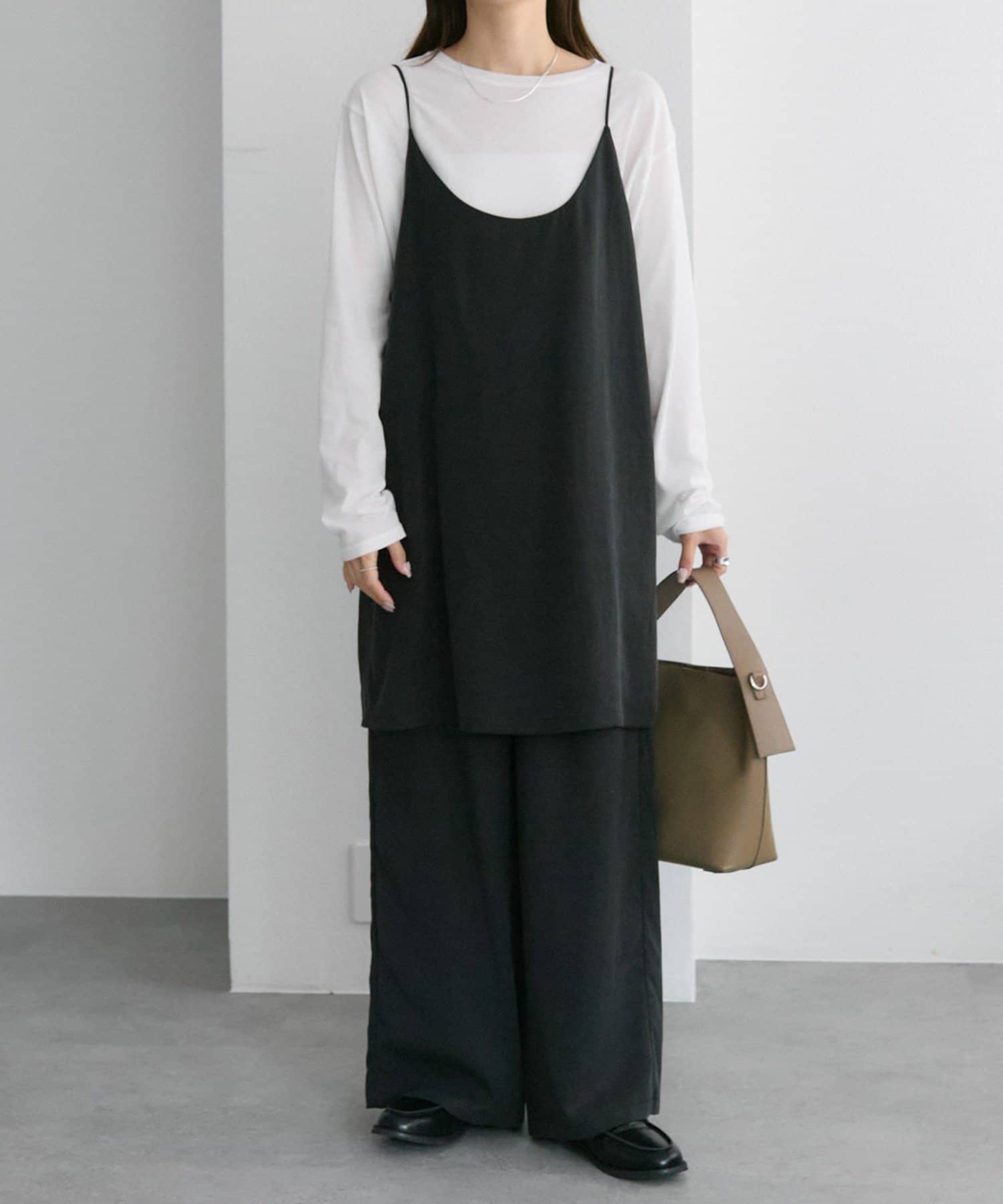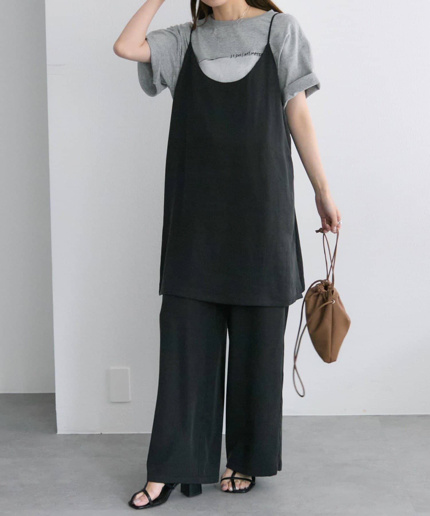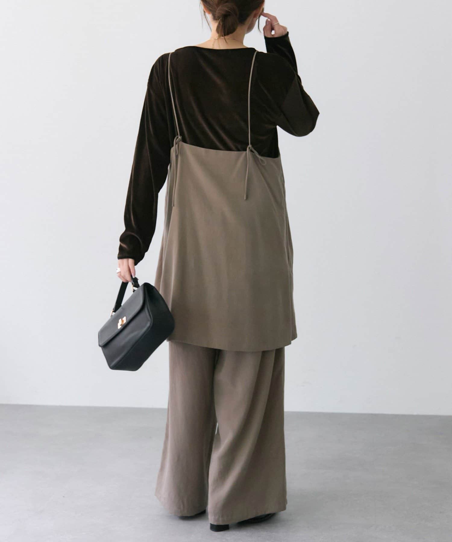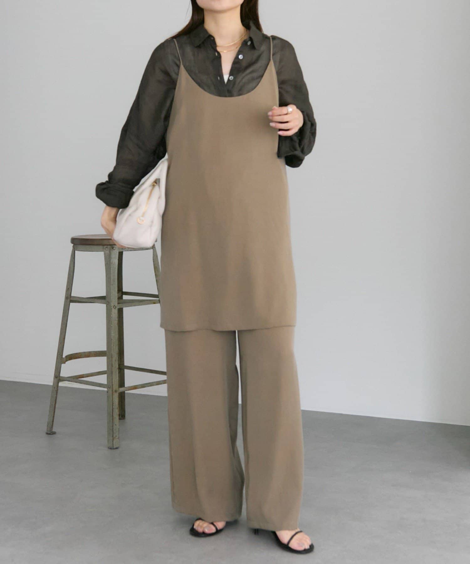 キャミチュニックを、すっきりとしたIラインシルエットにすることで、大人の上品さが漂うシックな雰囲気に。