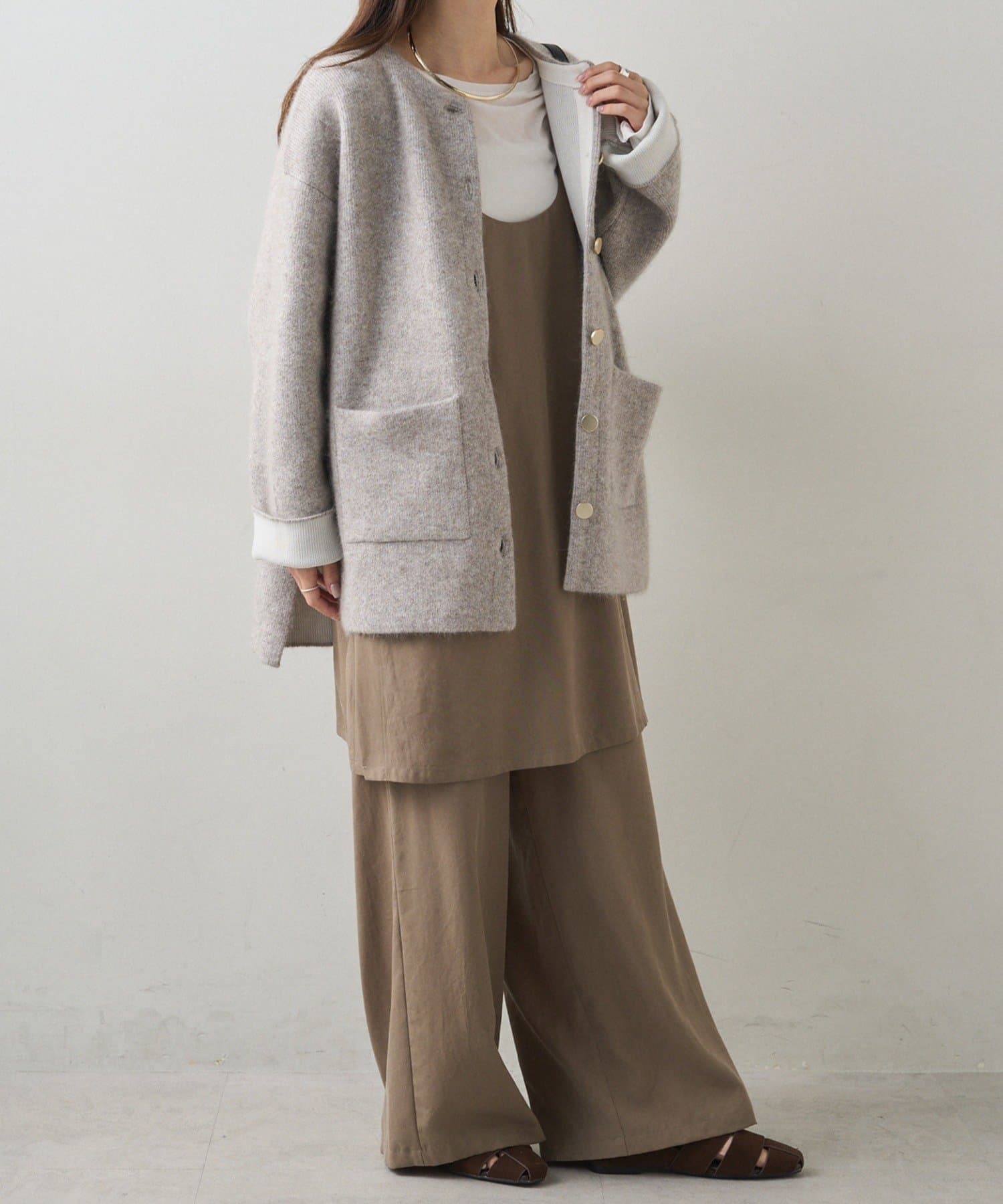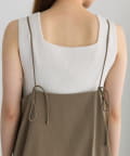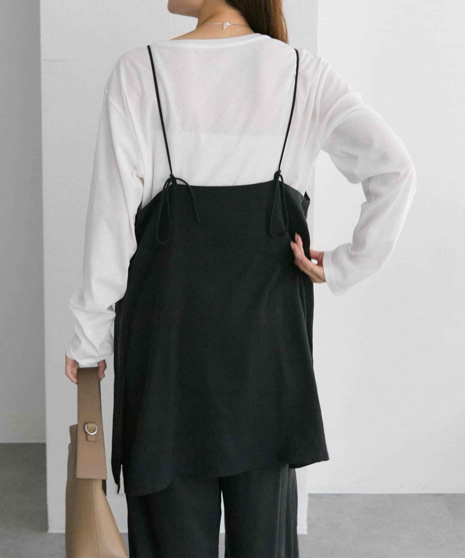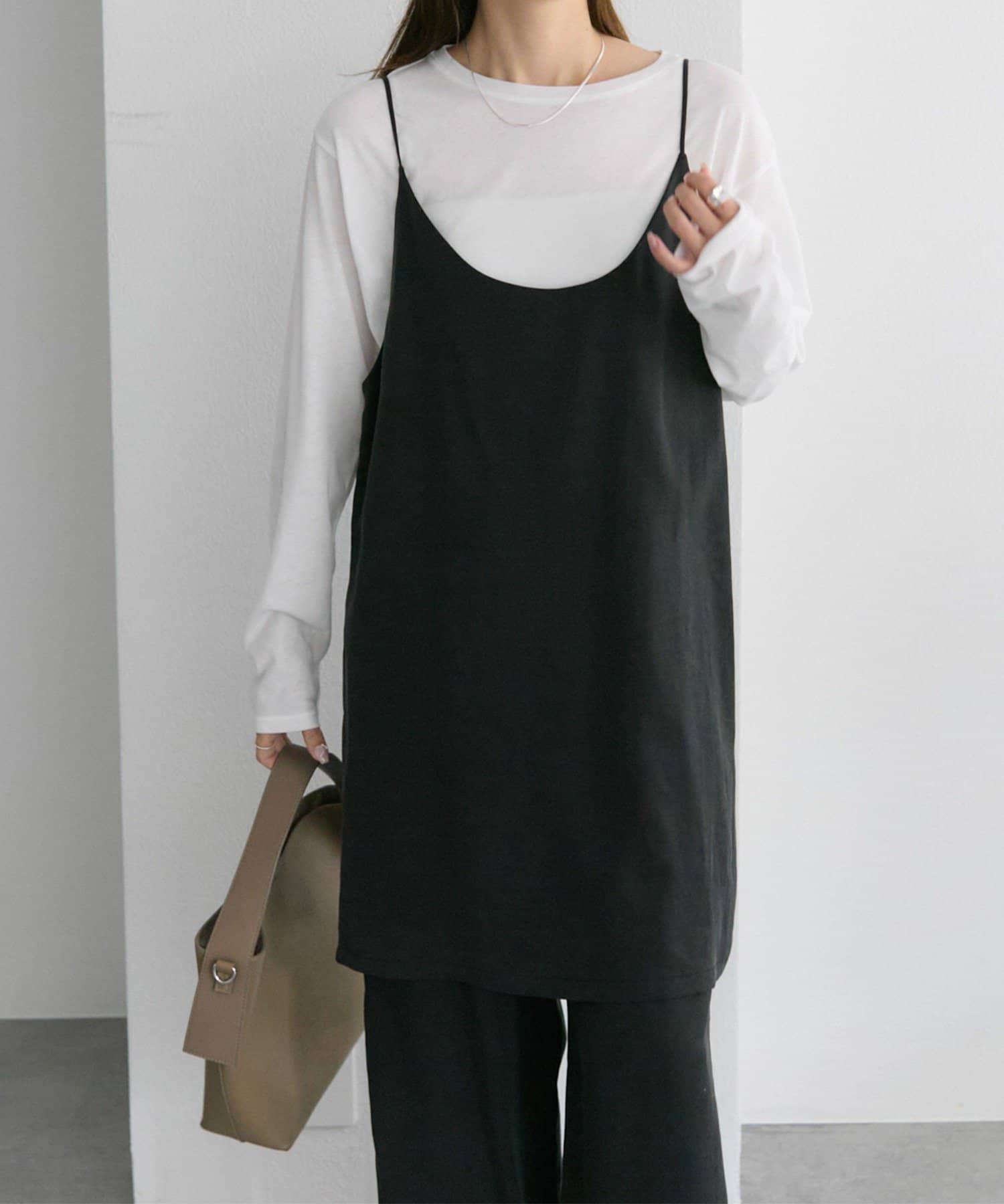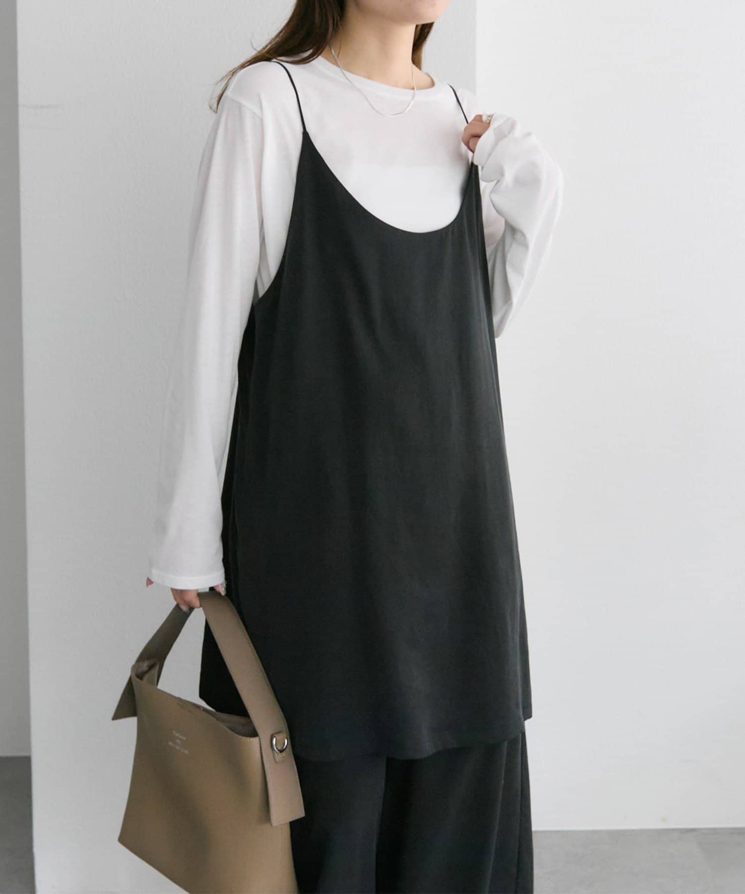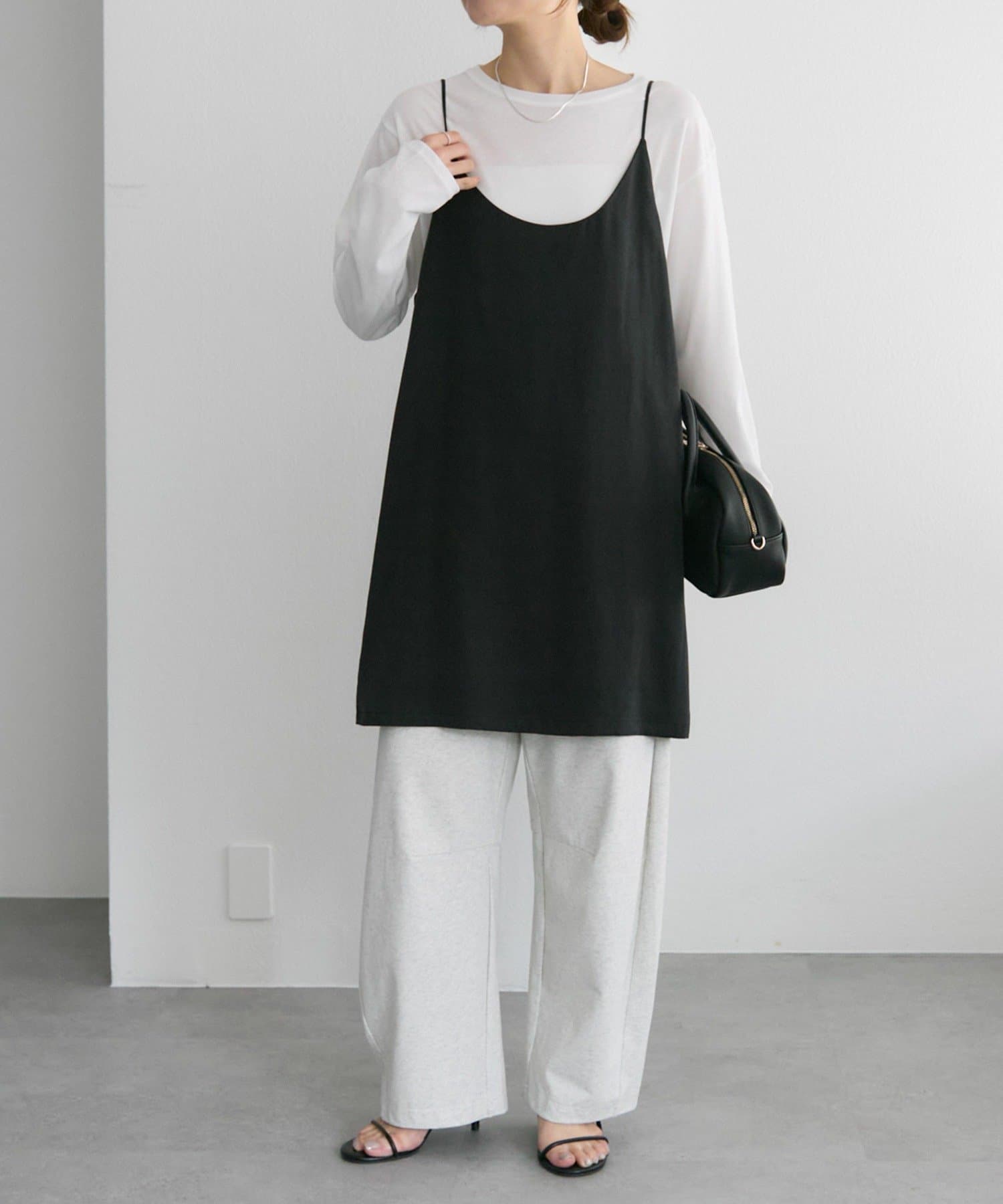 キャミチュニックを、すっきりとしたIラインシルエットにすることで、大人の上品さが漂うシックな雰囲気に。