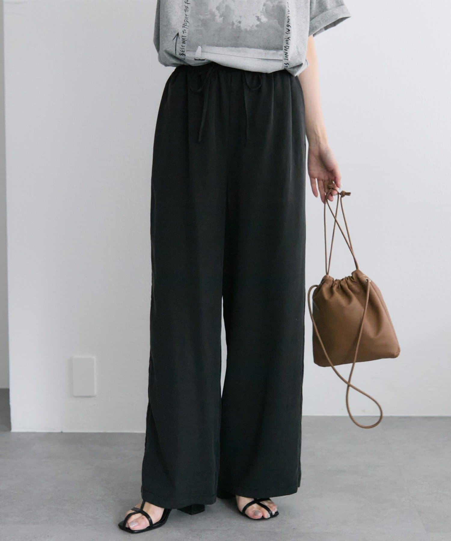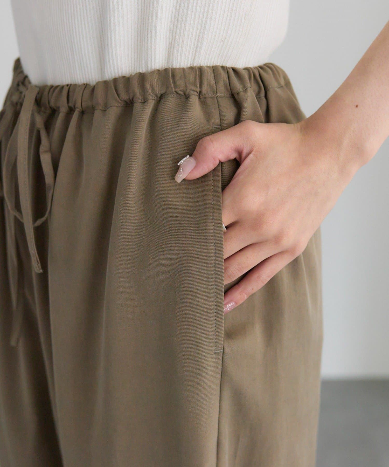 ウエストの紐を結ぶことでお好みのサイズ感で着用いただけます。