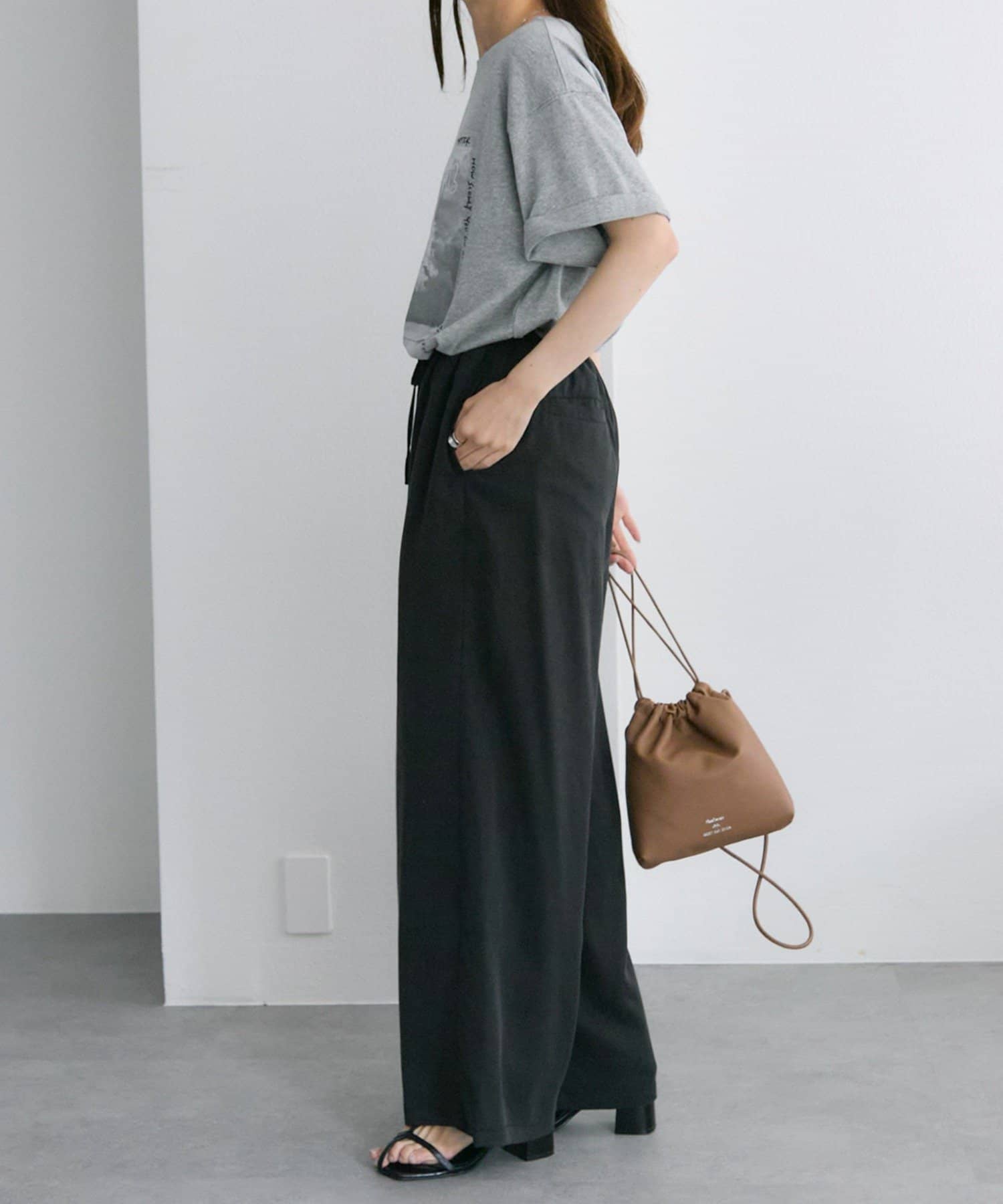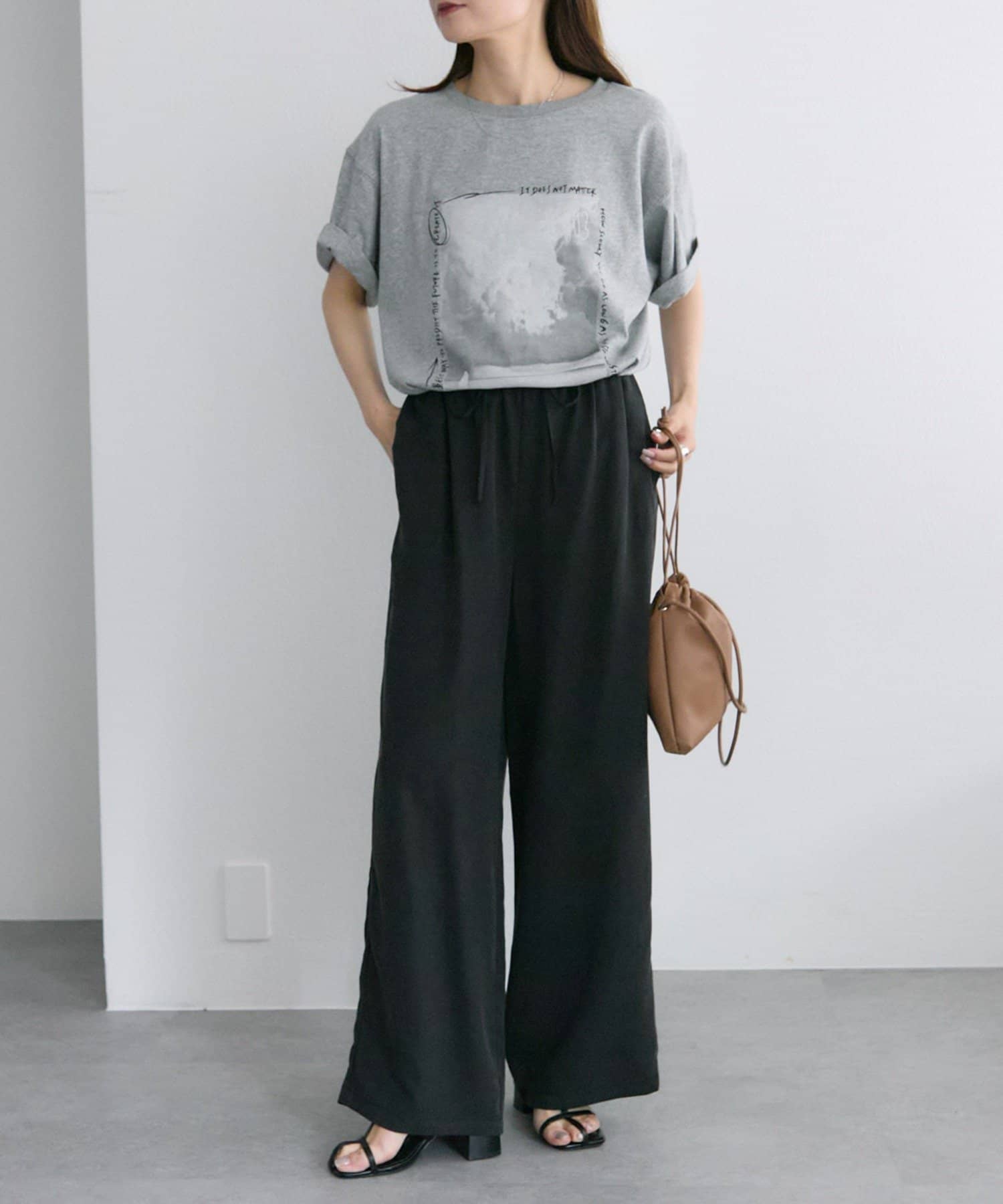 とろみのあるブラウスを合わせてキレイ目なコーディネートから、ロゴTやボーダーのカットソーでカジュアなスタイリングにも。