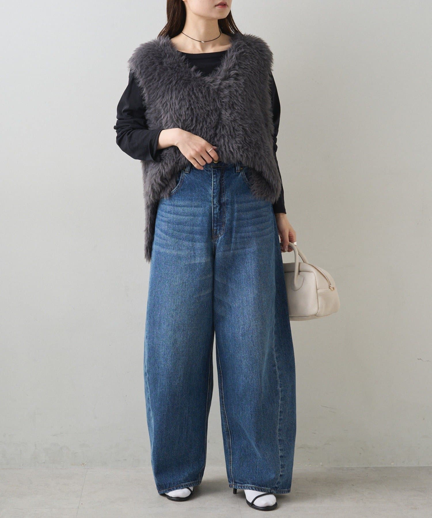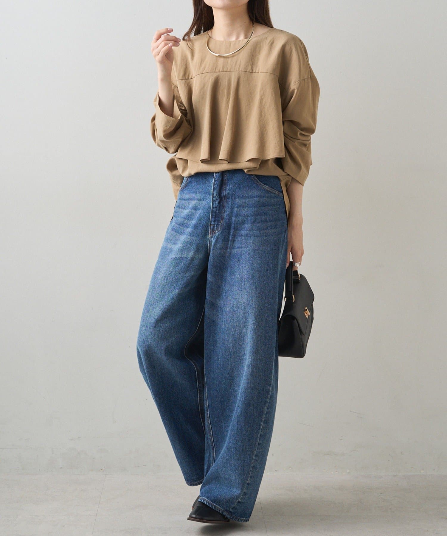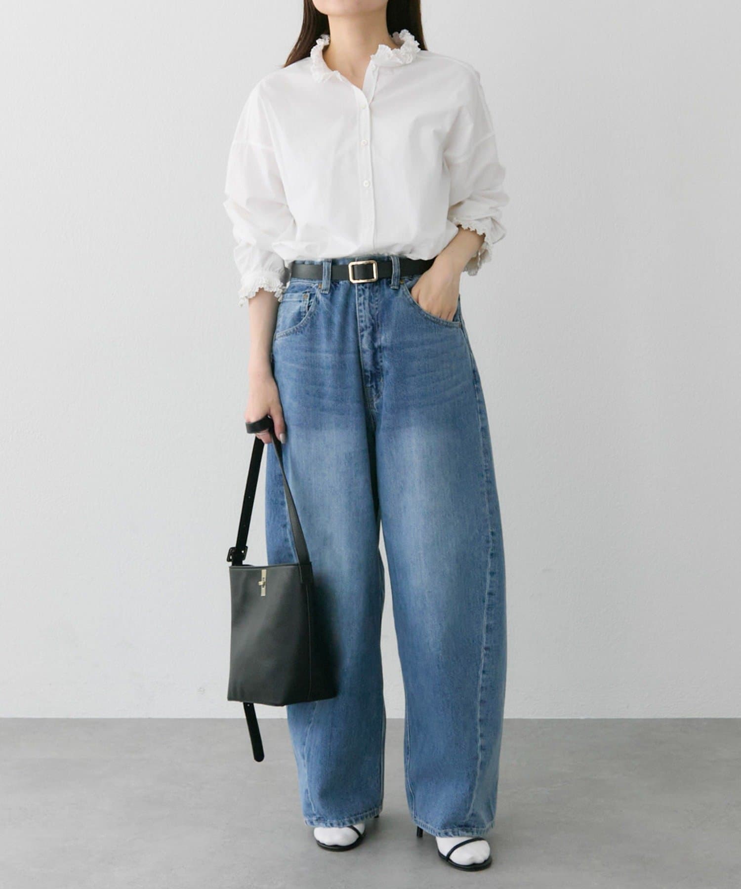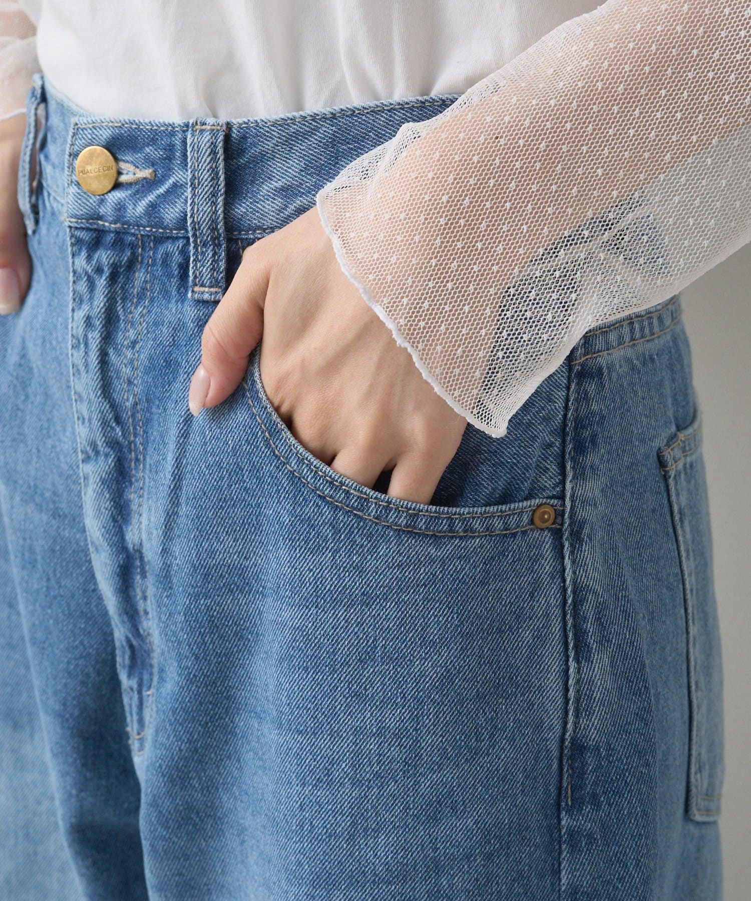 着用感:ハリや硬さの少ないデニム地なので、ストレスフリーな穿き心地です◎