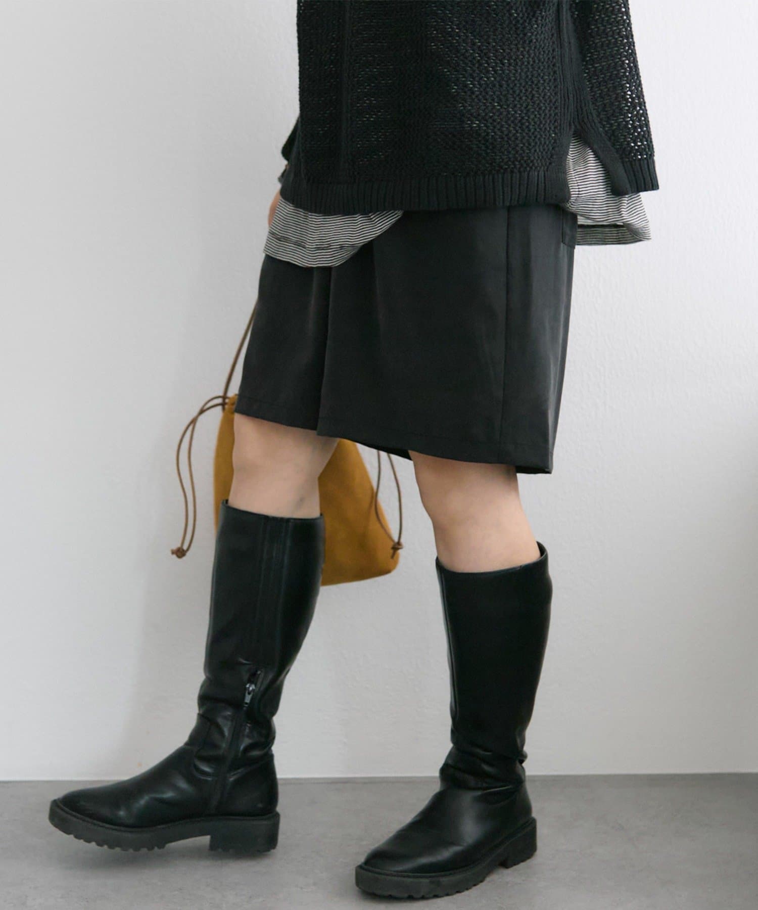 足元はSOX+サンダルや、秋らしくロングブーツなど、ややレディライクなアイテムを持ってくることで、大人カジュアルなスタイリングが完成◎