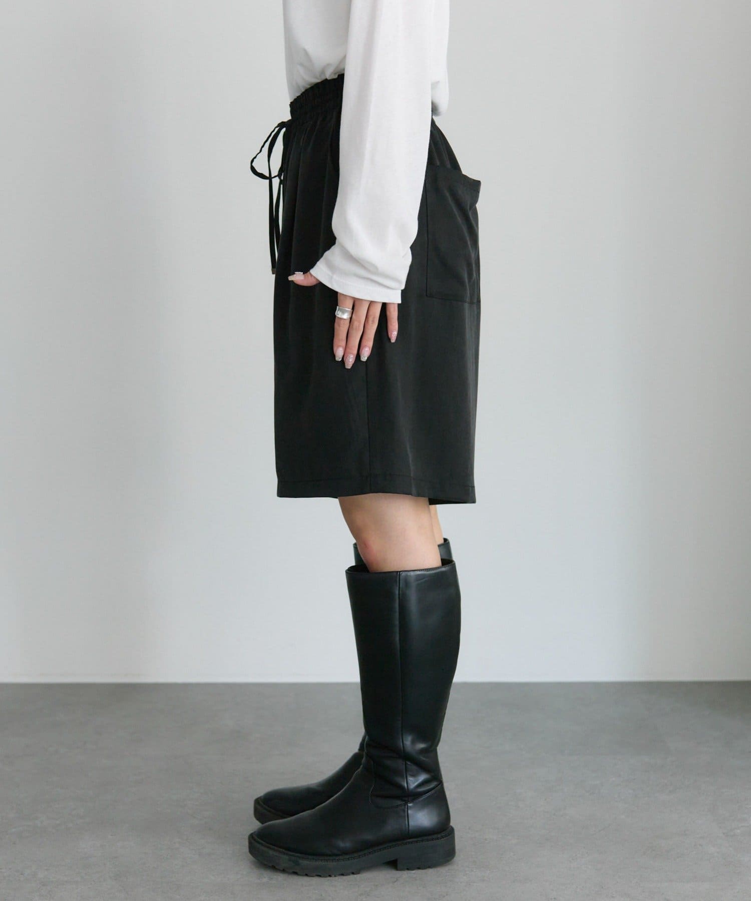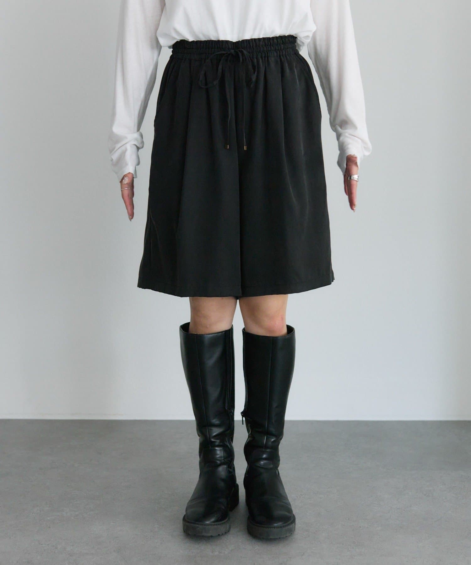 落ち感のあるセルロースの生地を使用し、大人な印象に使えるハーフパンツ。