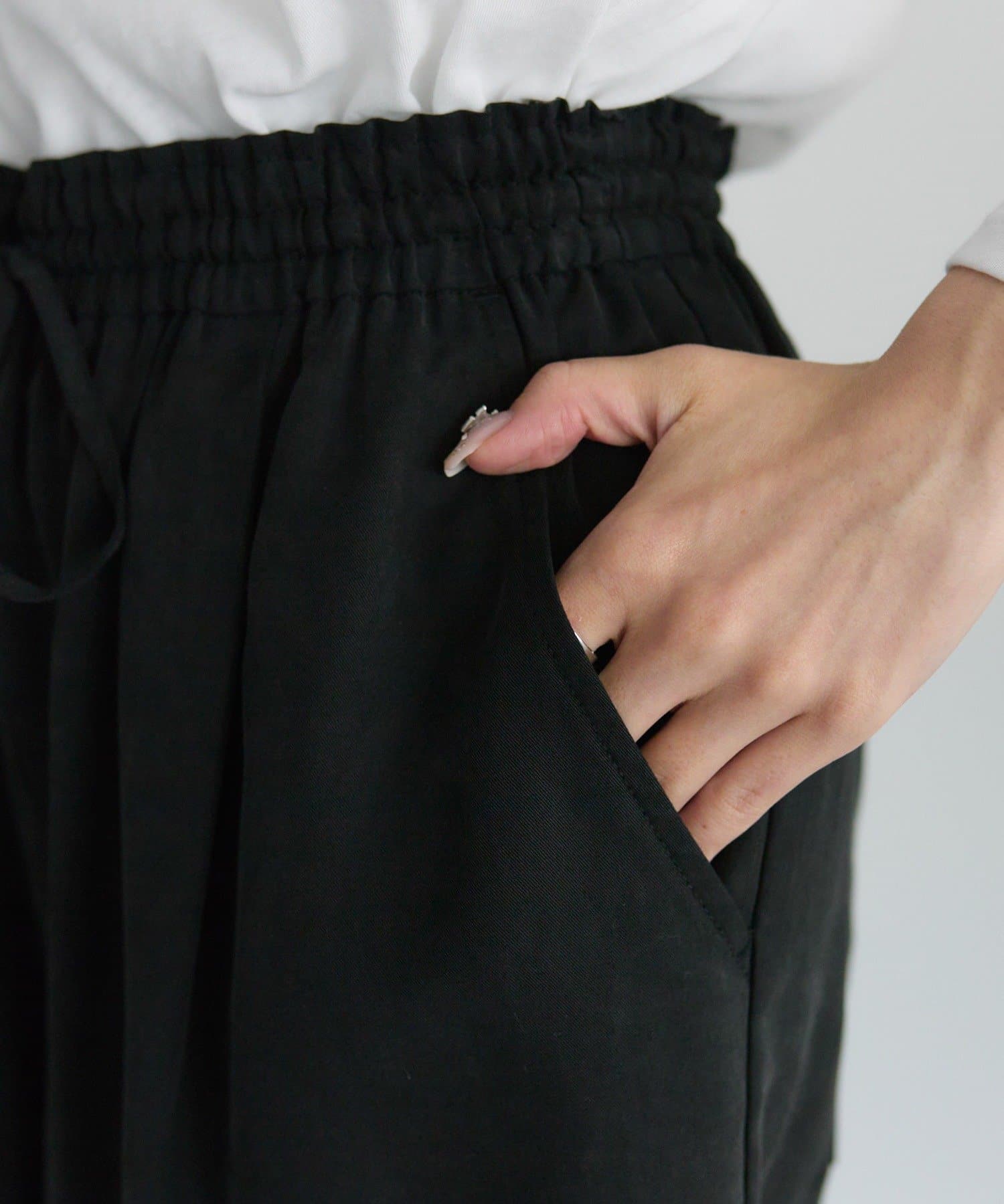 裾幅にゆとりを持たせたことで、動くと生地の揺れを感じ、スカートのような雰囲気にも楽しんでいただける一着です。