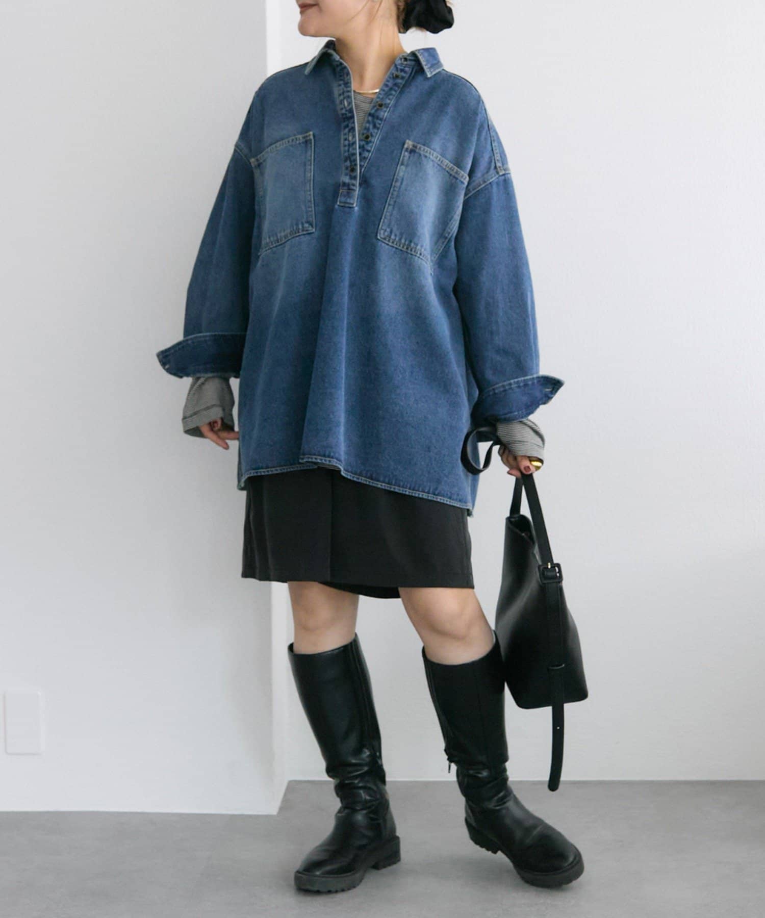 チュニックなどオーバーサイズのTOPSとレイヤードする感覚で着合わせを楽しんでいただけます。