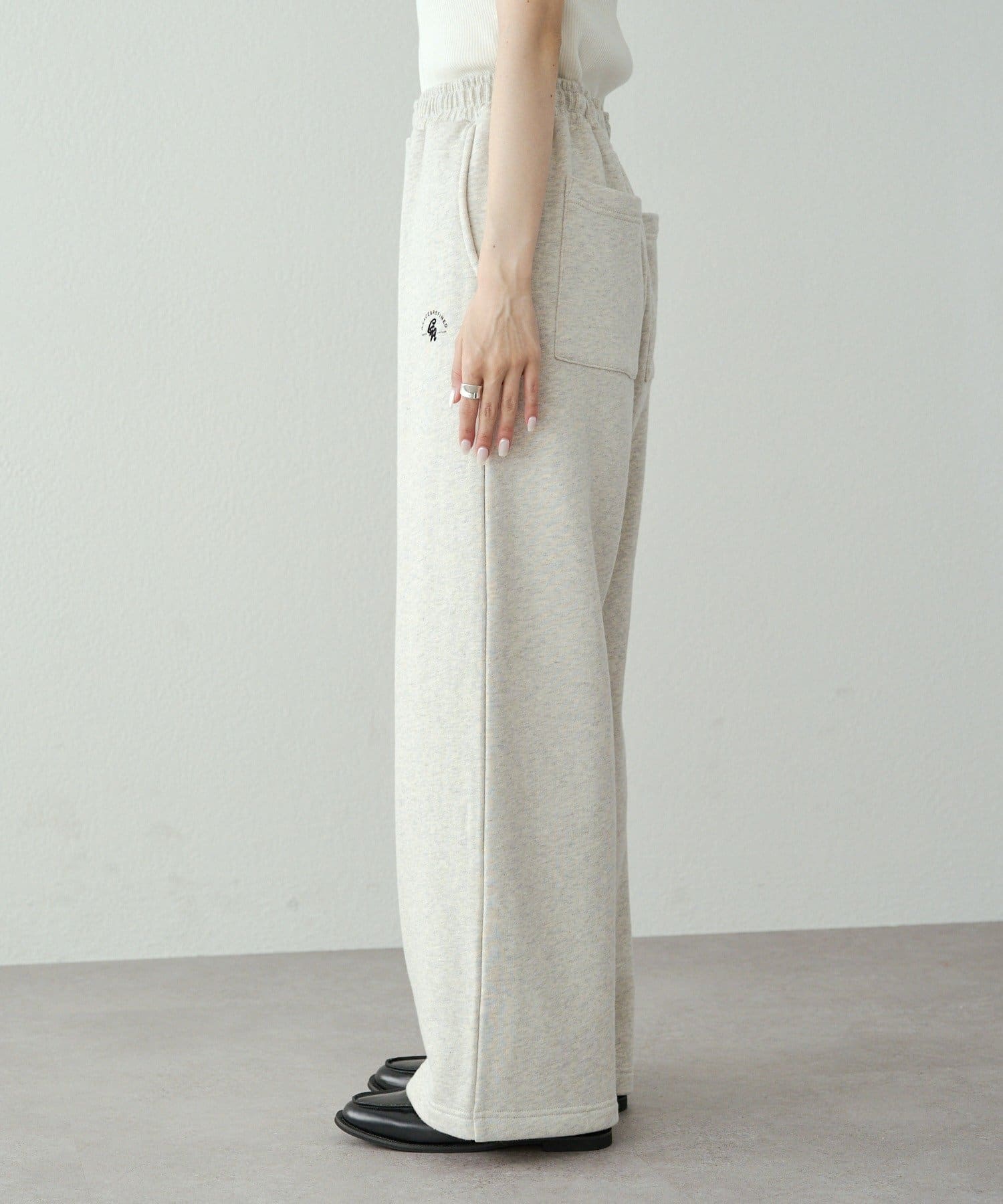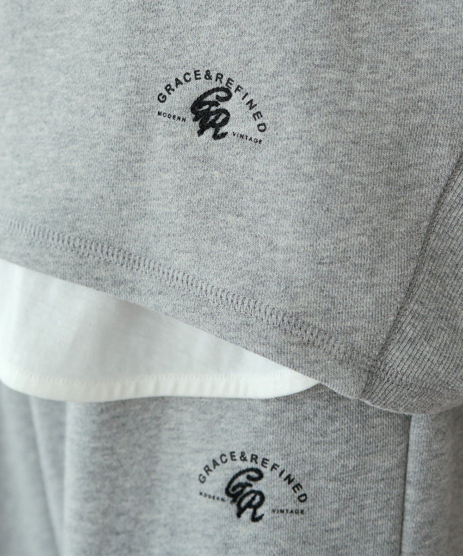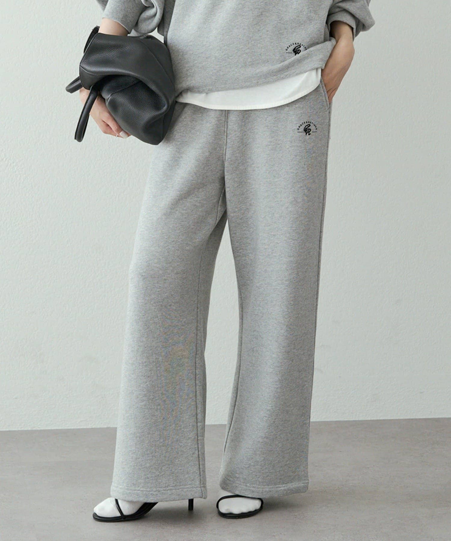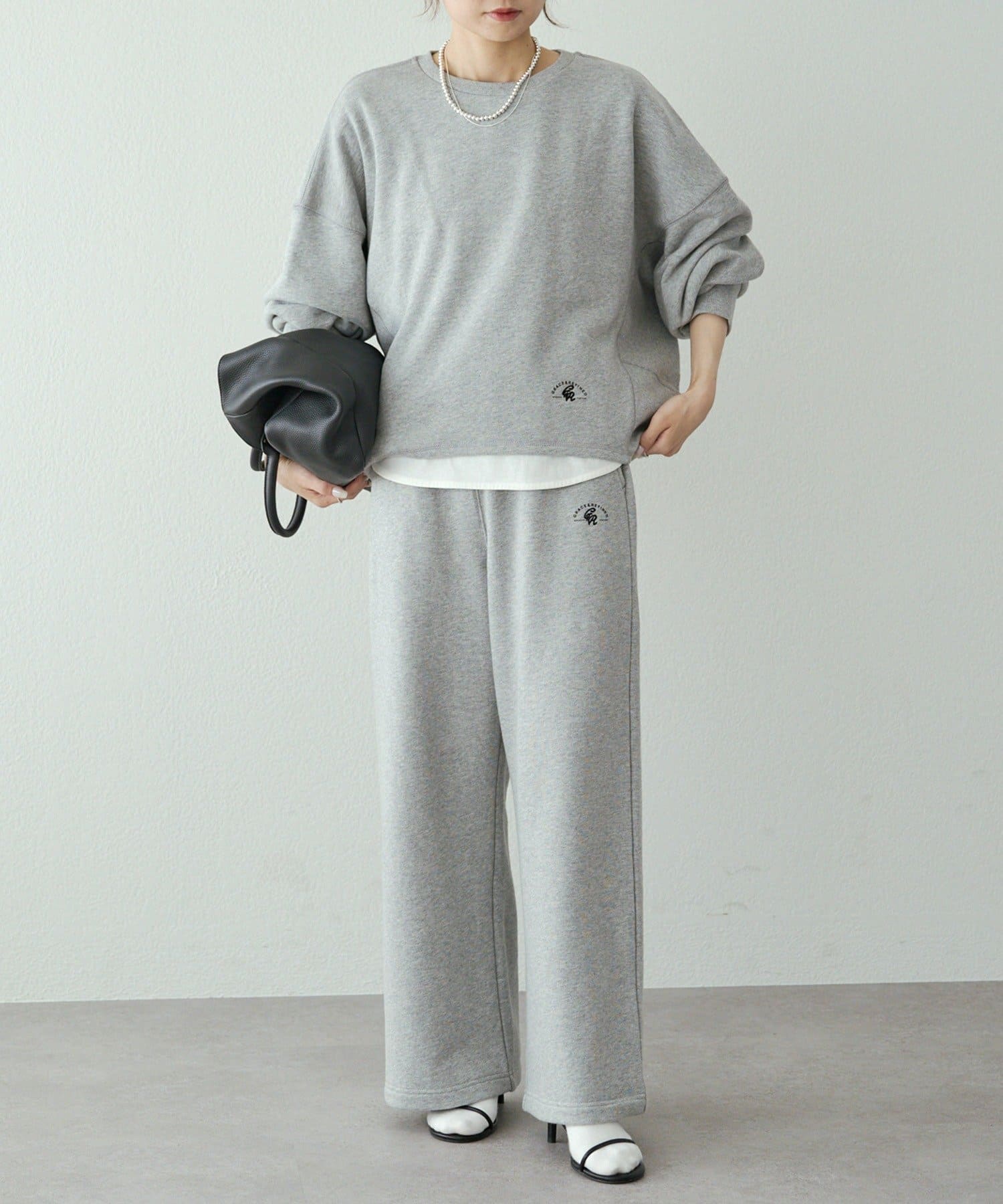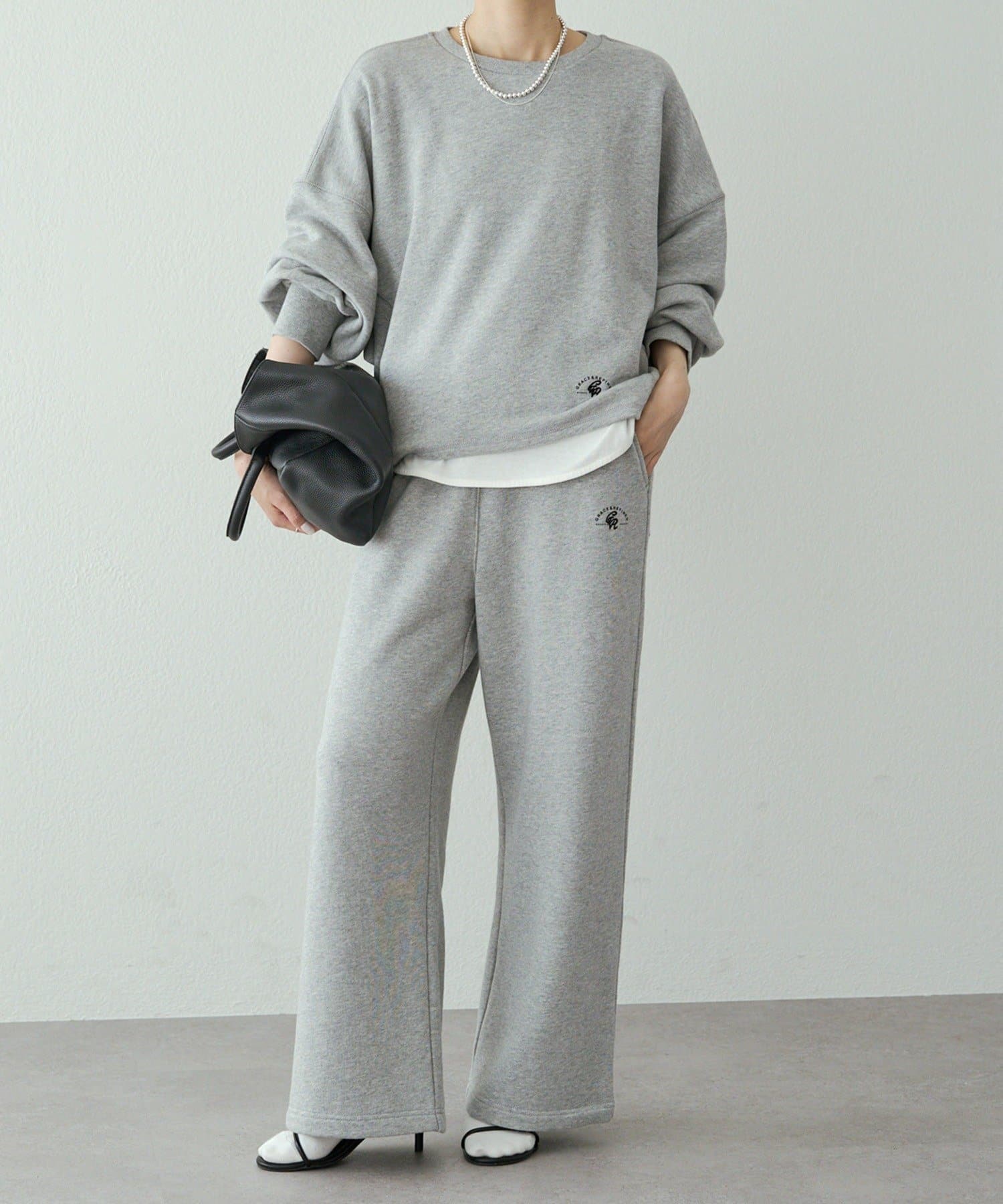 左の腰元にロゴ刺繡を入れ、ゆるっと見えるスウェットにも洗練さをプラスし、