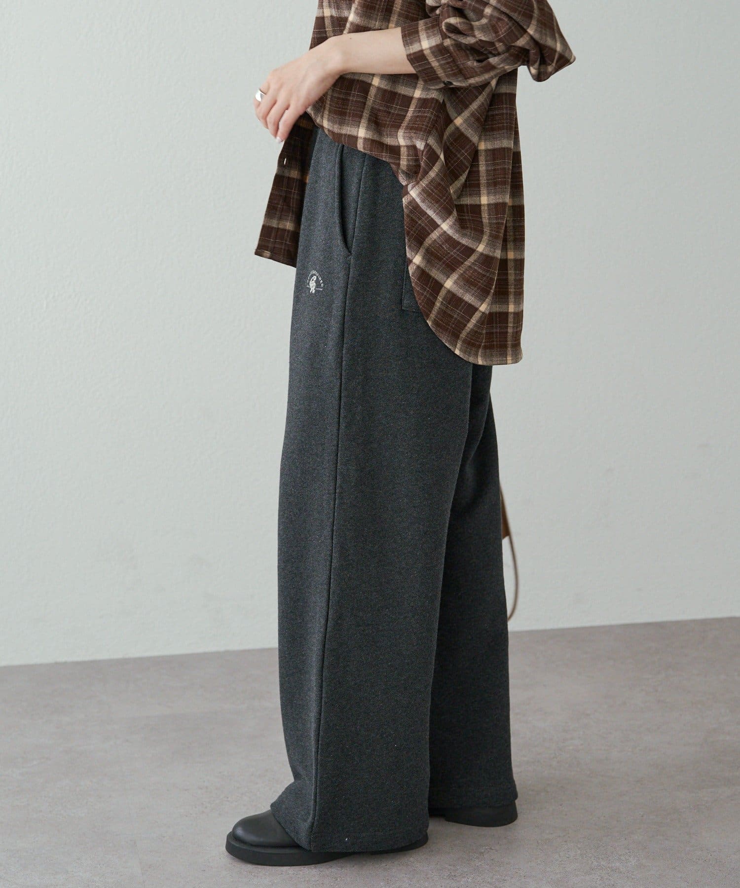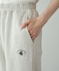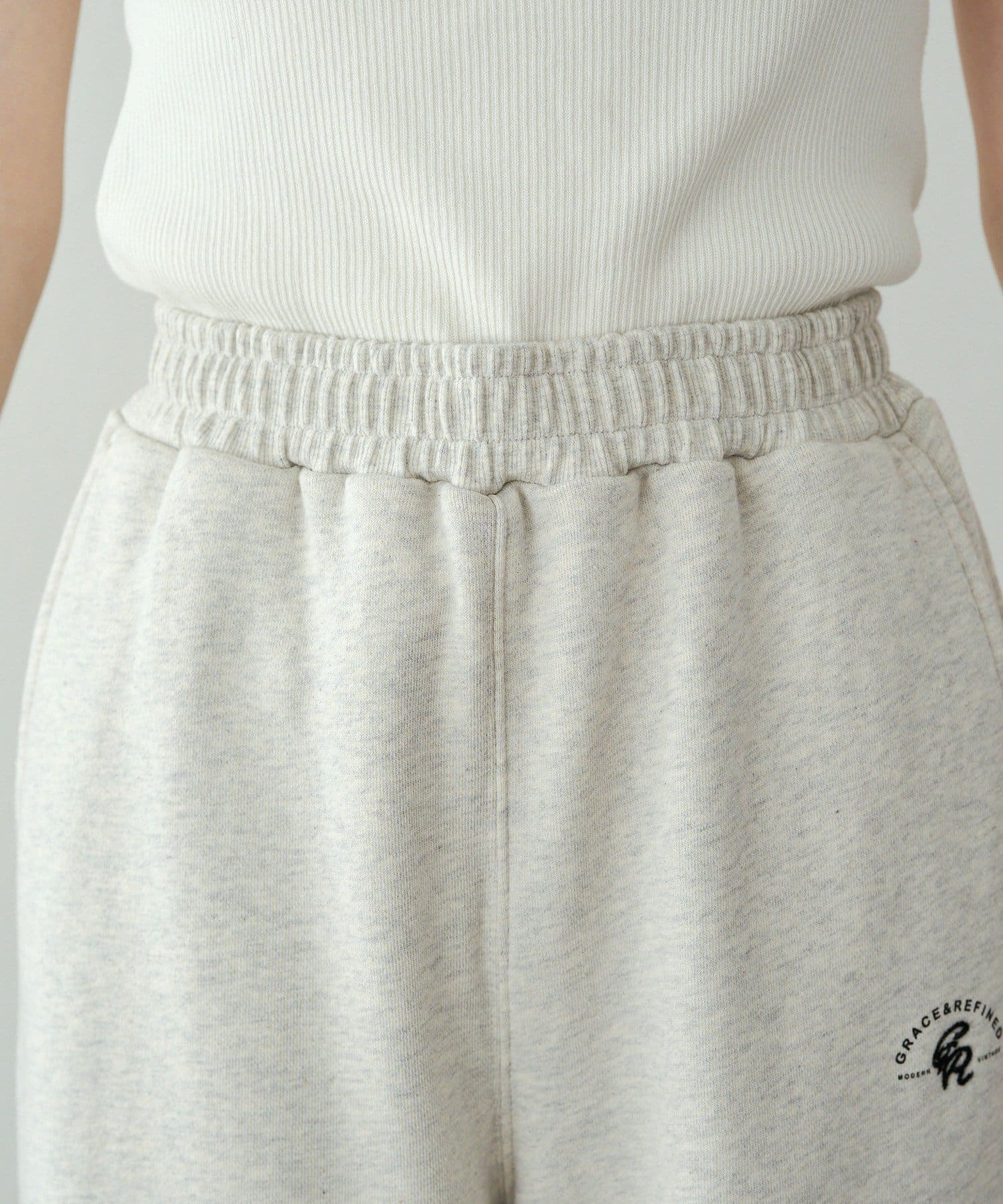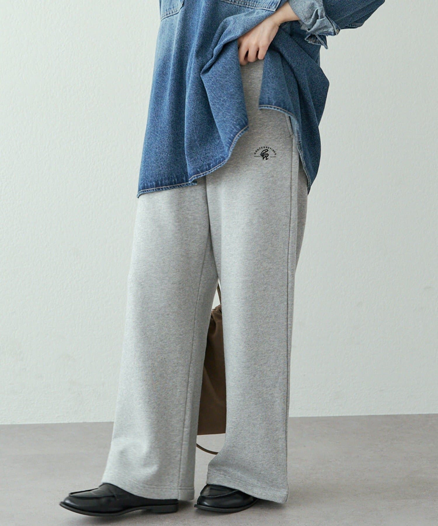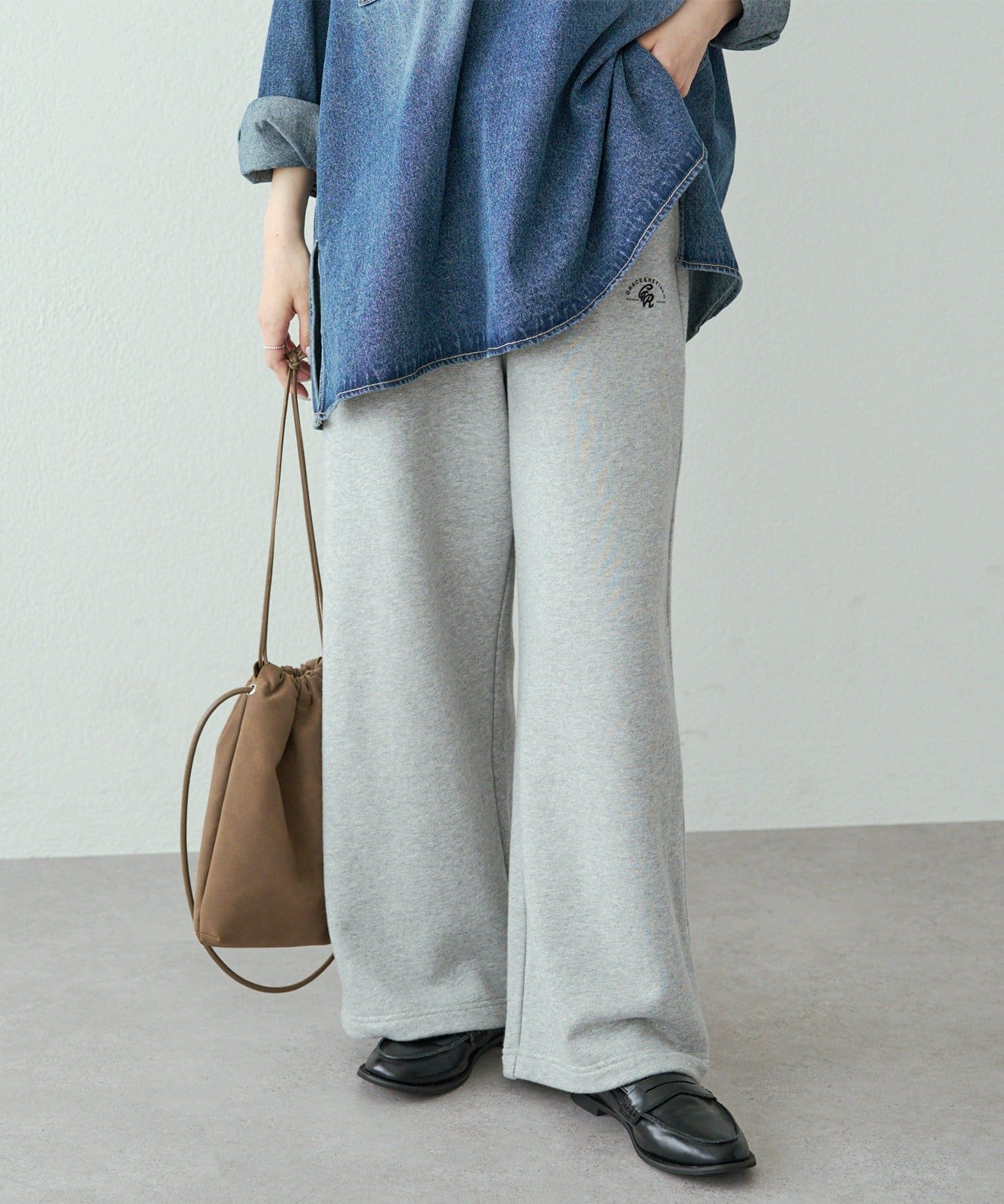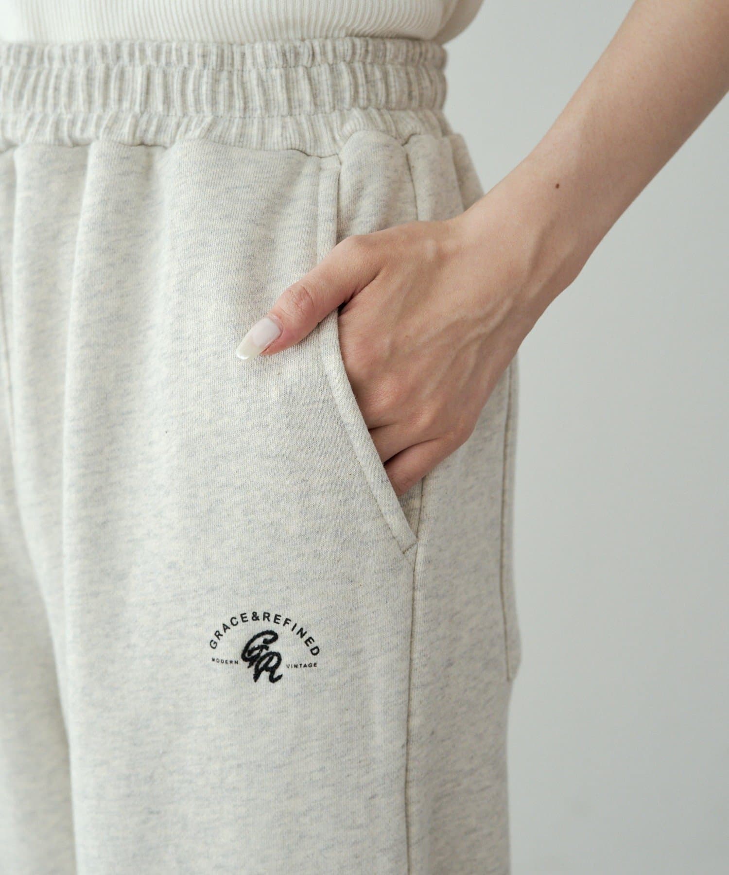 左の腰元にロゴ刺繡を入れ、ゆるっと見えるスウェットにも洗練さをプラスし、