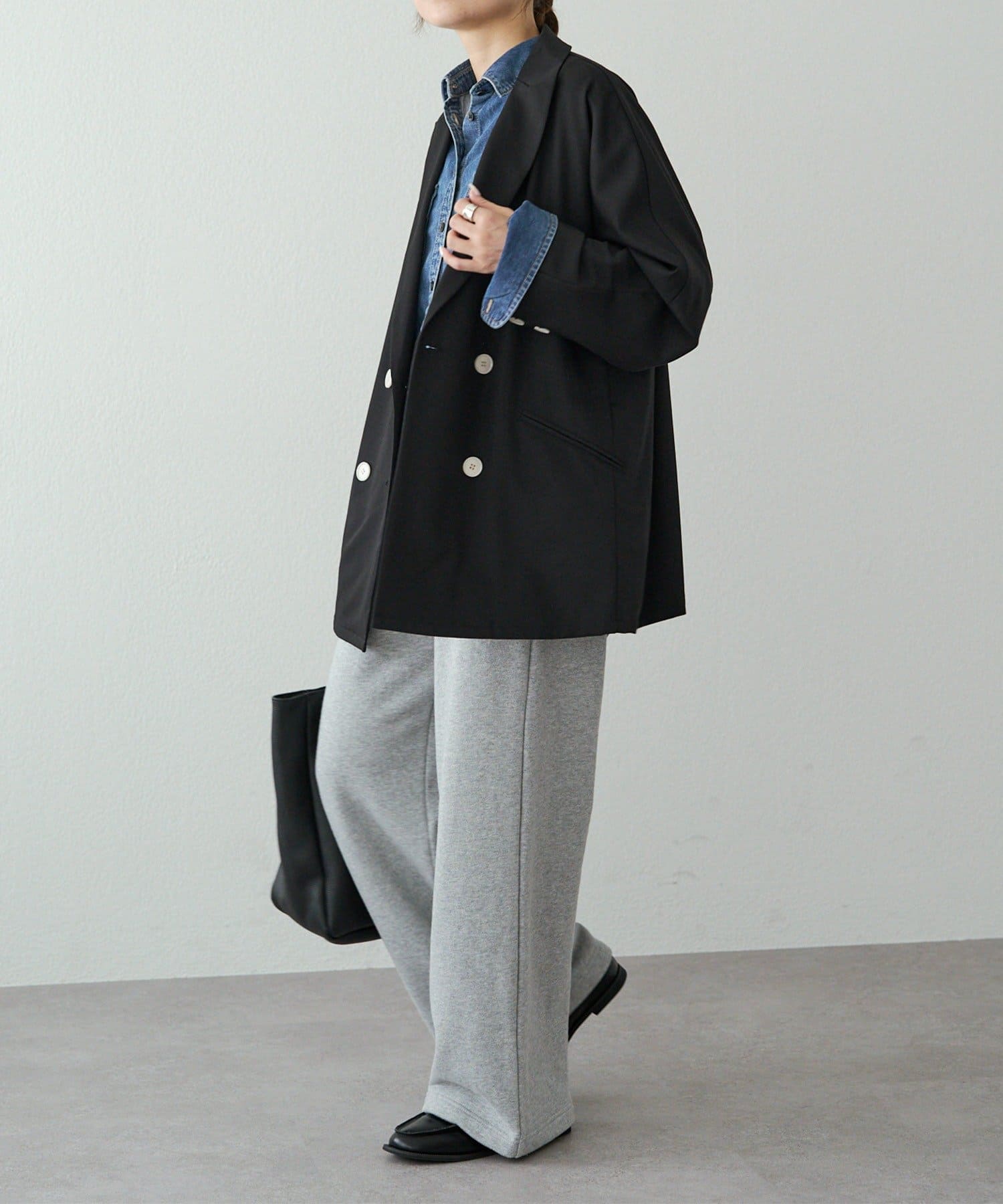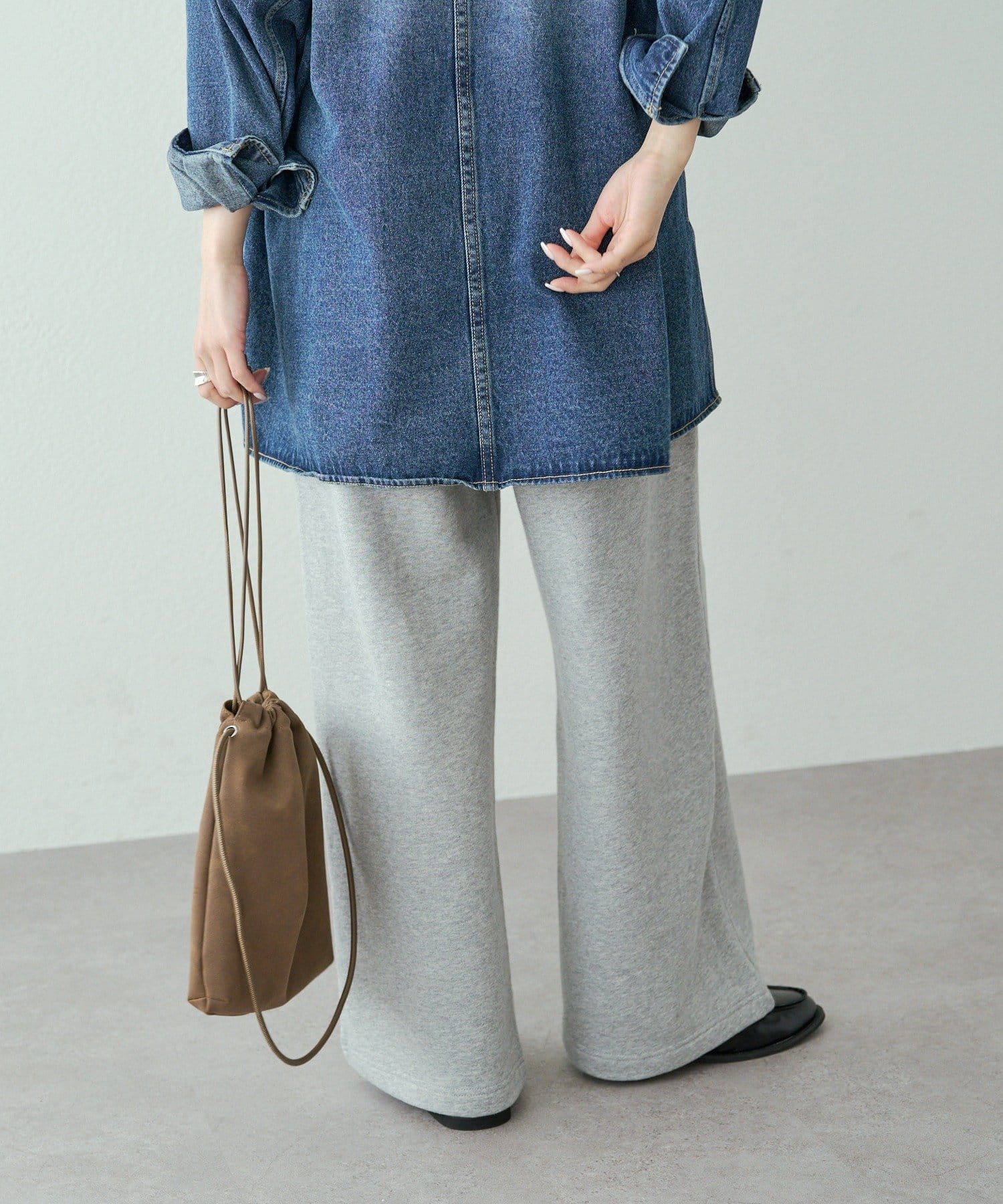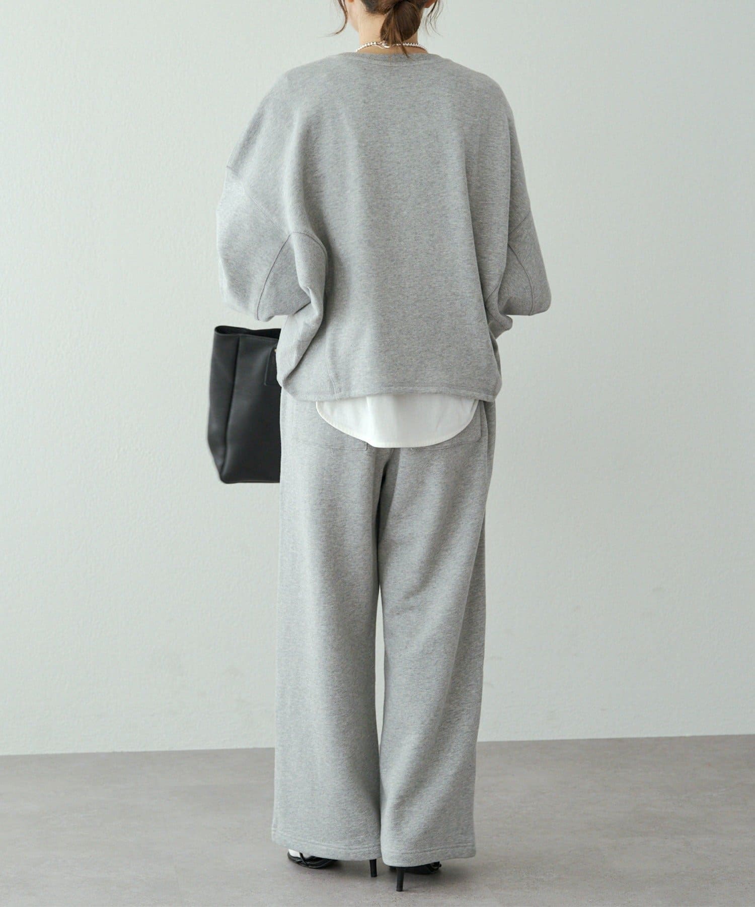 滑らかな表面感でカジュアルなスウェット生地もキレイ見えし、大人カジュアルスタイルにハマるアイテムに。
